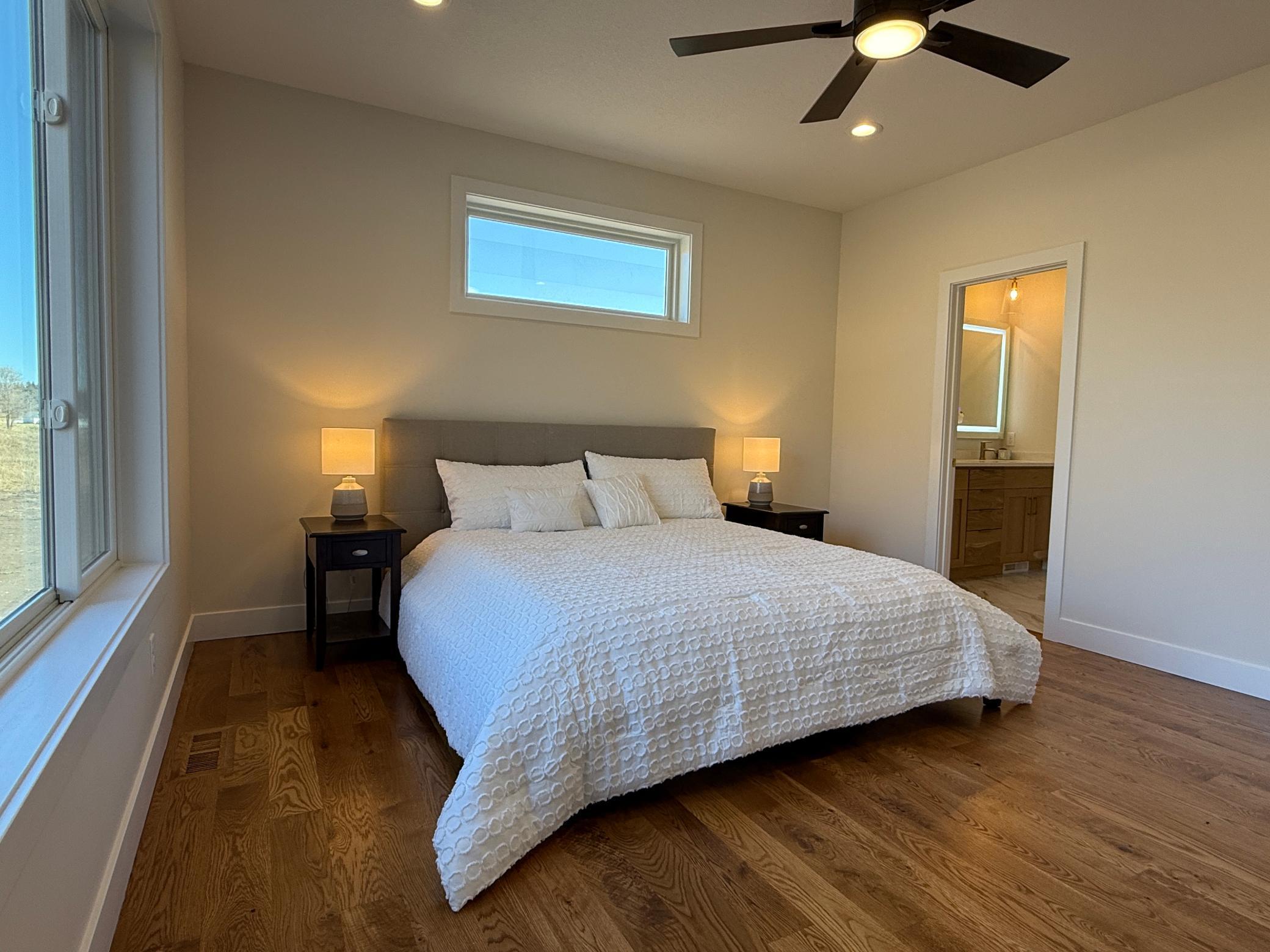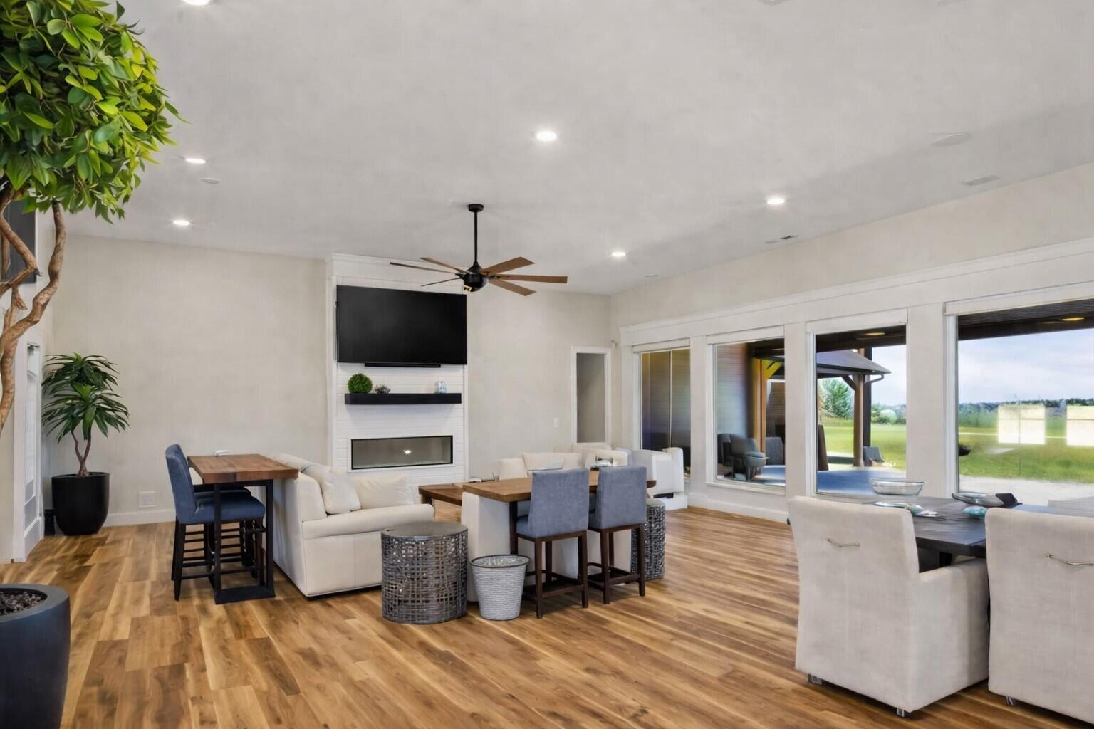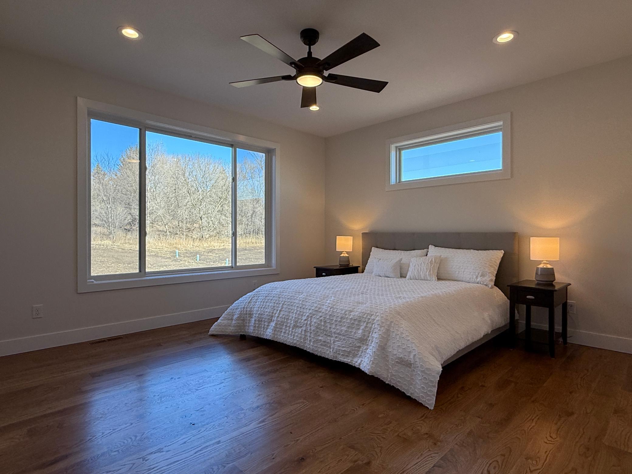 Welcome to Exclusive Home Builders newest model home for sale, a contemporary executive home set on a beautiful and private 2-acre lot in one of Rochesters most desirable locations. This newly constructed residence blends modern architecture with warm, intentional design, offering luxury that feels both refined and livable. The main level features wide-plank solid oak hardwood floors and an open-concept layout filled with natural light. At the heart of the home, the gourmet kitchen showcases an oversized island, quartz countertops, custom cabinetry, and a hidden walk-in pantry designed to keep the space both functional and visually stunning. The living room is anchored by a striking fireplace wrapped in European-style plaster and custom woodwork, creating a memorable focal point for everyday living and entertaining. The finished lower level is built for gathering, with a spacious family room and a full wet bar featuring custom cabinetry and a full-size refrigerator. Outdoor living is equally impressive, with a concrete patio and built-in firepit, plus a screened-in deck offering a peaceful retreat surrounded by nature. Thoughtfully designed and beautifully executed, this home delivers modern luxury, privacy, and lifestylean exceptional opportunity in the Rochester, MN market.