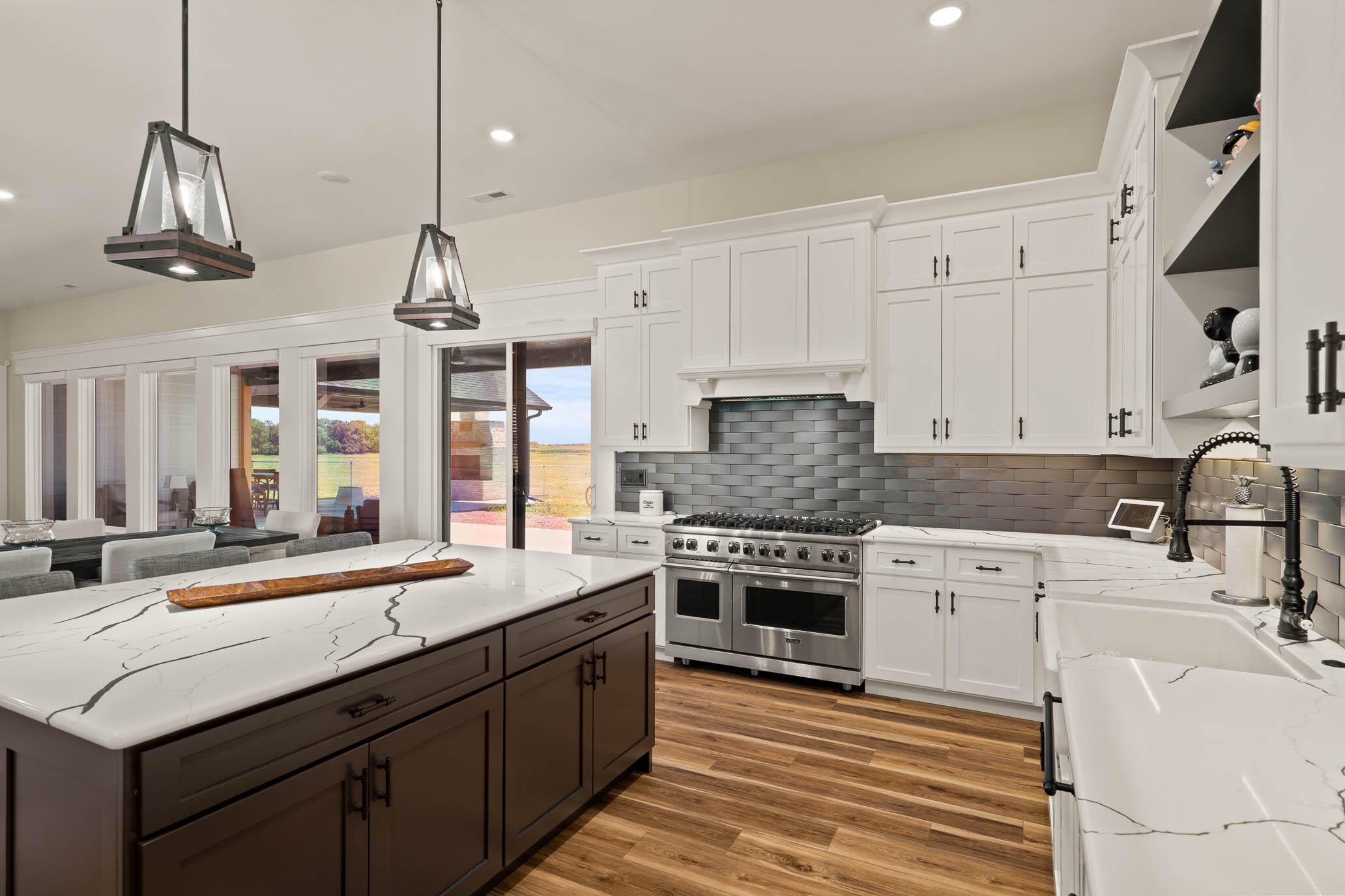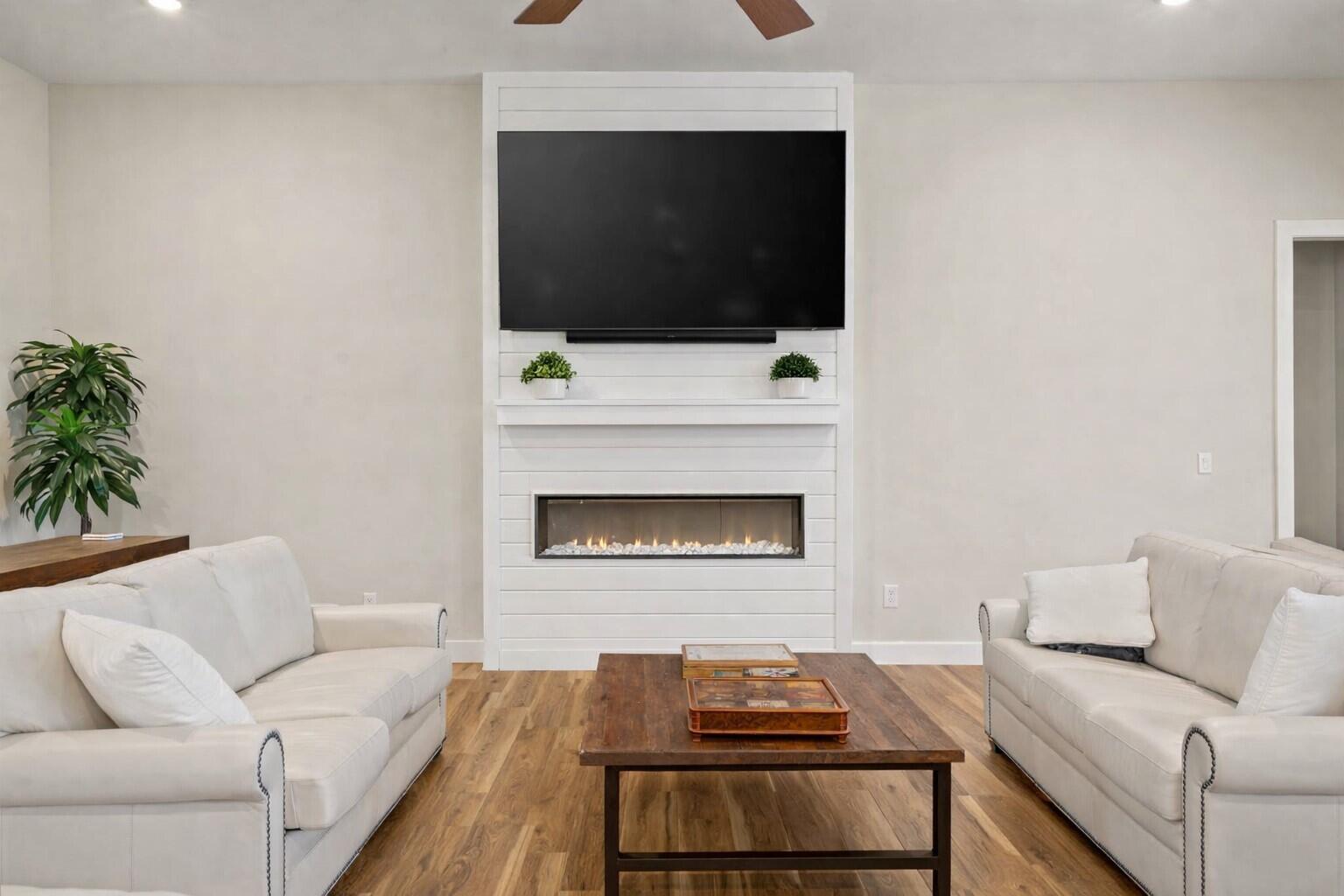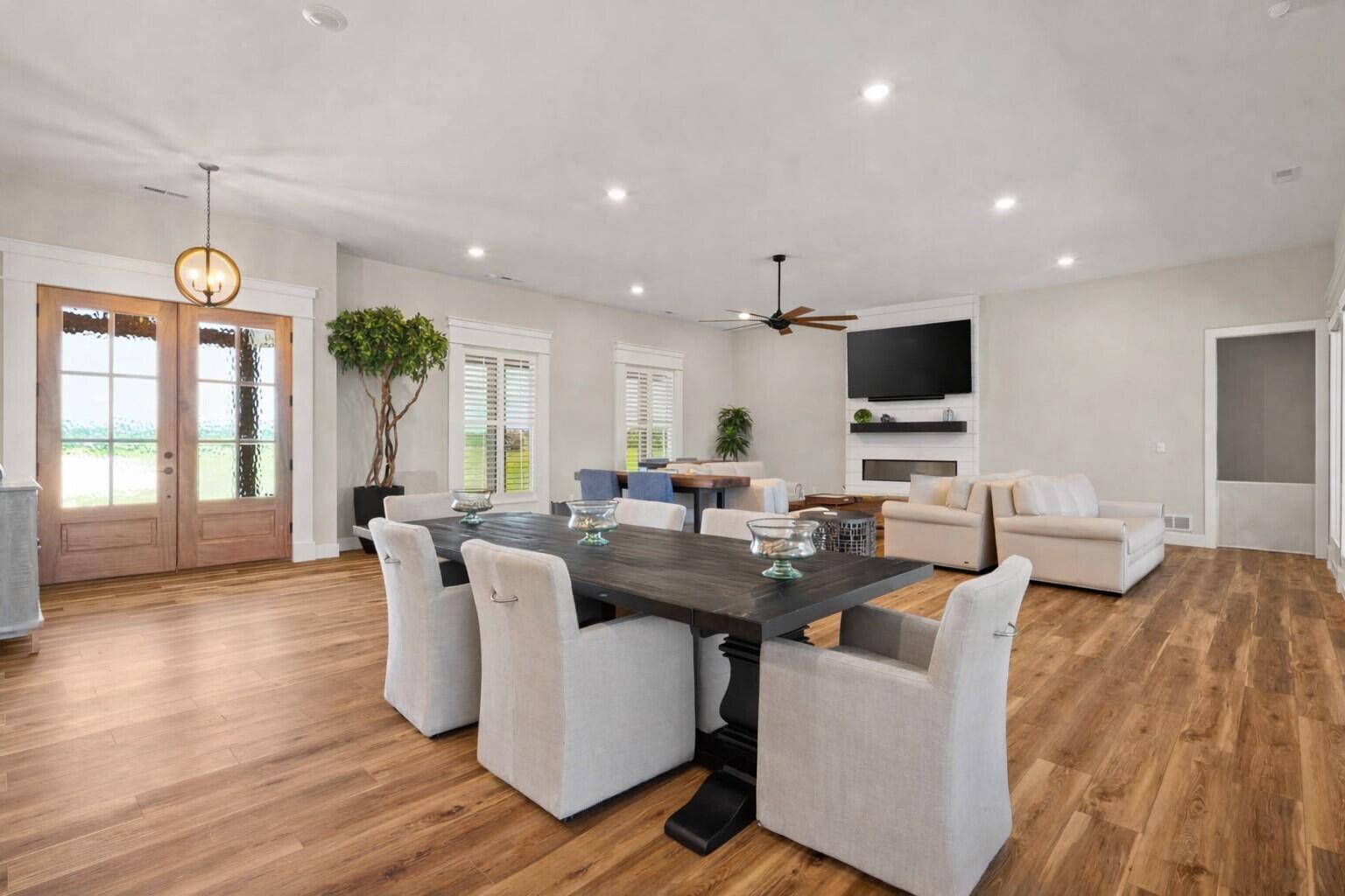 Welcome to Exclusive Home Builders newest model home for sale, a contemporary executive home set on a beautiful and private 2-acre lot in one of Rochesters most desirable locations. This newly constructed residence blends modern architecture with warm, intentional design, offering luxury that feels both refined and livable. The main level features wide-plank solid oak hardwood floors and an open-concept layout filled with natural light. At the heart of the home, the gourmet kitchen showcases an oversized island, quartz countertops, custom cabinetry, and a hidden walk-in pantry designed to keep the space both functional and visually stunning. The living room is anchored by a striking fireplace wrapped in European-style plaster and custom woodwork, creating a memorable focal point for everyday living and entertaining. The finished lower level is built for gathering, with a spacious family room and a full wet bar featuring custom cabinetry and a full-size refrigerator. Outdoor living is equally impressive, with a concrete patio and built-in firepit, plus a screened-in deck offering a peaceful retreat surrounded by nature. Thoughtfully designed and beautifully executed, this home delivers modern luxury, privacy, and lifestylean exceptional opportunity in the Rochester, MN market.