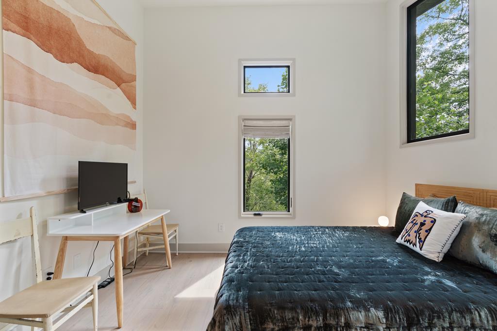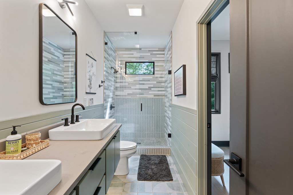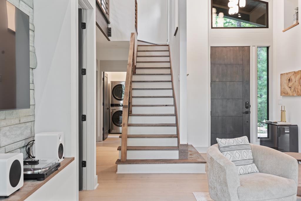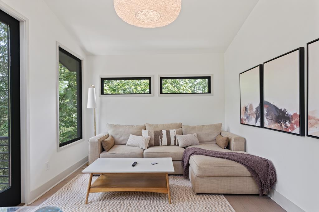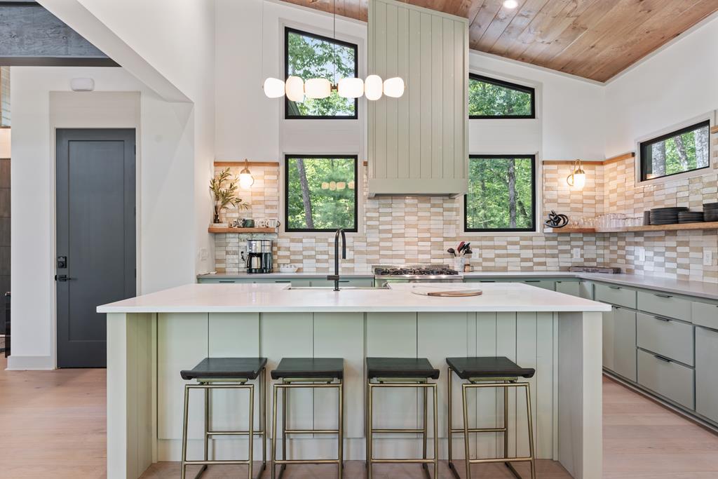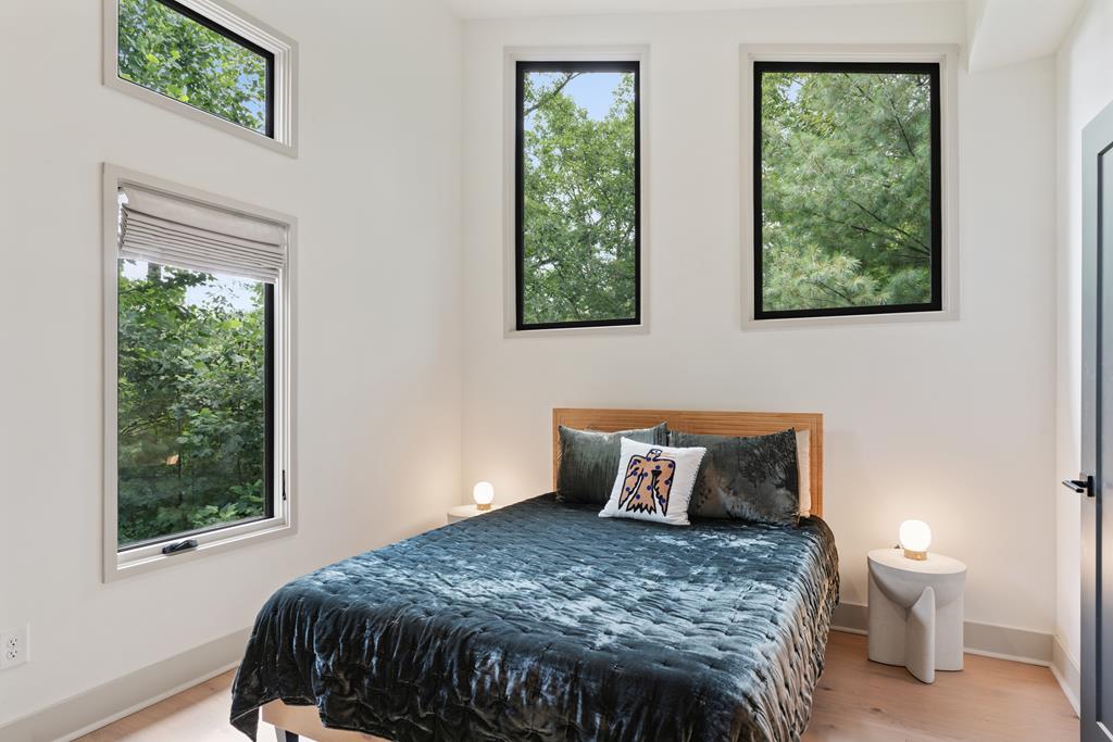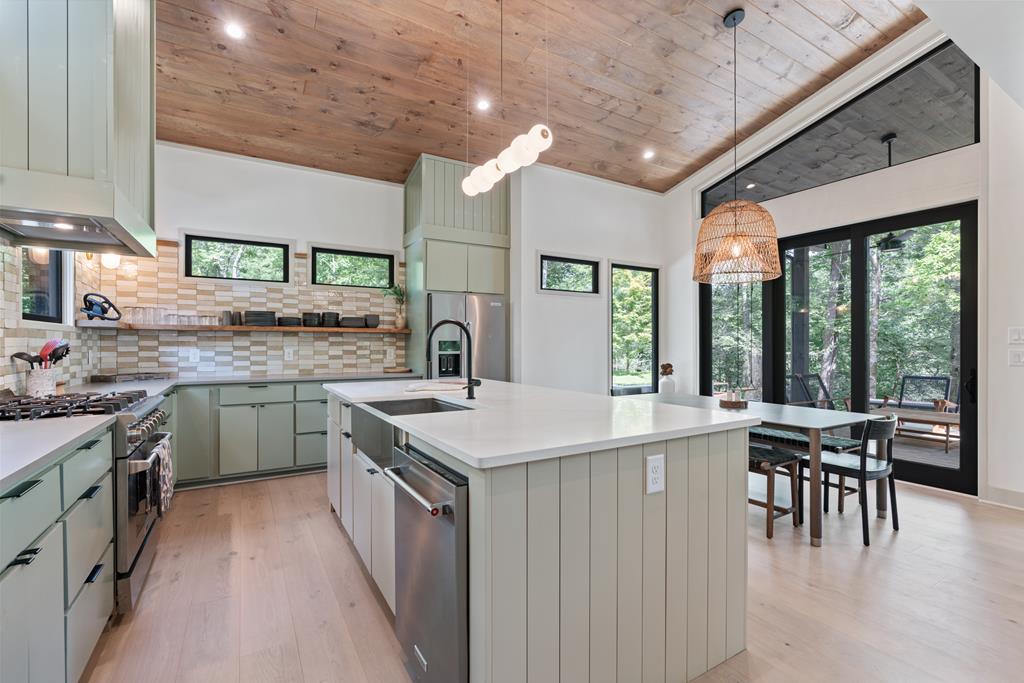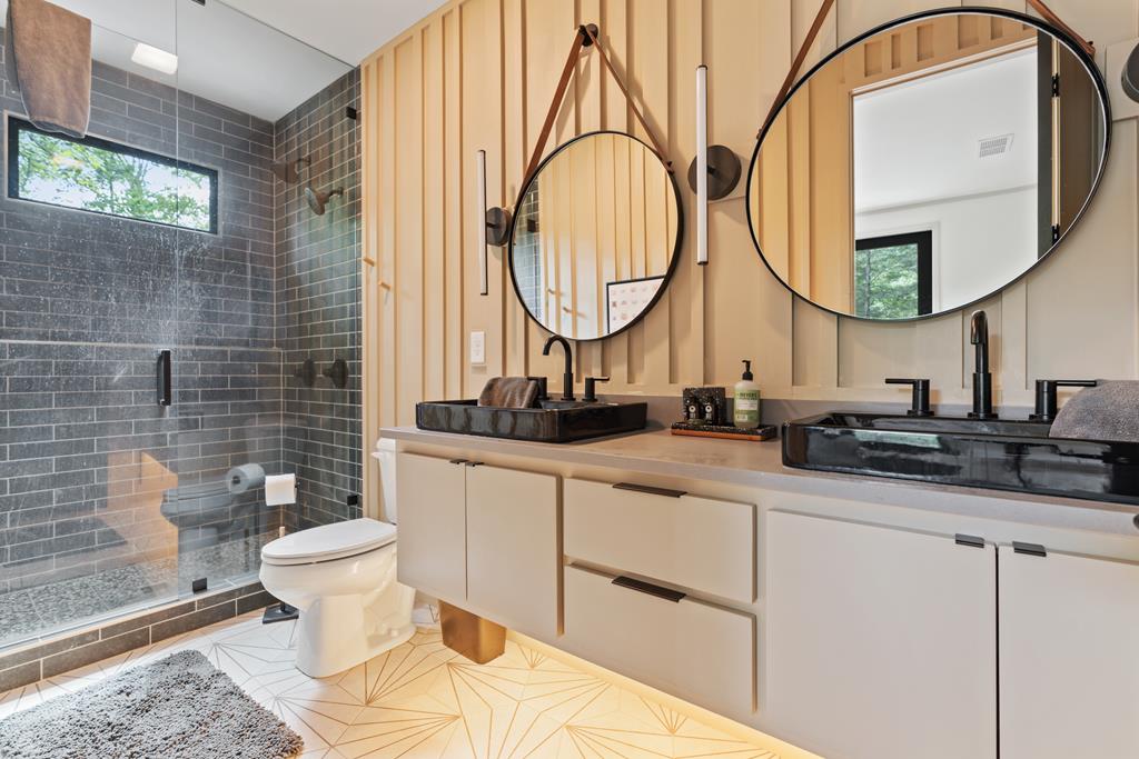 Wake up to the sound of your own private waterfall! Perched above a cascading mountain creek, this striking modern retreat delivers an experience defined by moving water, clean architectural lines, and total immersion in nature. Fall asleep to rushing water and enjoy morning coffee overlooking the falls from your private mountain sanctuary. This thoughtfully designed 4-bedroom, 3-bathroom home blends mid-century inspired architecture with warm wood tones, expansive glass, and crisp modern finishes. Large windows frame the forest canopy and flowing creek below, filling the open-concept living space with natural light. A dramatic fireplace anchors the main level, while the luxury kitchen features custom cabinetry, generous prep space, and a gas rangeperfect for entertaining after a day outdoors. The primary suite offers a true retreat, complete with a custom walk-in tile shower featuring double shower heads, creating a spa-like experience. The additional bedrooms and baths are equally well-appointed with contemporary finishes and thoughtful design. Outdoor living is where this property truly shines. Expansive gathering spaces are positioned to capture the sights and sounds of the waterfall. Soak in the hot tub, relax in the oversized hammock, gather around the fire pit, or step down to the creek for fly fishing in stocked trout waters within the Watersong community. Located just minutes from the renowned Pinhoti and Bear Creek trail systems, offering some of the best mountain biking and hiking in North Georgia, this home delivers rare access to adventure while maintaining exceptional privacy. A design-forward mountain retreat where modern luxury meets cascading water and year-round outdoor living.