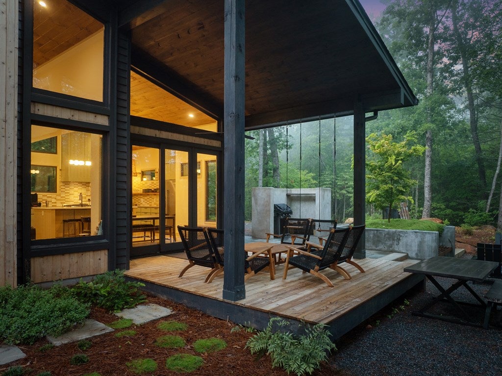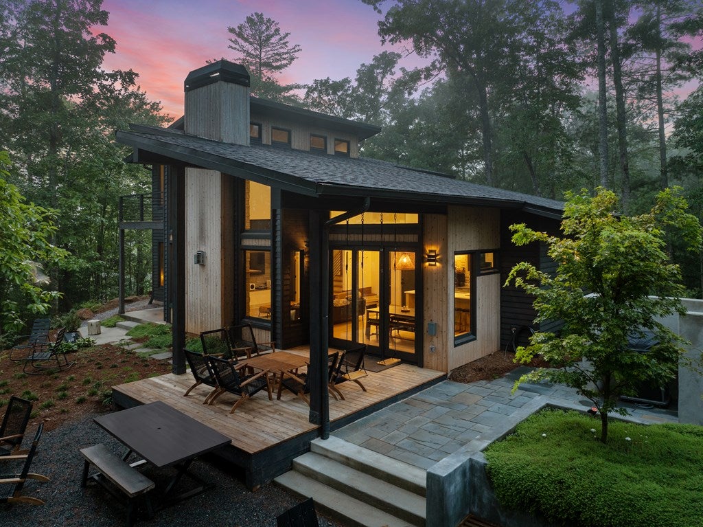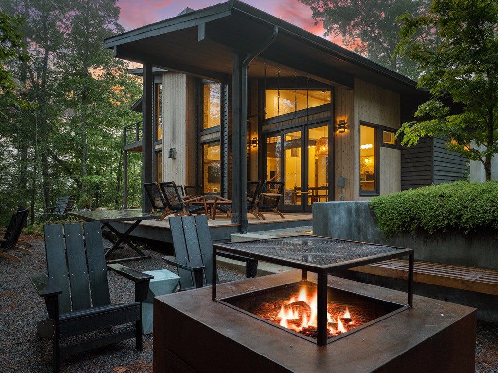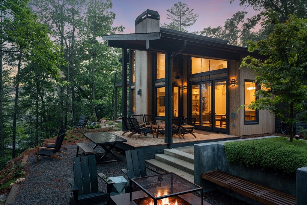 Wake up to the sound of your own private waterfall! Perched above a cascading mountain creek, this striking modern retreat delivers an experience defined by moving water, clean architectural lines, and total immersion in nature. Fall asleep to rushing water and enjoy morning coffee overlooking the falls from your private mountain sanctuary.