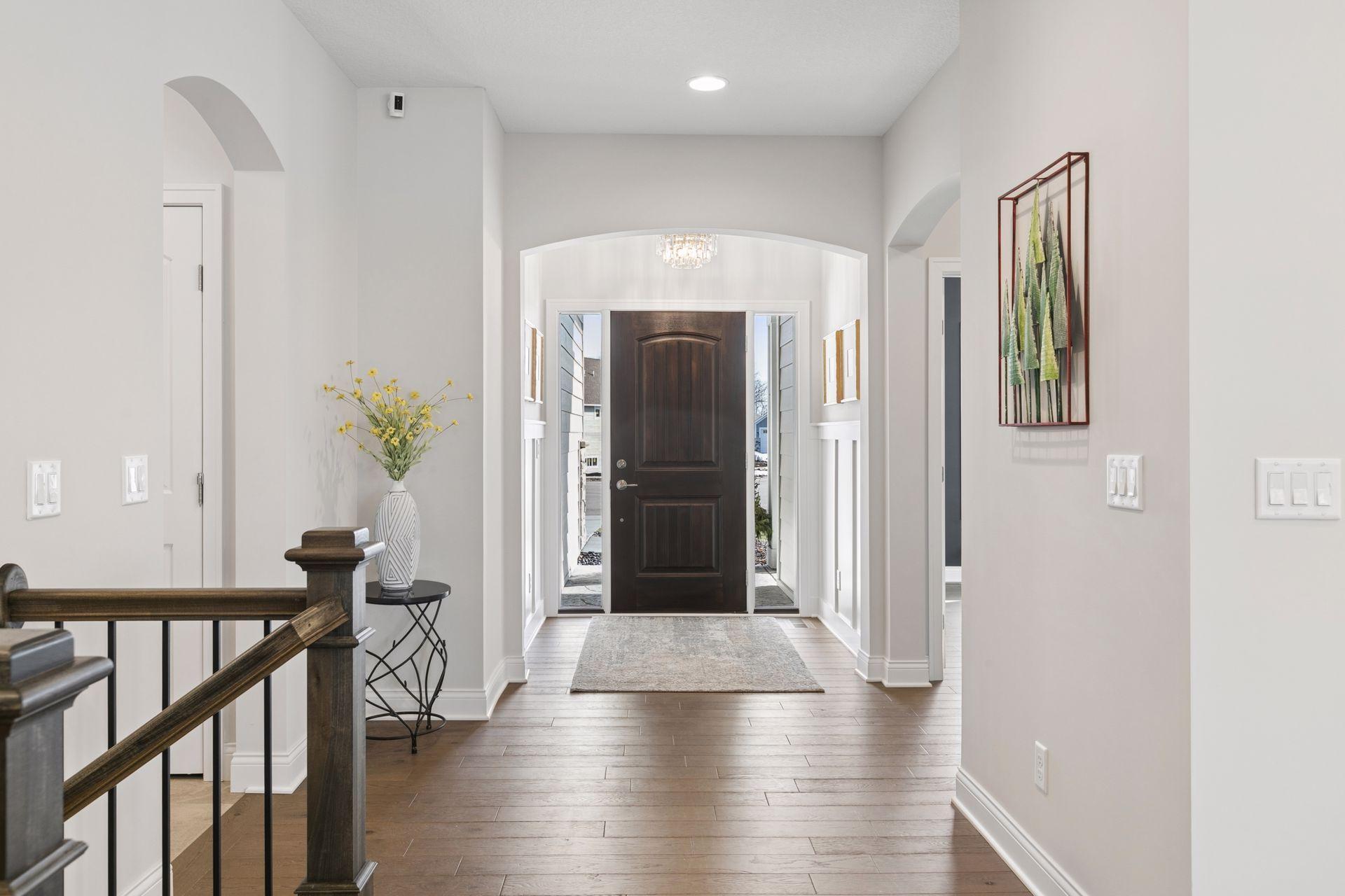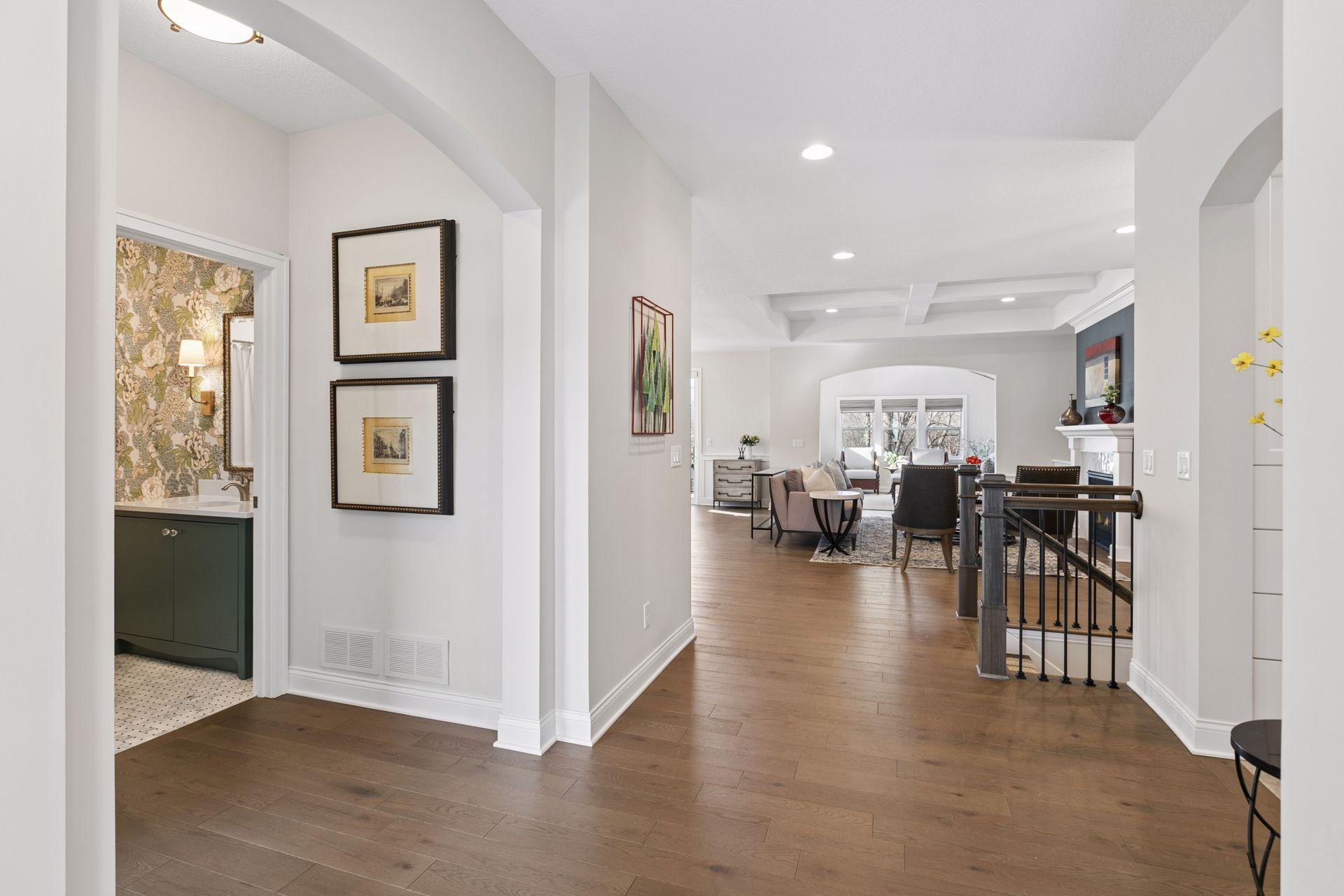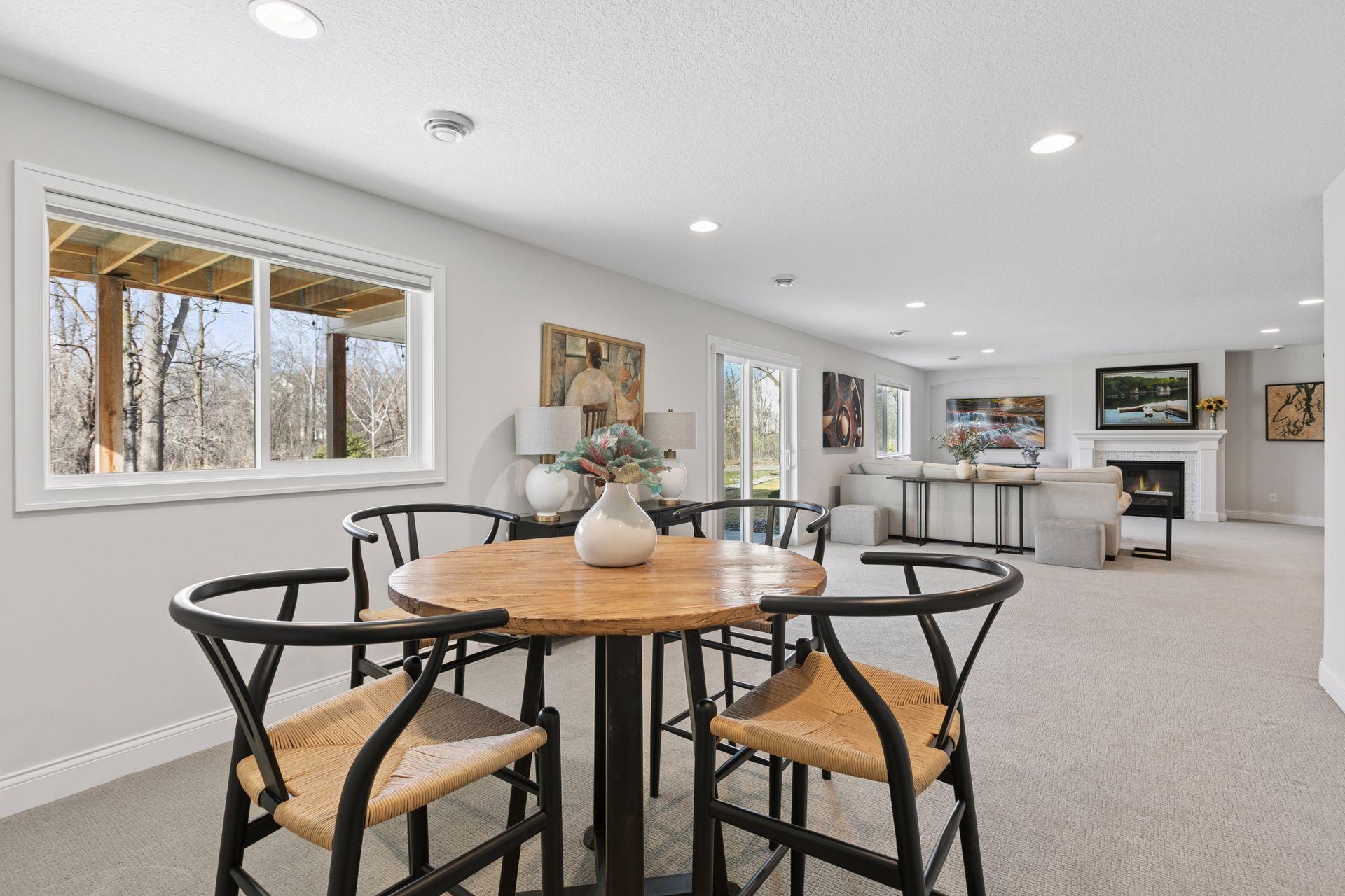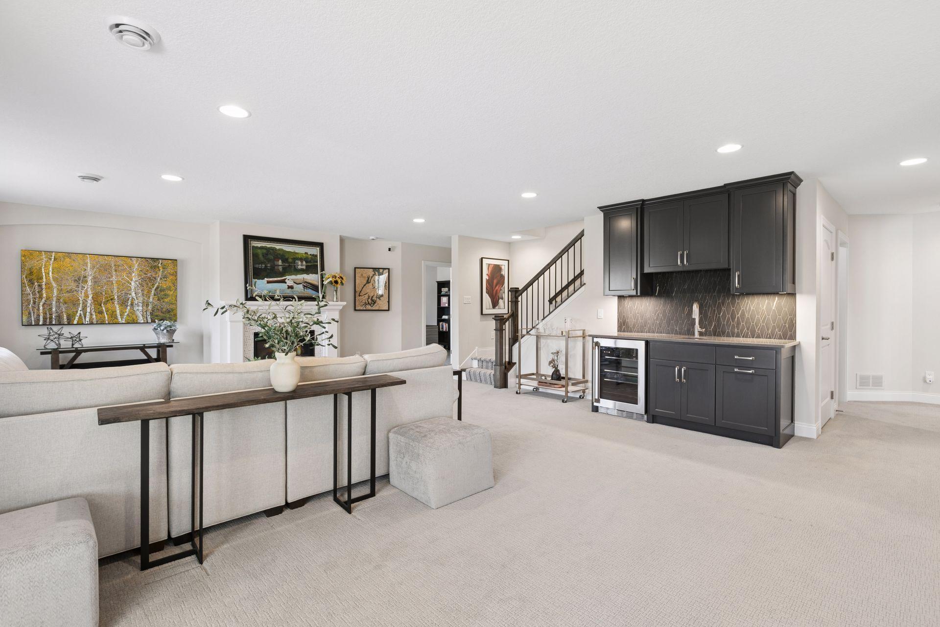 Architectural sophistication meets modern comfort in this impeccably upgraded home located on one of Timbers Edges most desirable lots.This 3,423 finished sq ft residence offers 4 bedrooms and 3 baths (or 3 bedrooms plus a dedicated office/flex room) and features rare zero-step entry, blending elegant design with exceptional functionality.The exterior showcases James Hardie siding, Pella 250 series windows, and upgraded professional landscaping with lighting. The oversized finished 3-car garage includes epoxy flooring, in-floor drain, unit heater, 40-amp EV charger, laundry tub, new cabinetry, and upgraded LED lighting.Inside, the designer kitchen features GE cafe appliances, upgraded quartz countertops, custom cabinetry with under-cabinet lighting, elevated lighting and plumbing fixtures, and a reverse osmosis water system.Refined living spaces include a vaulted four-season porch with architectural wood ceiling and remote-controlled custom window treatments, textured designer carpeting, crown molding, and heated floors in both the main and primary bathrooms.The walkout lower level offers a spacious family room with fireplace, wet bar, game/gathering area, two additional bedrooms or an office, storage with epoxy flooring, and walkout to a concrete patio.A Ring security system inside & out provides peace of mind.