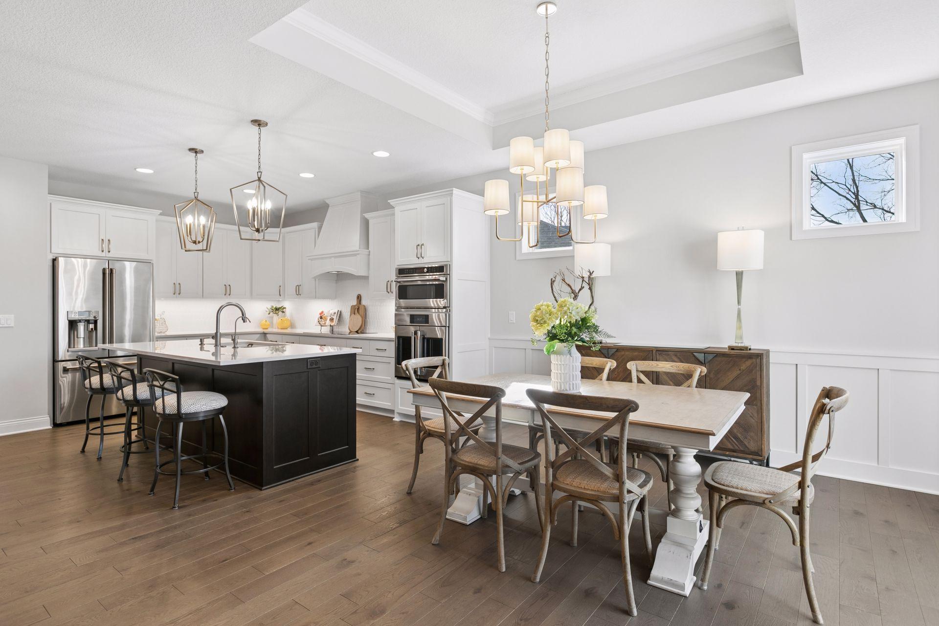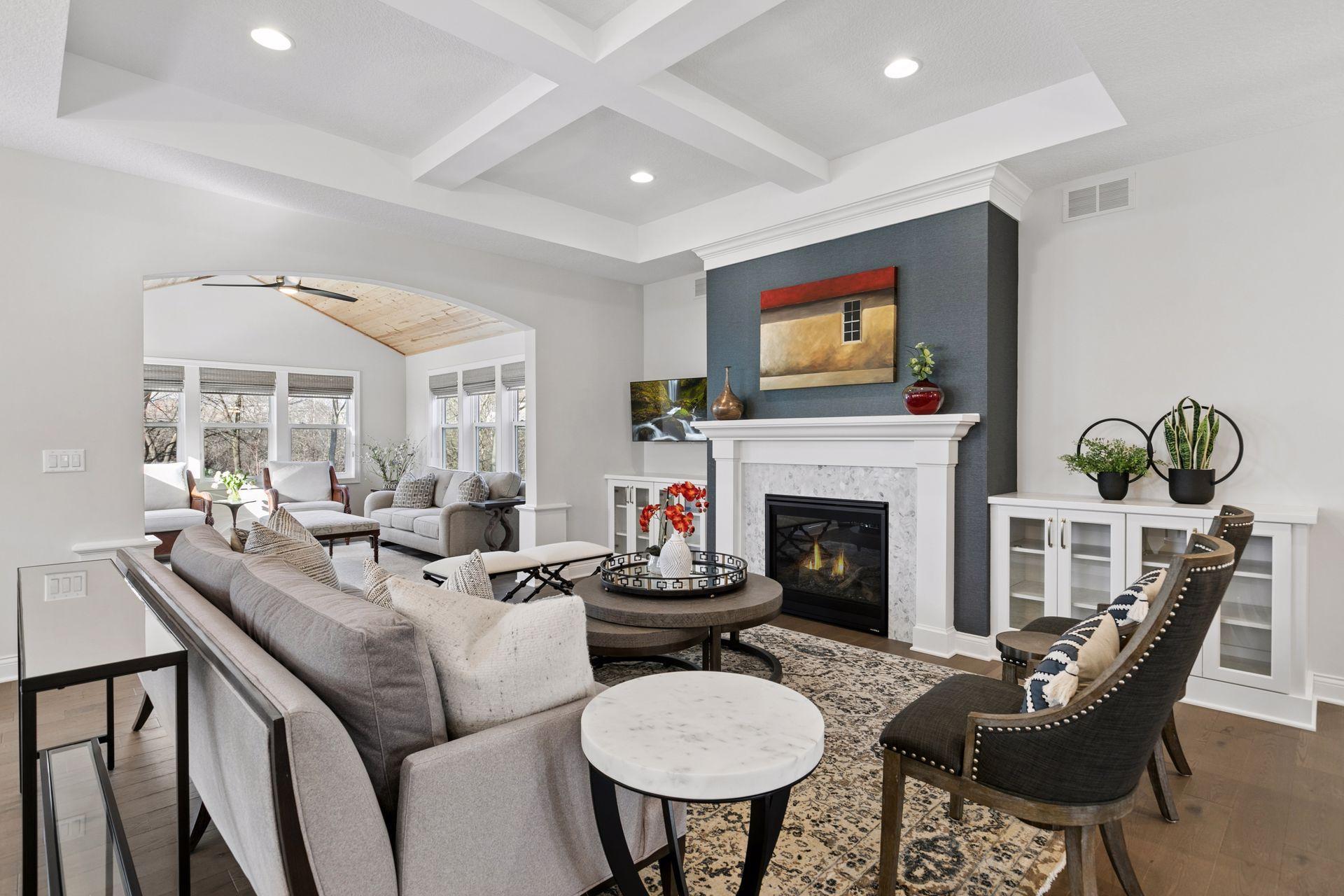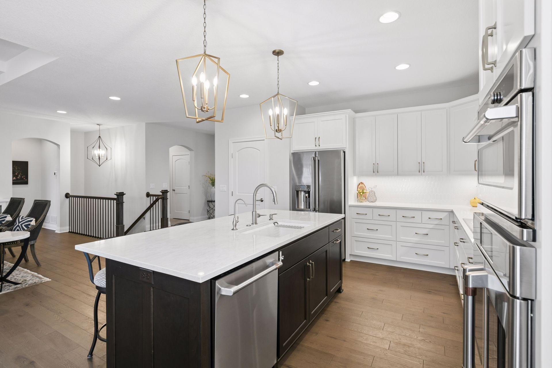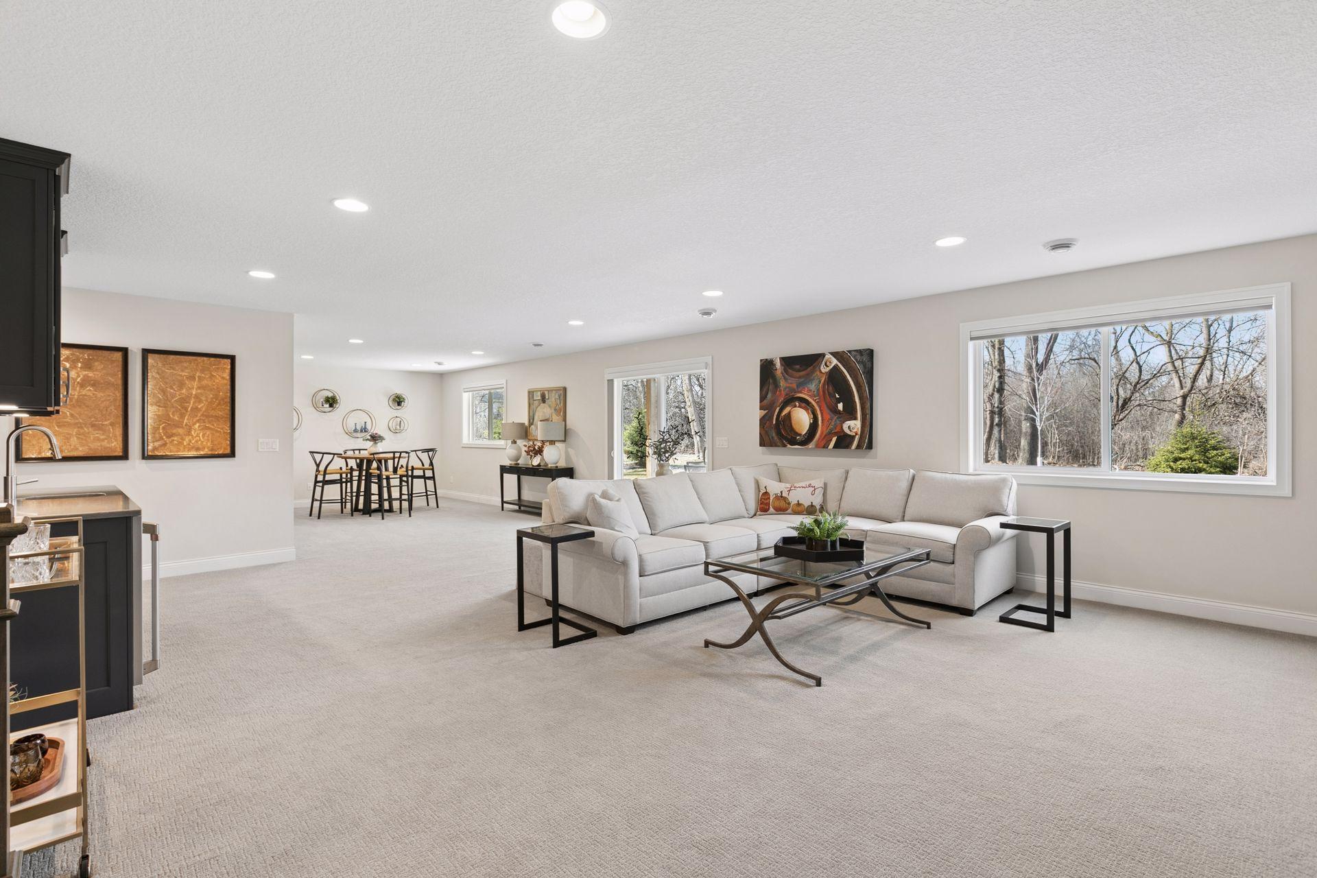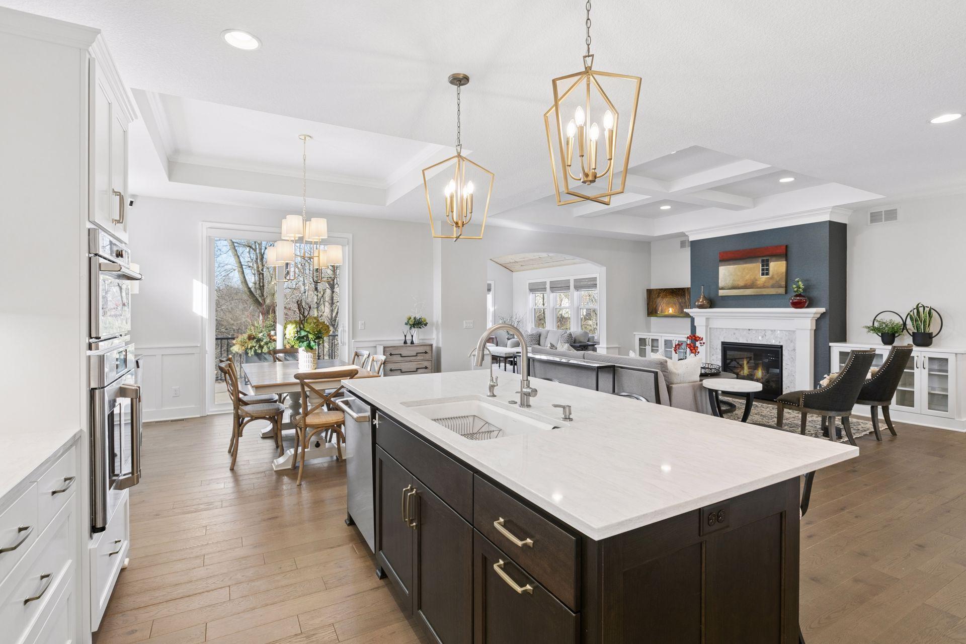 Architectural sophistication meets modern comfort in this impeccably upgraded home located on one of Timbers Edges most desirable lots.This 3,423 finished sq ft residence offers 4 bedrooms and 3 baths (or 3 bedrooms plus a dedicated office/flex room) and features rare zero-step entry, blending elegant design with exceptional functionality.The exterior showcases James Hardie siding, Pella 250 series windows, and upgraded professional landscaping with lighting. The oversized finished 3-car garage includes epoxy flooring, in-floor drain, unit heater, 40-amp EV charger, laundry tub, new cabinetry, and upgraded LED lighting.Inside, the designer kitchen features GE cafe appliances, upgraded quartz countertops, custom cabinetry with under-cabinet lighting, elevated lighting and plumbing fixtures, and a reverse osmosis water system.Refined living spaces include a vaulted four-season porch with architectural wood ceiling and remote-controlled custom window treatments, textured designer carpeting, crown molding, and heated floors in both the main and primary bathrooms.The walkout lower level offers a spacious family room with fireplace, wet bar, game/gathering area, two additional bedrooms or an office, storage with epoxy flooring, and walkout to a concrete patio.A Ring security system inside & out provides peace of mind.