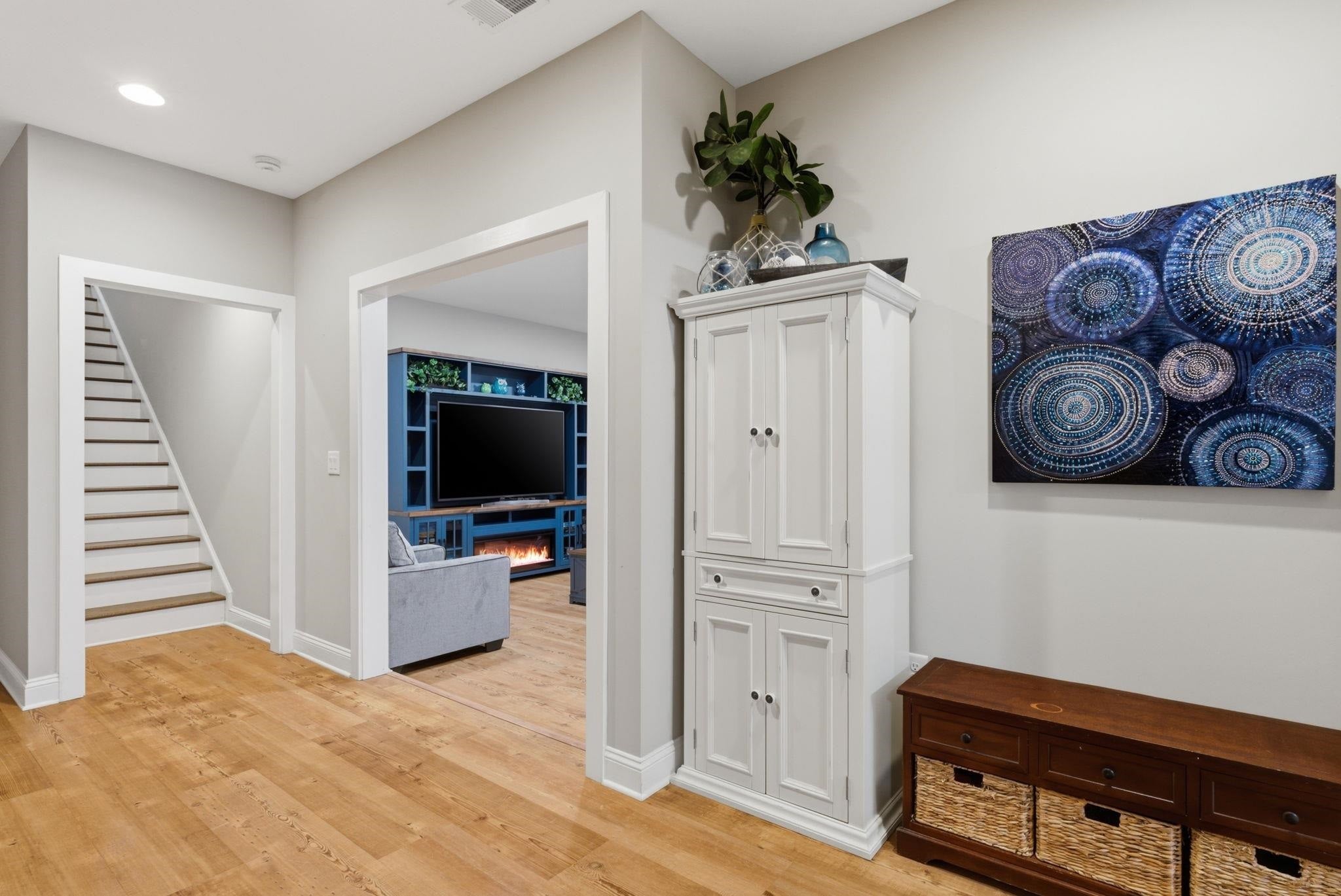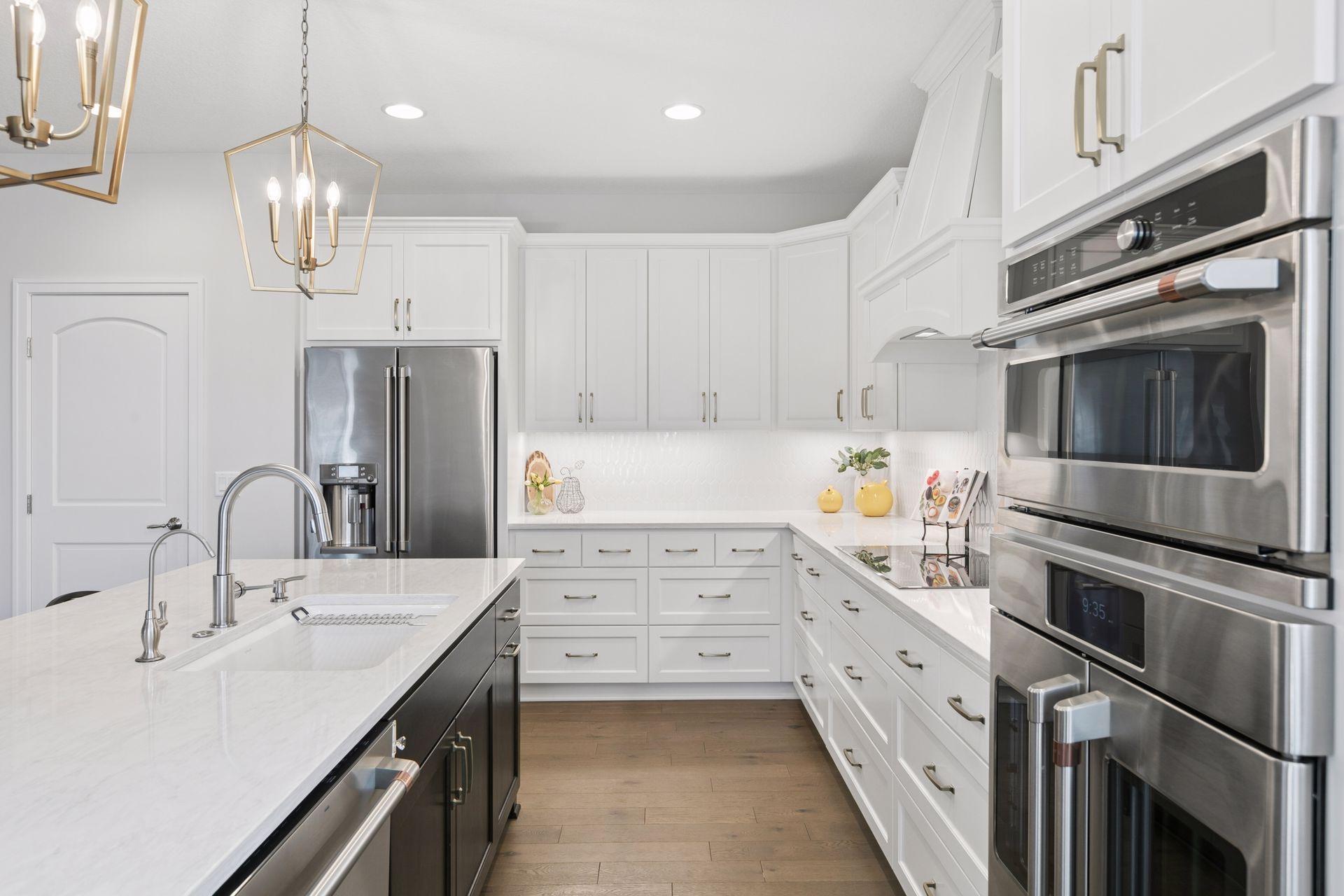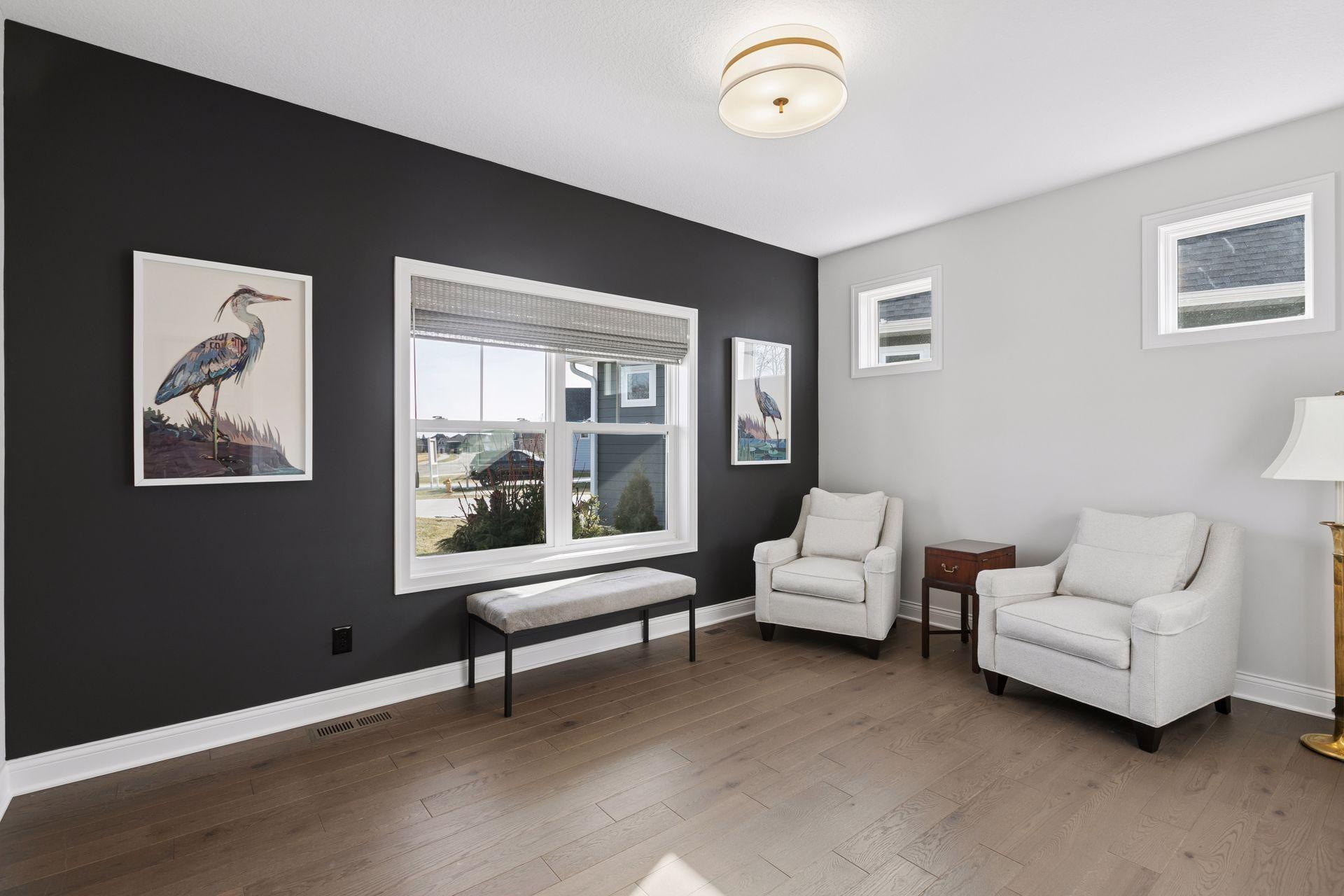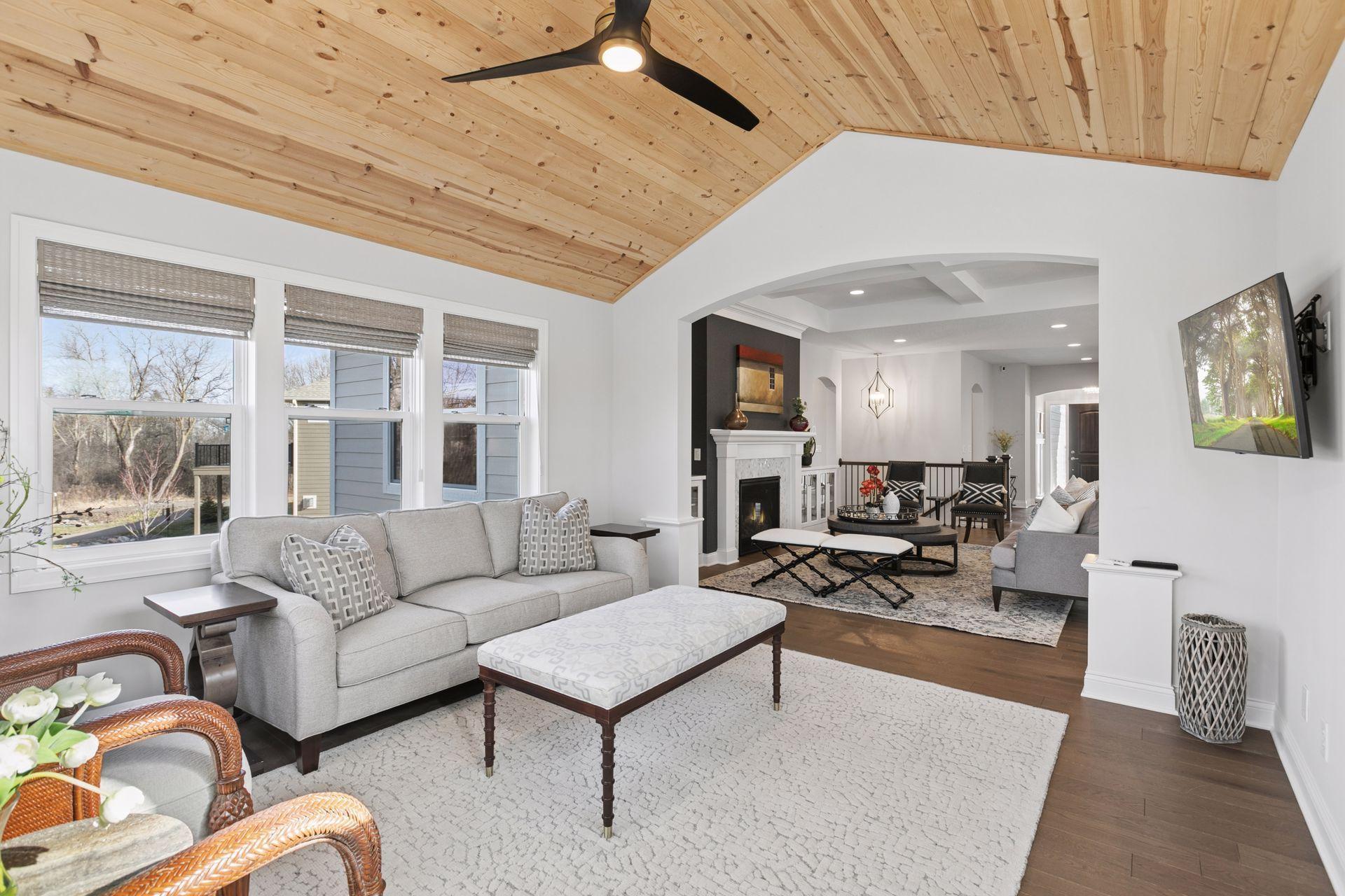 Architectural sophistication meets modern comfort in this impeccably upgraded home located on one of Timbers Edges most desirable lots.This 3,423 finished sq ft residence offers 4 bedrooms and 3 baths (or 3 bedrooms plus a dedicated office/flex room) and features rare zero-step entry, blending elegant design with exceptional functionality.The exterior showcases James Hardie siding, Pella 250 series windows, and upgraded professional landscaping with lighting. The oversized finished 3-car garage includes epoxy flooring, in-floor drain, unit heater, 40-amp EV charger, laundry tub, new cabinetry, and upgraded LED lighting.Inside, the designer kitchen features GE cafe appliances, upgraded quartz countertops, custom cabinetry with under-cabinet lighting, elevated lighting and plumbing fixtures, and a reverse osmosis water system.Refined living spaces include a vaulted four-season porch with architectural wood ceiling and remote-controlled custom window treatments, textured designer carpeting, crown molding, and heated floors in both the main and primary bathrooms.The walkout lower level offers a spacious family room with fireplace, wet bar, game/gathering area, two additional bedrooms or an office, storage with epoxy flooring, and walkout to a concrete patio.A Ring security system inside & out provides peace of mind.
