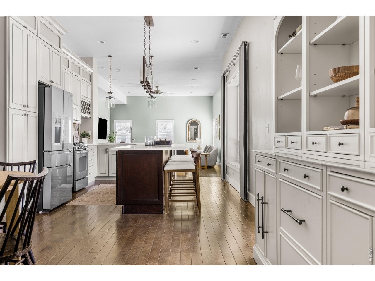 Tucked into a quiet, serene setting, this exceptional home offers the perfect blend of privacy, comfort, and modern luxuryall on 1.3 beautifully treed acres just minutes from Fox Run Regional Park. Boasting approximately 4,700 sqft, this thoughtfully designed ranch-style home with a walk-out basement features 5 spacious bdrms, 3 baths, 3 cozy fireplaces and ALL NEW CARPET. The open, light-filled floor plan creates an inviting atmosphere, ideal for both everyday living and entertaining. No detail has been overlooked. Enjoy high-end finishes throughout, including granite countertops, rich hardwood flooring and a stunning stucco exterior accented with wood and stone. French doors open toa flexible space for a guest bedroom, home office or study to suit your lifestyle. The gourmet kitchen, which features stainless steel appliances, a movable granite island and a double oven, flows seamlessly into the main living areas. Step outside to a covered deck overlooking a beautiful mix of mature trees, open space and a landscaped pond with a waterfall feature and putting green. The Primary bedroom located on the Main Level is the ultimate retreat with an ensuite 5-piece bath w/ jetted tub, fireplace and heated floors. The fully finished walk-out basement offers additional living space complete with a pool table, fireplace, wet bar and media/bonus room. Perfect for entertaining! Each bathroom offers an added touch of luxury with individual thermostats for radiant heated tile floors. The basement level walks out to a covered, concrete patio in a private, treed setting- pre-wired for a hot tub. Additional highlights include a circular driveway w/gates, a finished attached 3 car garage, fully fenced back yard, storage shed w/dog kennels, a chicken coop and a fabulous 36x40 Barn for additional vehicles, RV parking and more! This is a rare opportunity to enjoy peaceful, private living without sacrificing convenience. Truly a one-of-a-kind property - come experience it for yourself!