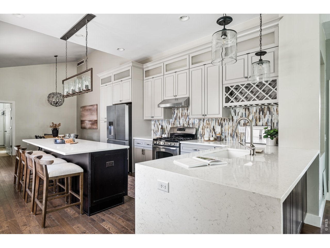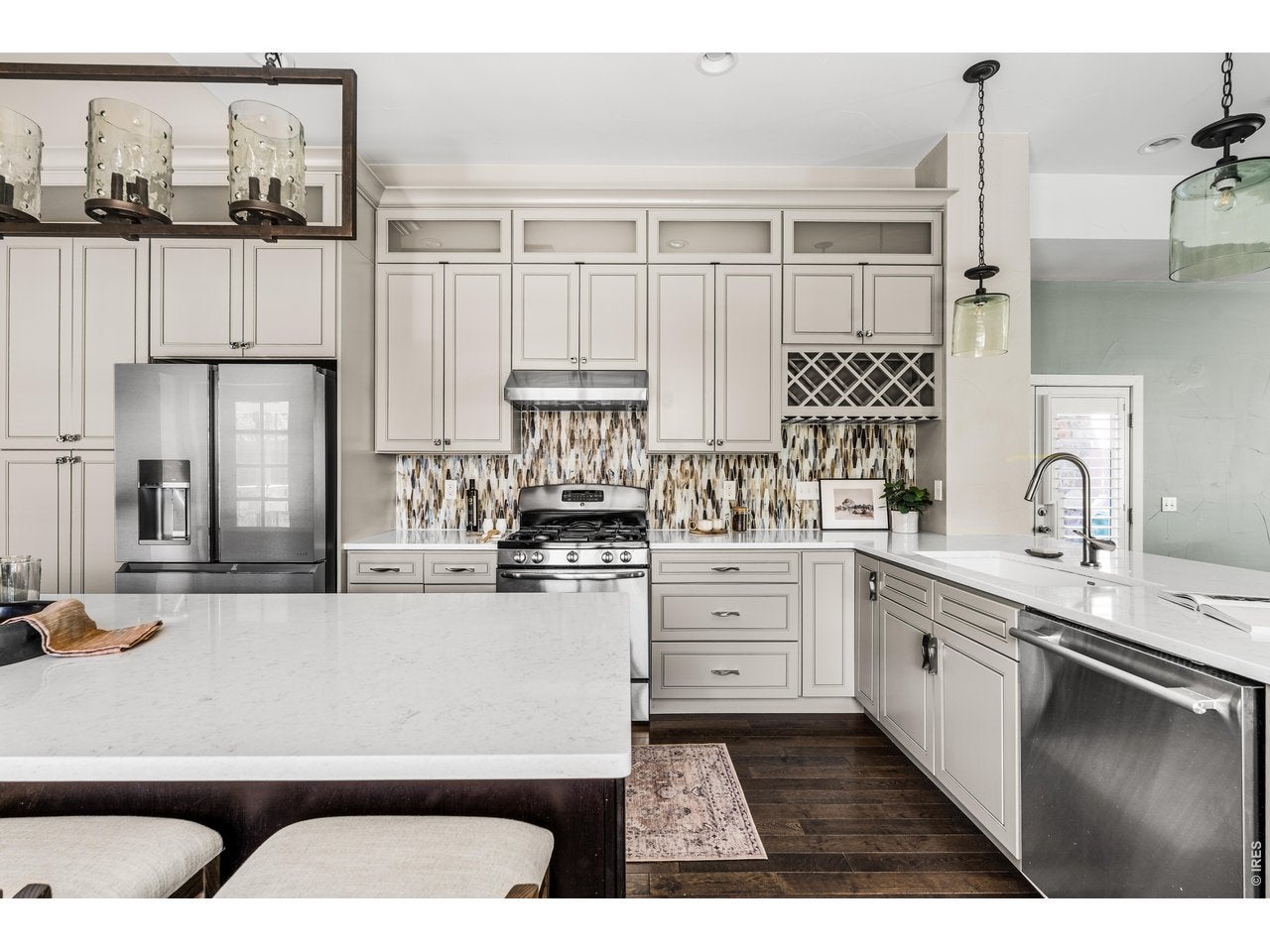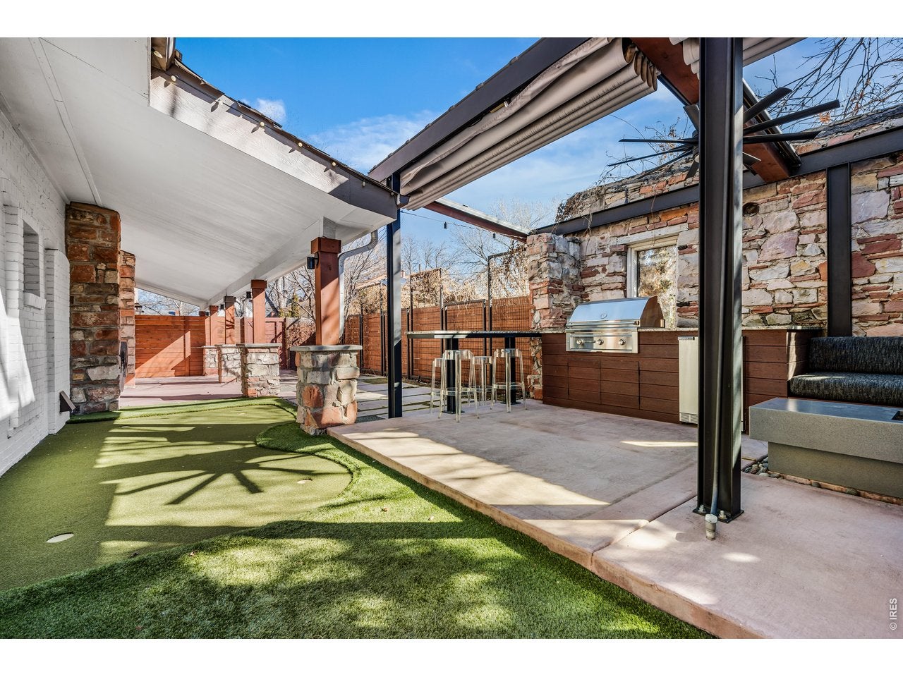 Welcome to this updated home in the heart of Denvers Sunnyside neighborhood. This thoughtfully designed residence offers 3 bedrooms, 3 bathrooms, & a 2-car attached garage, blending modern comfort with stylish finishes & indoor-outdoor living. Popped-top & renovated down to the studs in 2012, the home offers the benefits of newer construction while maintaining neighborhood charm. The main level features an open layout with high ceilings, natural light, & hardwood floors. The living room flows into the dining area & kitchen, creating an ideal space for everyday living & entertaining. The kitchen showcases quartz countertops, stainless steel appliances, updated 42 cabinets with uppers, & a large island with seating, while an included hutch & dining area add character & functionality. The main level is completed by a renovated mudroom with newer washer/dryer, an office area with custom built-in cabinets, & a powder room with vibrant wallpaper. Upstairs, the primary suite with wood accent wall serves as a retreat with vaulted ceilings & refined finishes. The remodeled spa-inspired ensuite bathroom features a freestanding soaking tub against a glass herringbone tile accent wall. The space is finished with decorative tile flooring, a dual-sink vanity with makeup vanity, & a steam shower with built-in speakers & an integrated essential oil diffusing system. Completing the suite is a custom walk-in closet with built-in organization. Two additional bedrooms & a full bathroom upstairs provide accommodations for family, guests, or a home office. Additional updates include sewer line replacement with exterior access points & AC replacement with regular HVAC servicing. Step outside to a private backyard oasis designed for Colorado living. The fenced yard features professional landscaping, a pergola-covered patio, retractable awning, built-in Lynx grill, fire pit, & putting green. Located minutes from parks, restaurants, coffee shops, & all that Sunnyside & the Highlands offer.