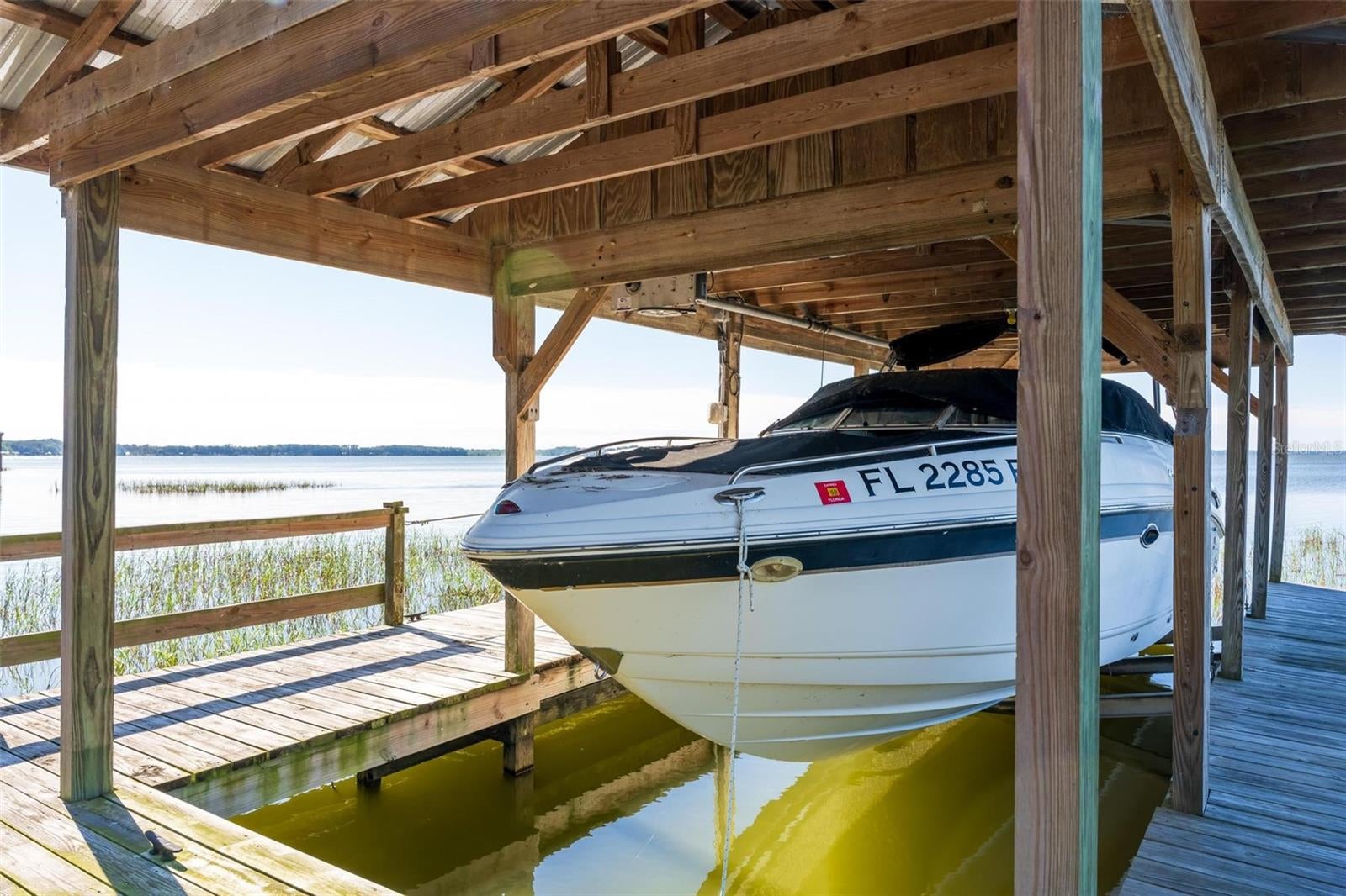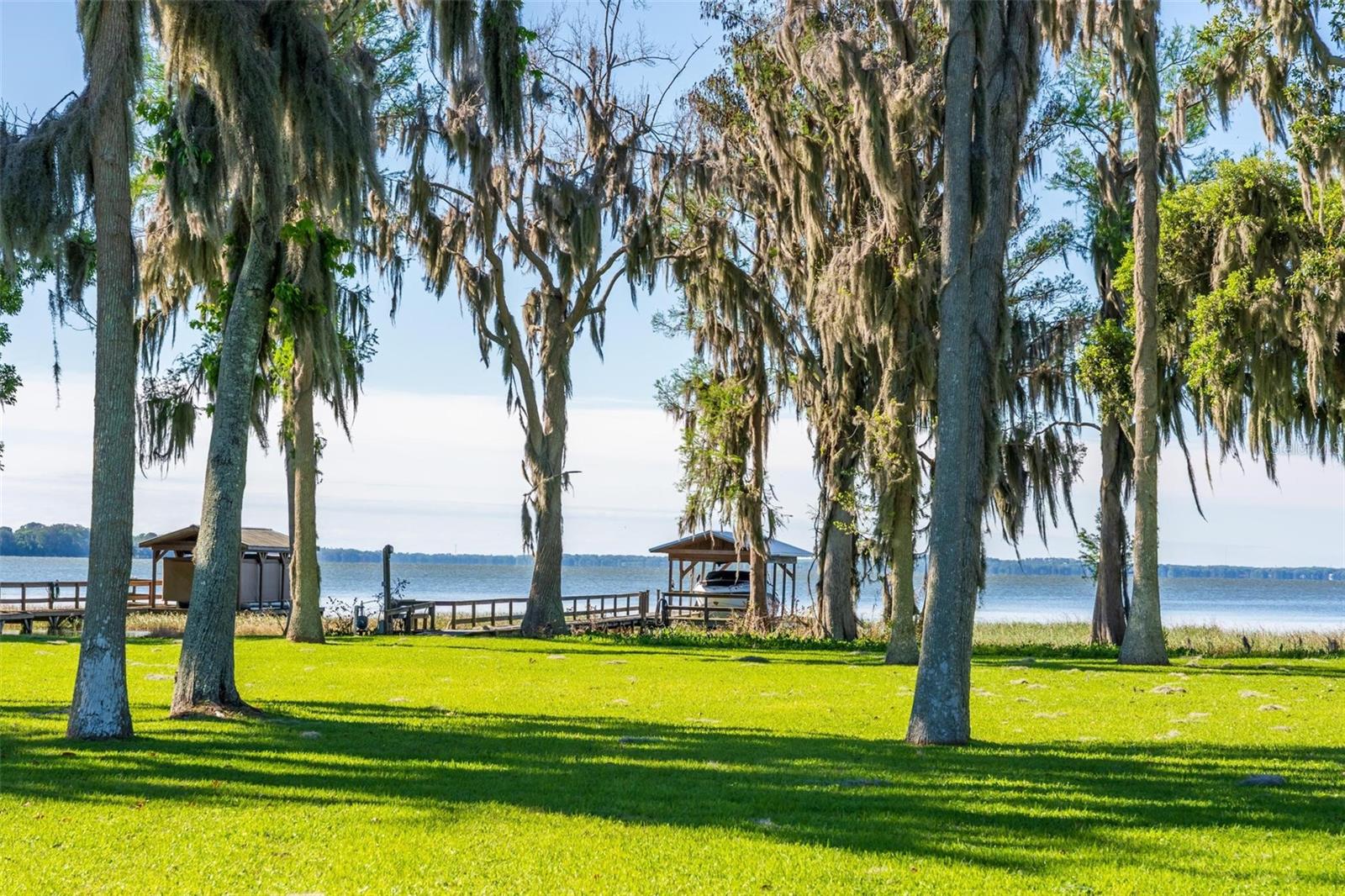 Welcome to 10220 Bumblebee Lane in Leesburg, a truly one-of-a-kind lakefront estate on the legendary Harris Chain of Lakes where luxury, versatility, and lifestyle collide on a sprawling 1.35-acre property with a 164 dock fully equipped with power, water, lighting, and a mechanical lift that even includes a 2002 Chaparral 260 SSi and trailersetting the tone for unforgettable days and nights on the water before you ever step inside; once you do, the home immediately captivates with breathtaking panoramic views through dual 12 accordion sliders that open to the pool and lake beyond, showcasing a completely renovated 34 x 25 open-concept living, dining, and kitchen space with soaring cathedral ceilings and an entertainers dream kitchen featuring an oversized island, farmhouse sink, premium KitchenAid appliances, and even two dishwashers for those lively gatherings, while the thoughtfully designed layout offers three bedrooms downstairs plus a private approximately 725 sq ft upstairs in-law suite with its own exterior and interior entrances, kitchenette, washer/dryer combo, and full bath, perfect for multigenerational living, guests, or income potential, along with a hidden 4 x 30 walkable storage corridor cleverly tucked behind the walls; the primary suite delivers a true retreat with French doors to the pool, dual walk-in closets, split granite vanities, a jacuzzi tub, and an accessible walk-in shower, complemented by wide 36 doorways, spacious hallways, accessible bathrooms, and a seamless garage entry all designed for ease and comfort, while outside youll also find a dedicated full bath for pool and lake days, a powered 12x12 shed, and a 40 x 10 storage container with ventilation, skylight, and industrial storage; the expansive grounds provide ample room for RVs, boats, trailers, future additions, or simply enjoying the privacy and space rarely found on the Chain, with mature landscaping and open skies creating a peaceful retreat just minutes from town, and when it comes to lifestyle, boating from your backyard opens the door to iconic destinations like the scenic Dora Canal, waterfront dining in Tavares at Tiki West Raw Bar & Grill or Ironworks Steakhouse, or an afternoon in charming Mount Dora with stops at The Goblin Market or Pisces Rising for dining and live entertainment, plus convenient access to Orlando, world-renowned attractions, and Floridas beautiful east and west coast beaches, making this not just a home but a gateway to the ultimate Central Florida lake lifeopportunities like this are rare, so if youve been dreaming of owning on the Chain, this is your moment.