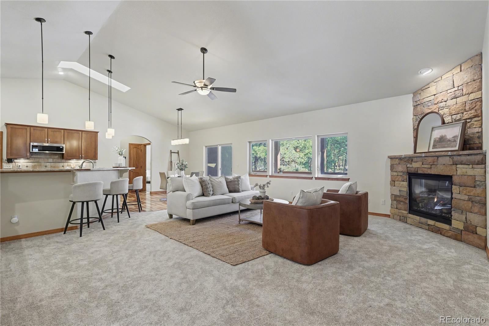 Tucked into a quiet, serene setting, this exceptional home offers the perfect blend of privacy, comfort, and modern luxuryall on 1.3 beautifully treed acres just minutes from Fox Run Regional Park. Boasting approximately 4,700 sqft, this thoughtfully designed ranch-style home with a walk-out basement features 5 spacious bdrms, 3 baths, 3 cozy fireplaces and ALL NEW CARPET.