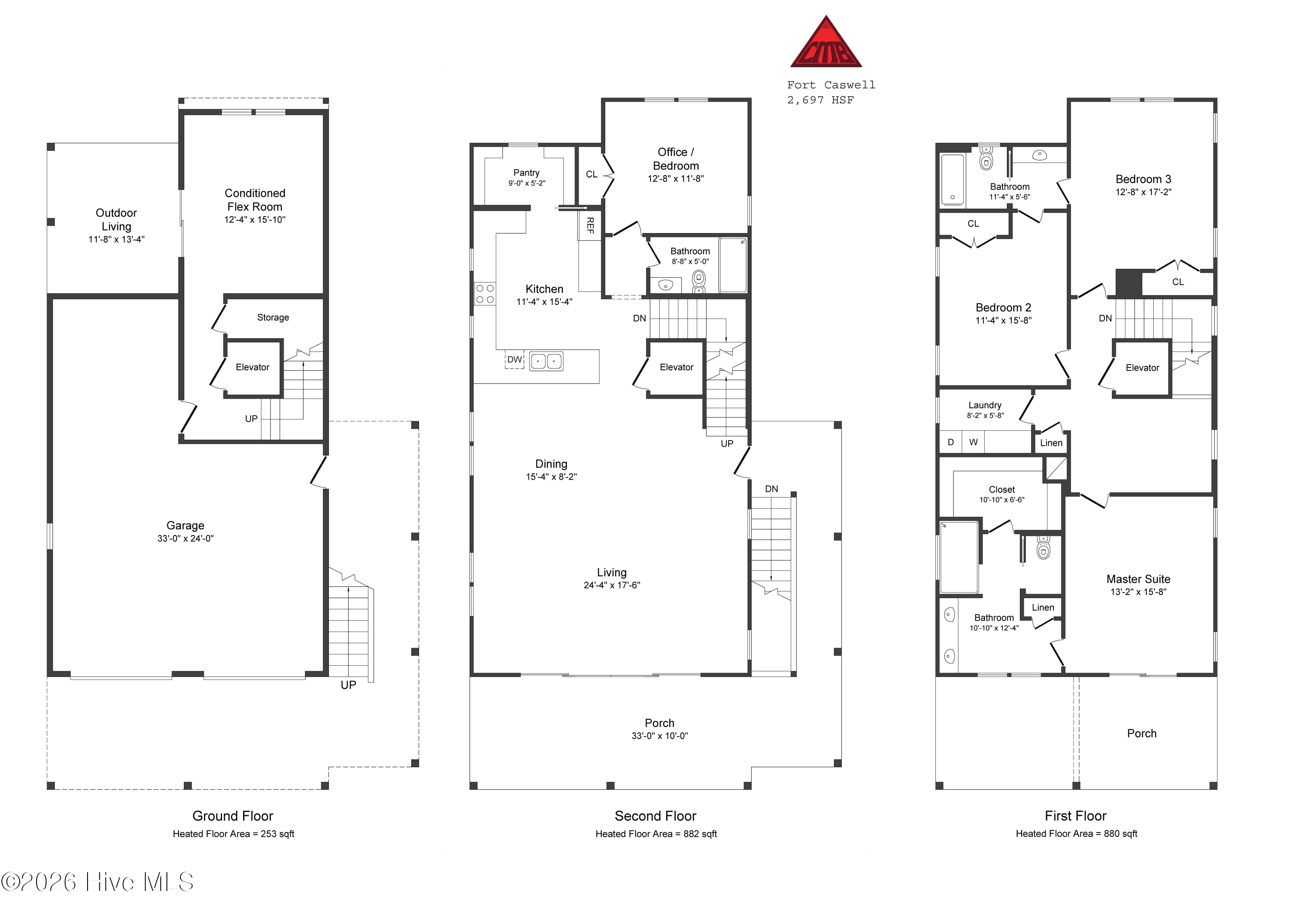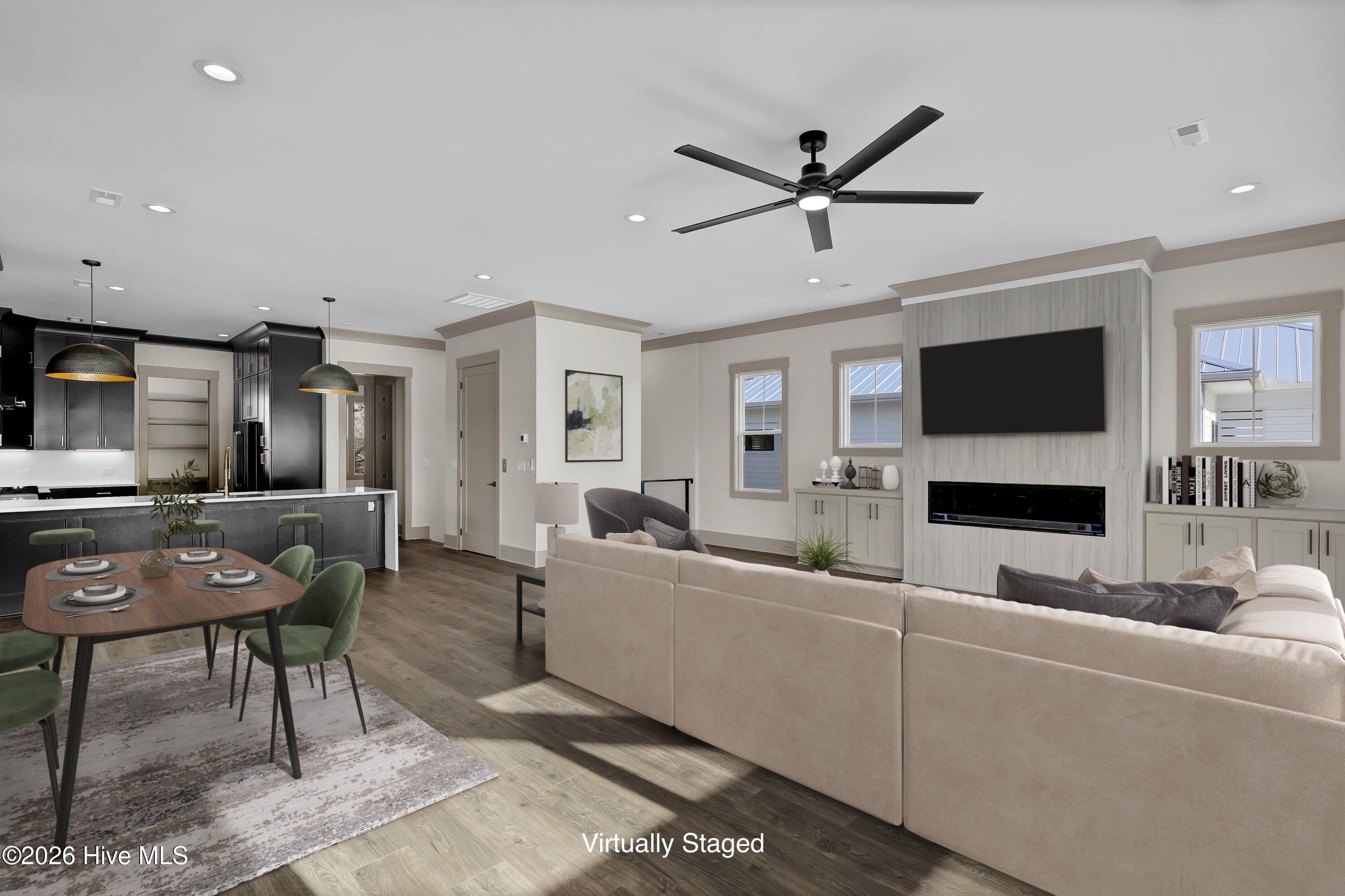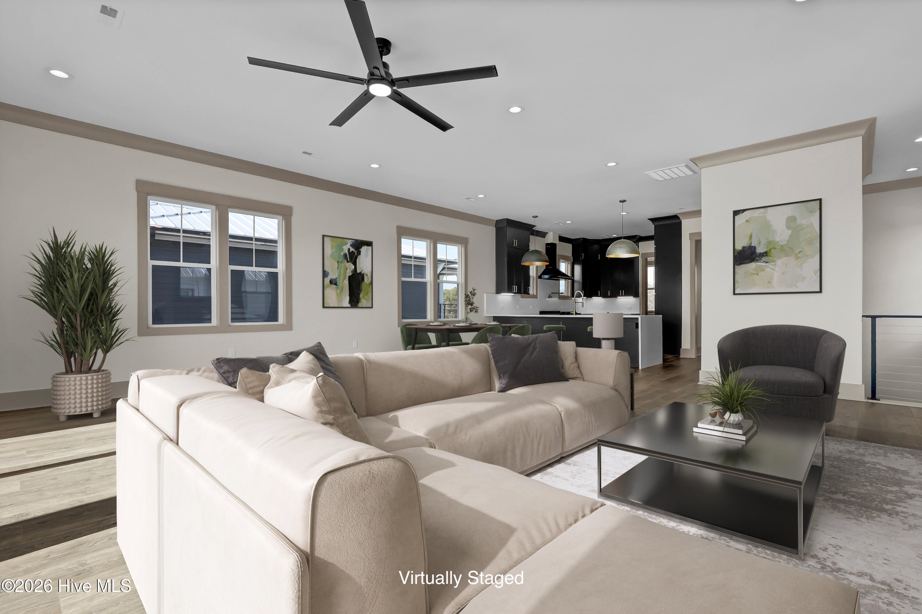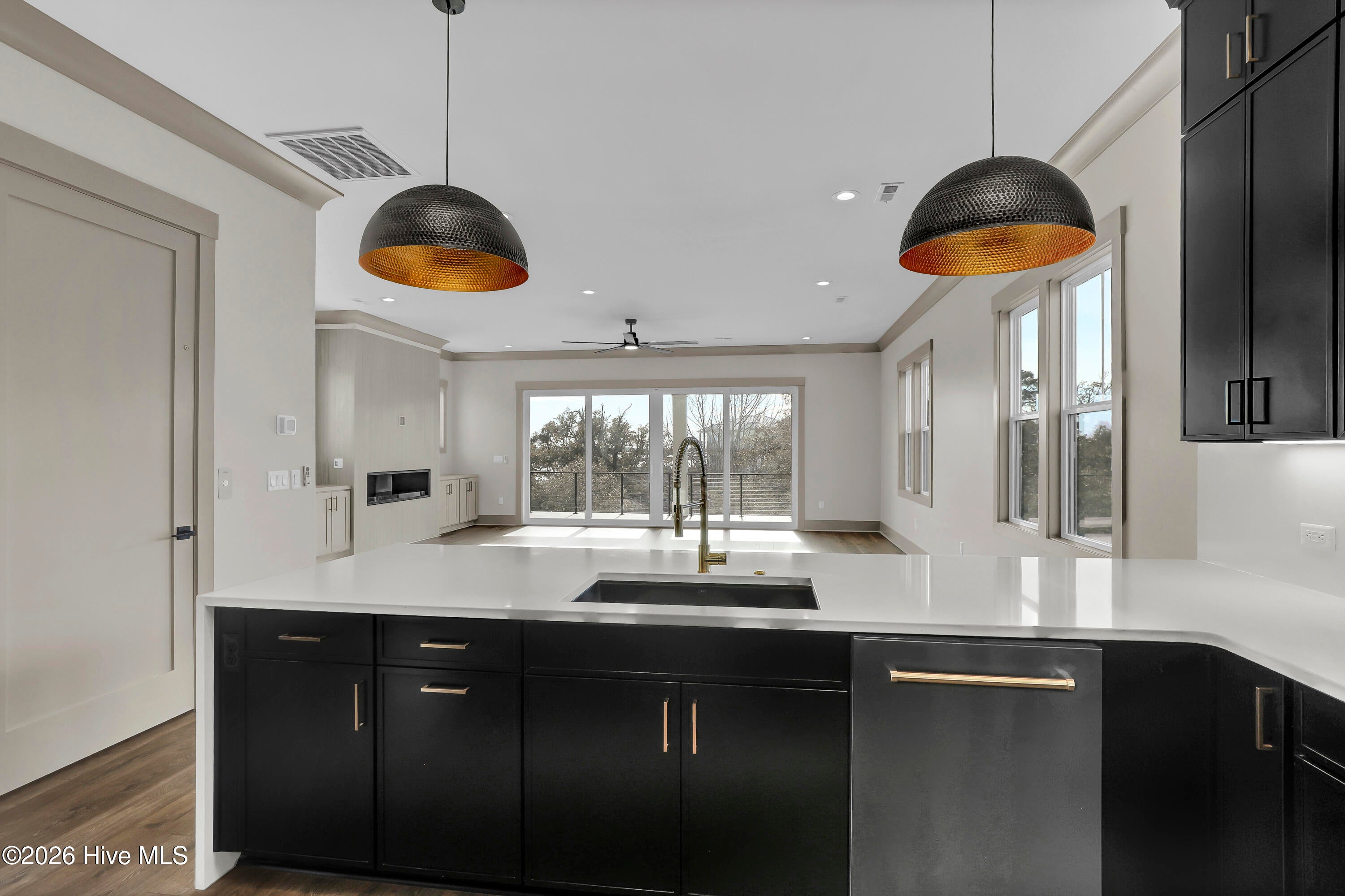 Its a Channel Marker Builders Home! Welcome to The Fort Caswell Floorplan, a luxury elevated coastal home in Diamond Point with stunning Water views and walkable access to the Surf City bridge, shops, and dining, offering over 3,000 heated sq ft, 4 bedrooms, 3 baths, a saline pool, and a deeded boat slip. 25,000 buyer credit available for a limited time that may be applied toward closing costs, rate buy-down, or builder upgrades. This stunning home features an open-concept layout with an oversized great room, wraparound porches, and a chefs kitchen with upgraded soft-close cabinetry, quartz countertops, under-cabinet lighting, and a premium ZLINE appliance package including a 36 commercial-style range. The living room is anchored by a stunning 48 linear gas fireplace, and an Arlington media box with surround sound prewire adds modern convenience. Quality construction and coastal durability shine throughout with a Galvalume standing seam metal roof, spray foam insulation, Fiberon composite decking, Sagiper wood-grain PVC porch ceilings, stainless cable railings, a whole-house gutter system, and a pervious concrete driveway. The oversized garage is complemented by two sleek Clopay Avante black steel garage doors. The primary suite offers a private porch and a spa-inspired bath featuring a custom walk-in shower with a Moen U two-function system, frameless glass, and an oversized niche. Throughout the home youll find 10 ceilings on all three levels, 8 interior doors, craftsman trim, wide baseboards, crown molding, custom closet systems, and designer tile baths. A flex space room offers endless options for an office, gym, media room, or second living space, with an adjacent outdoor kitchen featuring a built-in grill, trash rollout, and wine fridge. Step into the fenced backyard retreat with a fiberglass in-ground saline pool and rear metal fencing. Additional highlights include a 3-stop elevator, Trane 15 SEER zoned HVAC, Navien tankless gas water heater with recirculating pump, and a security system. Come home to extraordinary living at its finest.