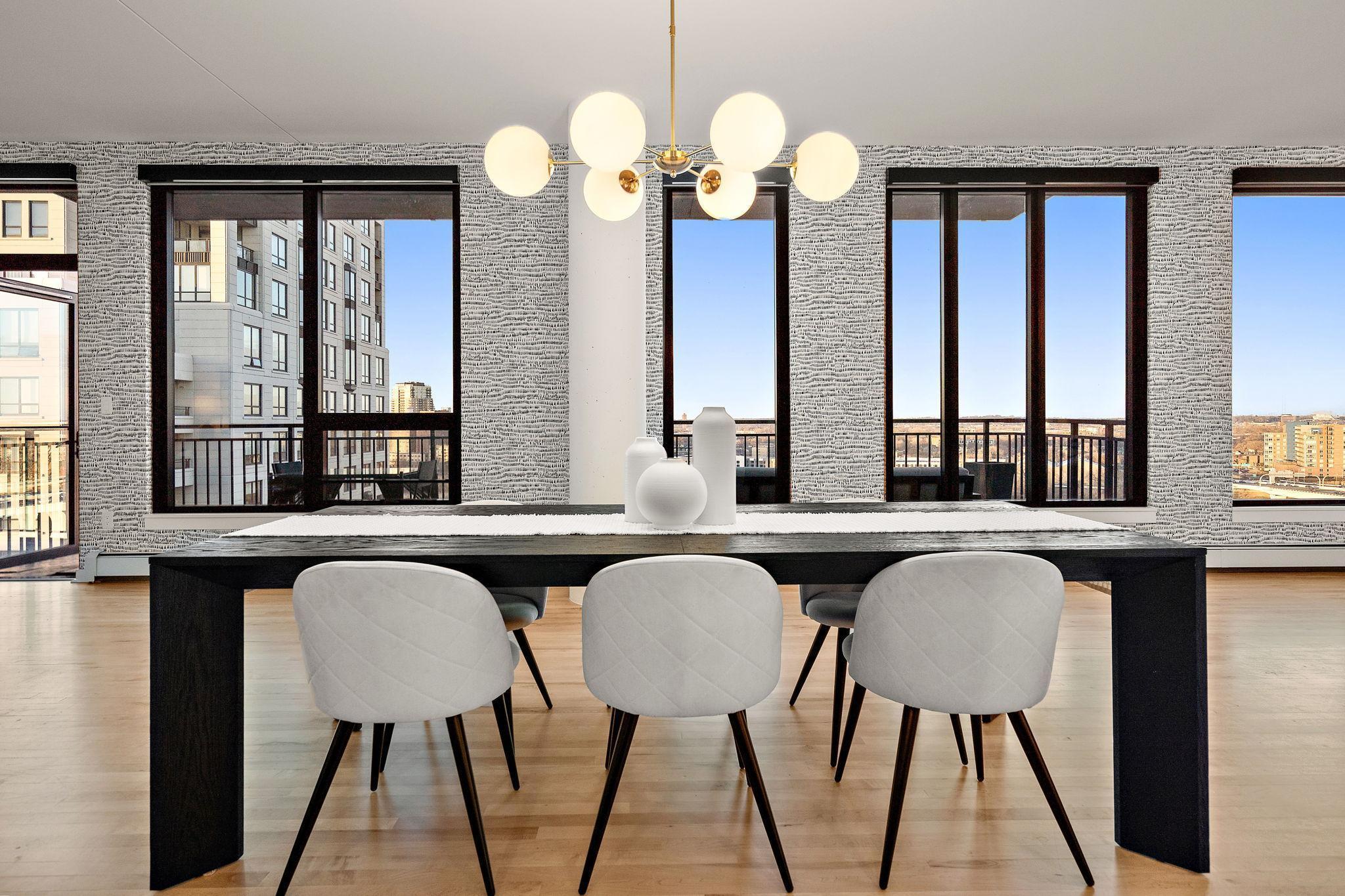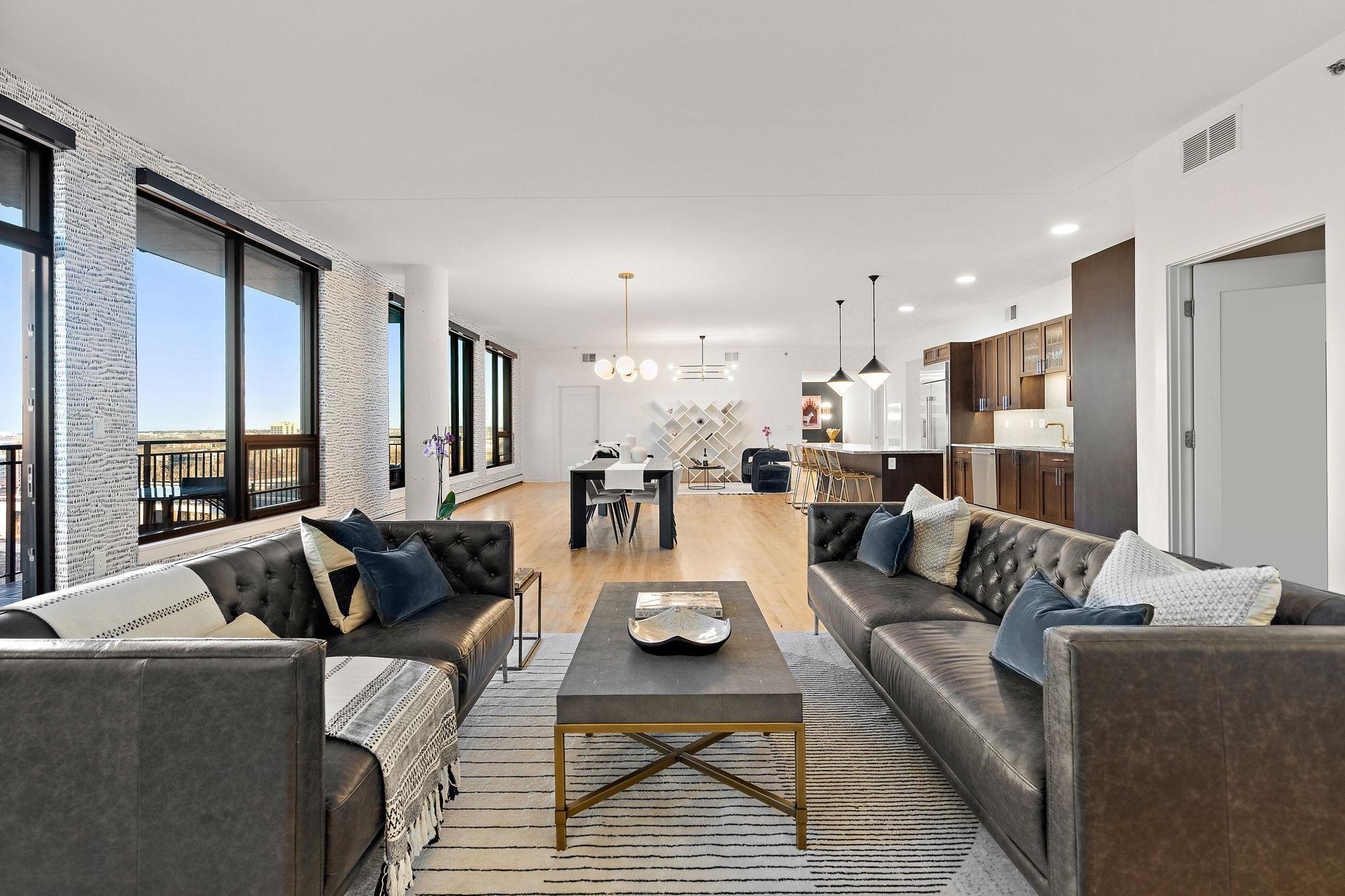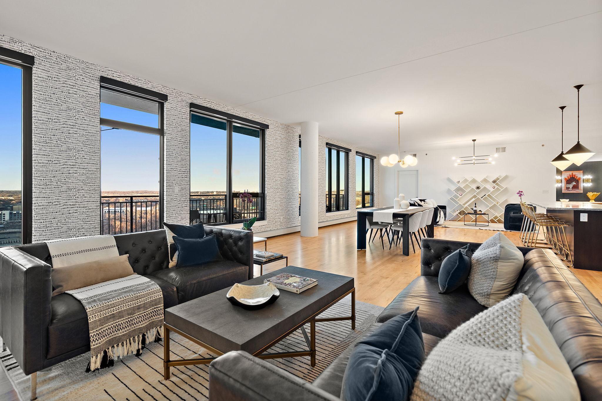 Experience truly elevated luxury in The Legacy residence, showcasing breathtaking panoramic views of the Minneapolis skyline, the Mississippi River, the iconic Stone Arch Bridge, and unforgettable sunsets over the Guthrie Theater! Enjoy stunning sunrises illuminating the 35W Bridge each morning off your expansive private balcony.