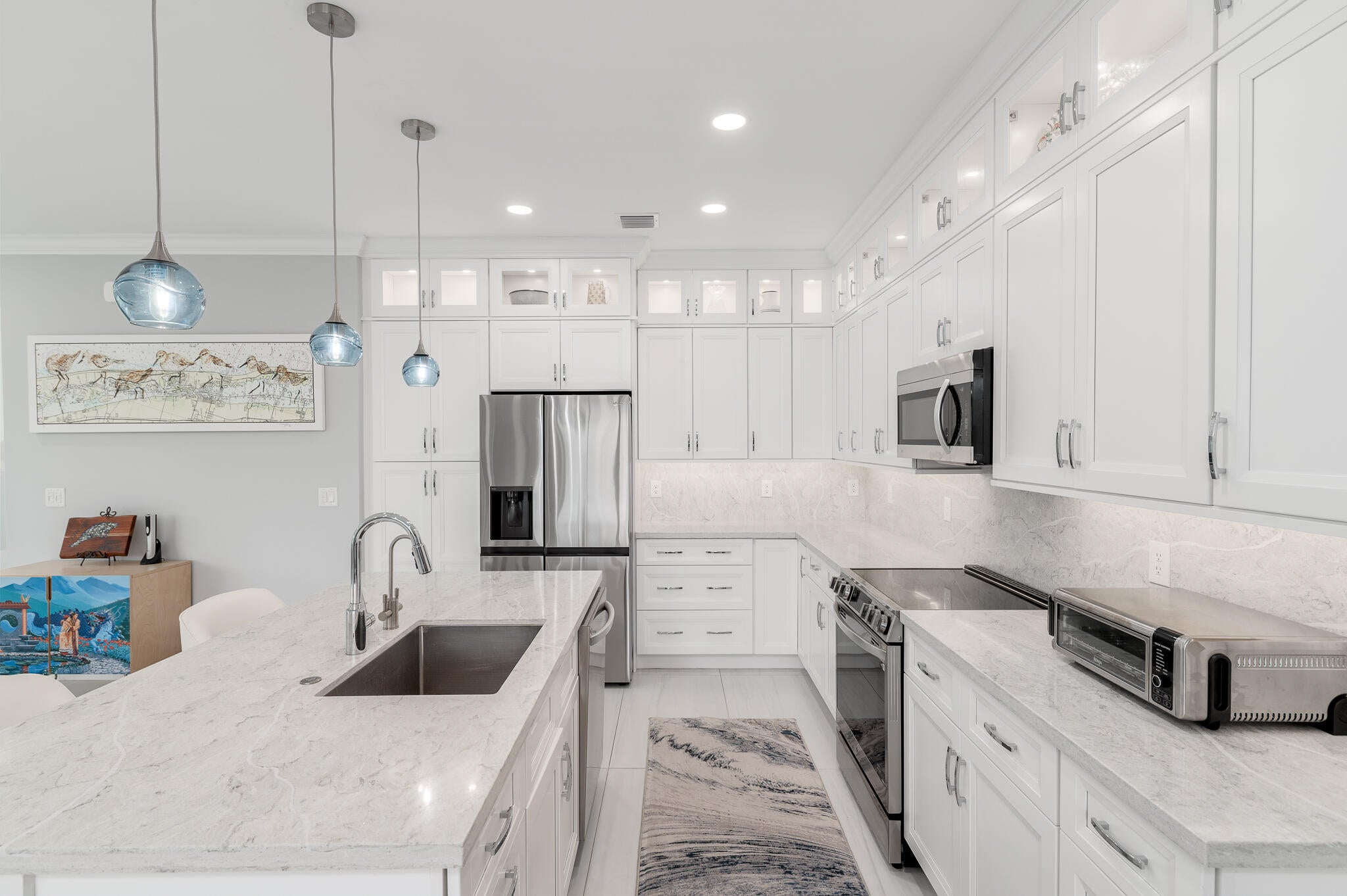 WATERFRONT HOME with boat dock and 10K LB lift. CBS construction with 3 bedrooms, 2.5 bathrooms and 2 car garage. Custom Key West Style Home with designer touches as custom lighting, cabinetry, quartz counter tops, custom built in in office, paver driveway and breeze way, impact windows and doors, beautiful large ceramic tile and luxury vinyl plank floors on second floor. Imagine boating just minutes to the inlet and popular Sandbar and many local restaurants and shopping within walking distance. Perfect location to enjoy the FLORIDA LIFSTYLE!