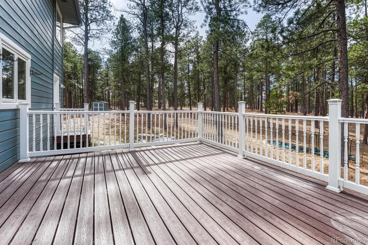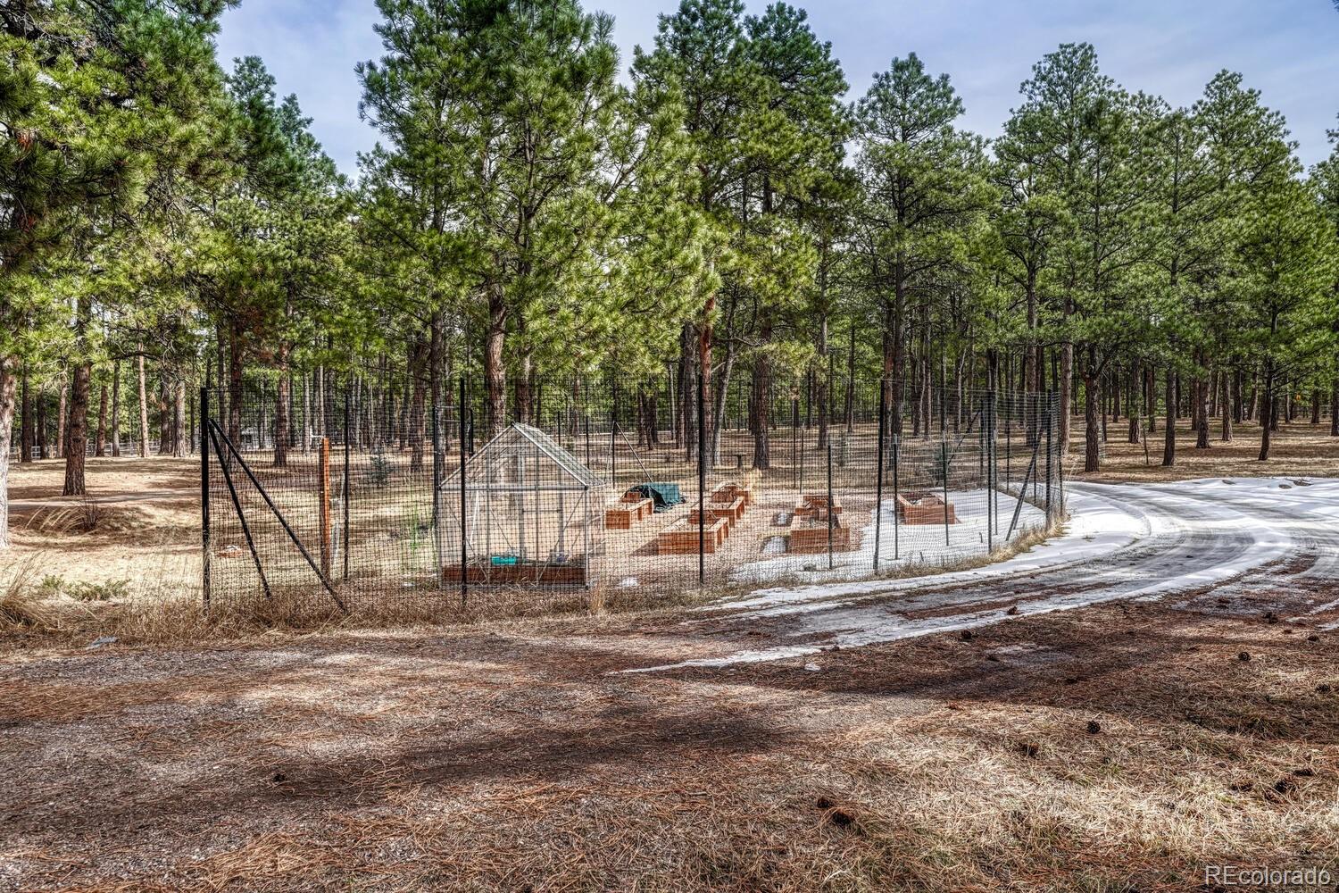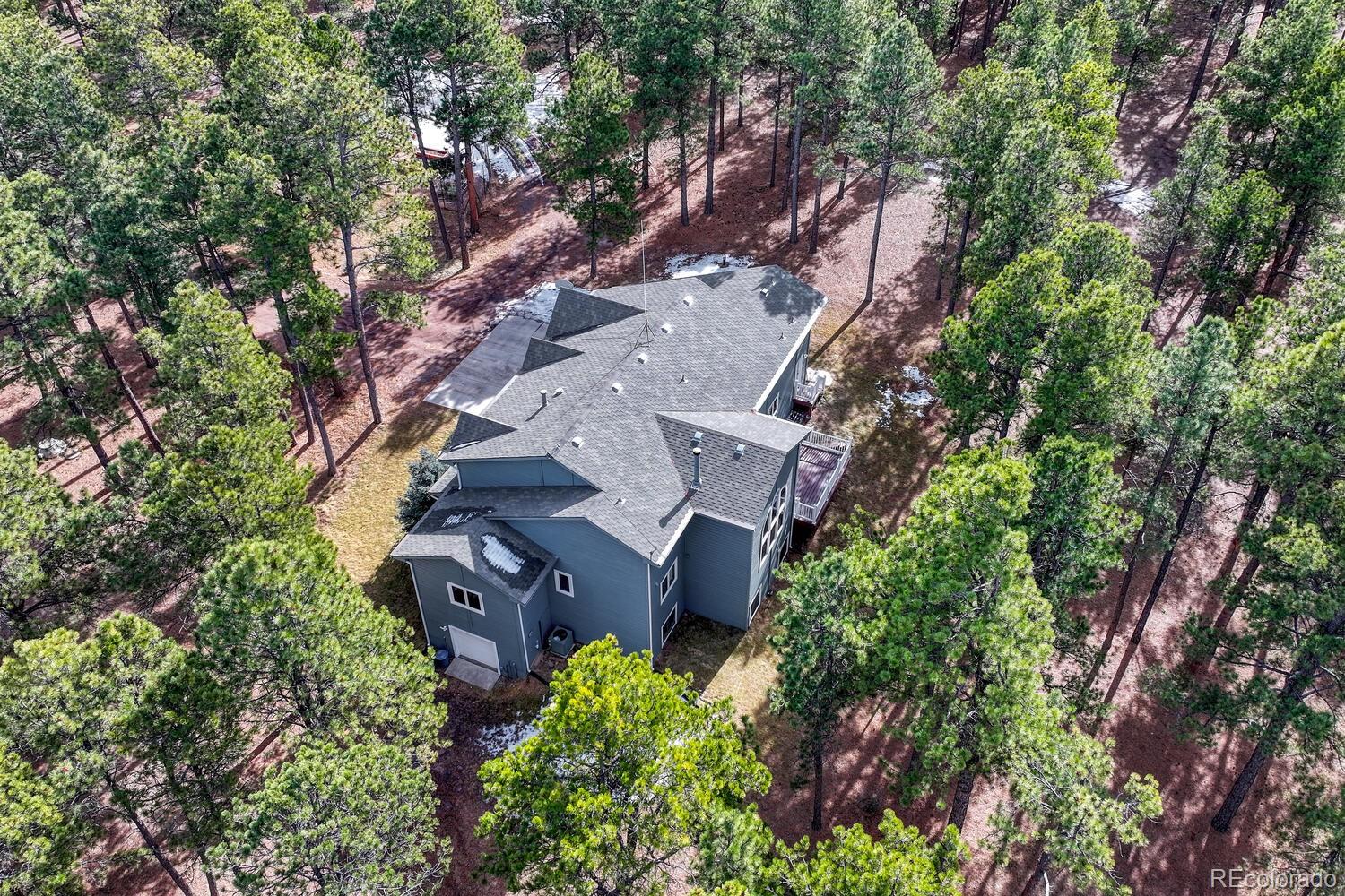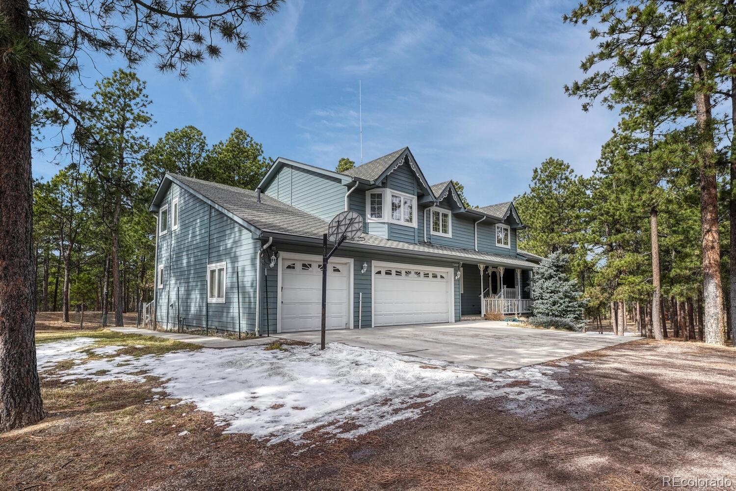 Nestled within the fire-wise designated enclave of Wildwood Village, this award-winning Victorian estate offers serene living on 5.03 private, tree-lined acres within a covenanted community. The custom 2-story home has 4,567 sf of impeccably designed living space, highlighted by a newer roof, covered front porch, & beautifully maintained grounds that create a memorable 1st impression. Inside, soaring ceilings, gleaming hardwood floors, & a dramatic spiral staircase set an elegant tone. Formal living/dining rms are ideal for entertaining, while French doors open to a versatile BR or home office w/ a nearby powder bath. The inviting family rm features custom built-ins & a wood-burning fireplace for cozy evenings. The gourmet island kitchen boasts hardwood floors, wood cabinetry, granite countertops, a planning desk, dining nook, & access to an expansive composite deck. Appliances incl a dishwasher, gas cooktop, double ovens, microwave, & refrigerator. The laundry rm offers cabinetry, sink, & outdoor access to a 2nd deck. Upstairs, 3BRs & 2BAs incl a luxurious primary retreat w/ private sitting rm, electric fireplace, custom walk-in closet, & spa-inspired 5pc bath w/ dual vanity, engineered marble countertops, Jacuzzi tub, & walk-in shower w/ seating. The finished basement adds flexibility w/ a large rec rm, addtl BR, full bath, flex rm, utility space, & ample storage. Built w/ quality 2x6 construction & R-48 insulation, the home features a 96% efficient RHEEM heat pump, A/C, full-house steam humidifier, LED lighting, water treatment system, woodstove w/ circulation fan, high-speed fiber connectivity, & Gutter Helmet gutters w/ hot wires to prevent icing. Outdoor amenities incl auto sprinklers, pole & dowel dog-proof fencing w/ security gates, raised irrigated garden beds, greenhouse, playset, Tuff Shed, domestic well, septic system, & 4 heated garages. This extraordinary home blends craftsmanship & modern luxury in one of Black Forests most desirable communities.