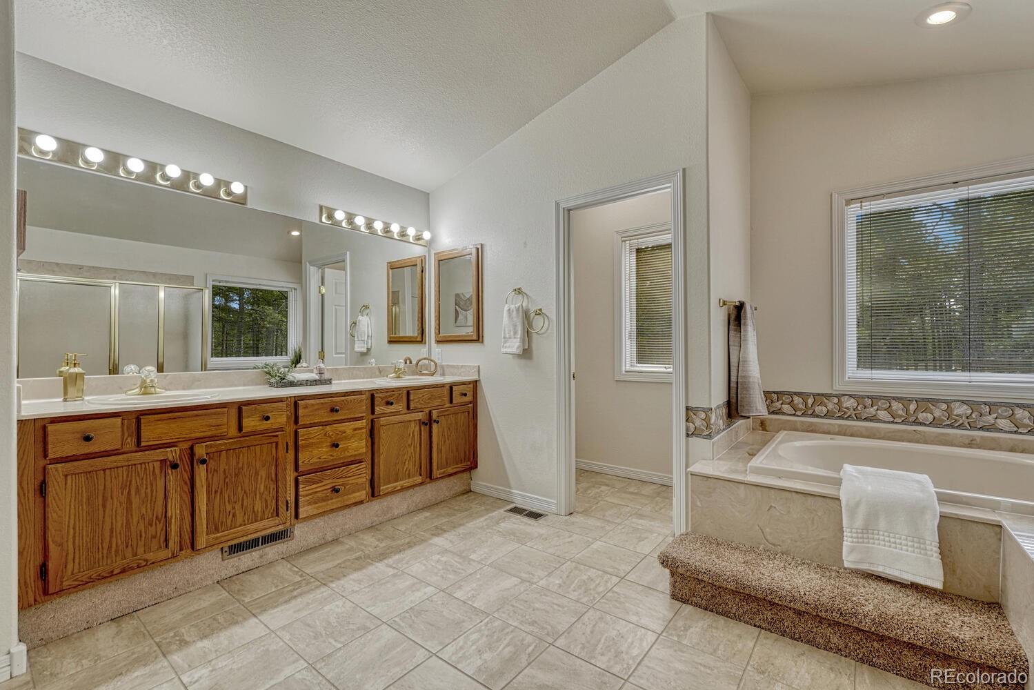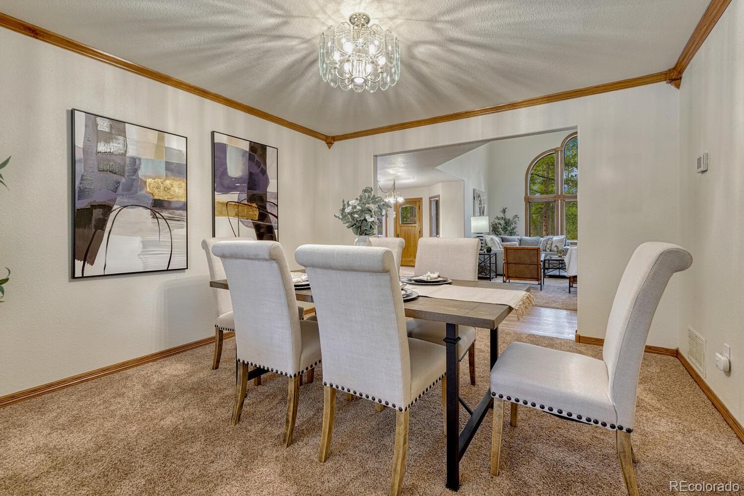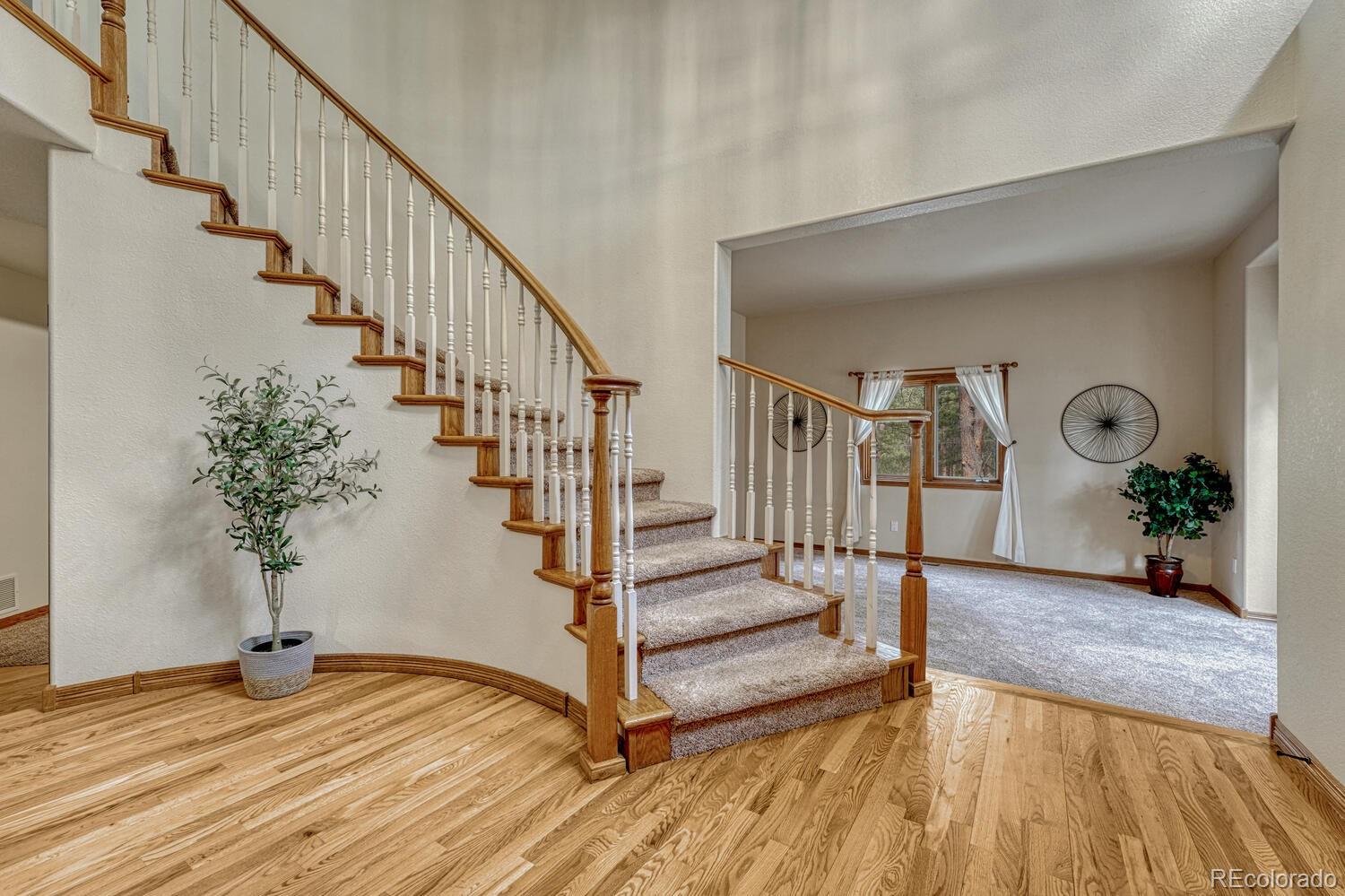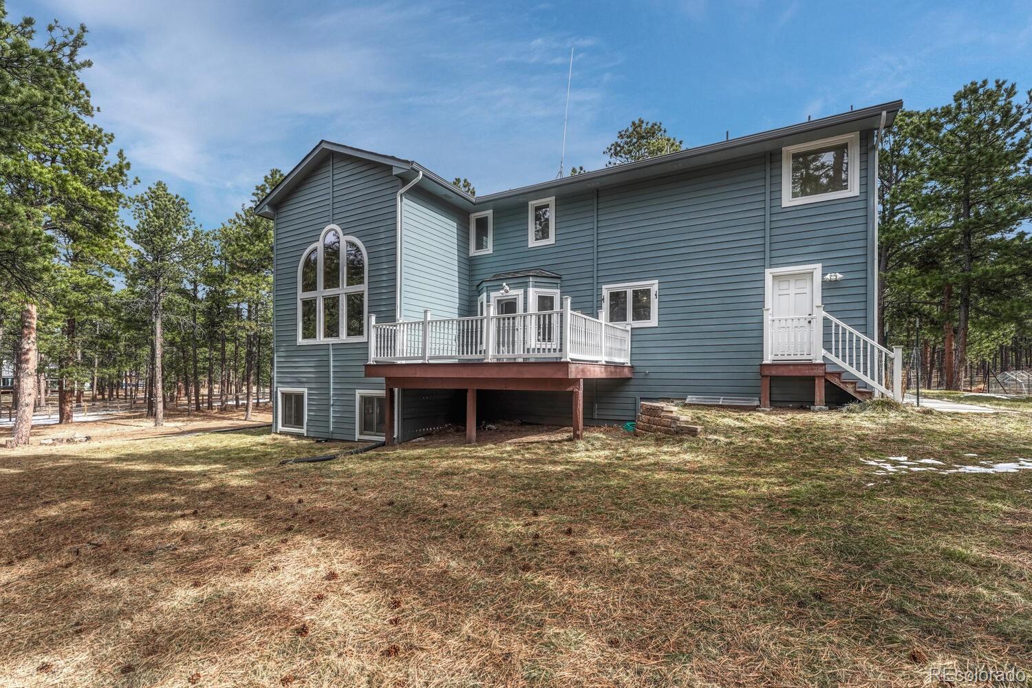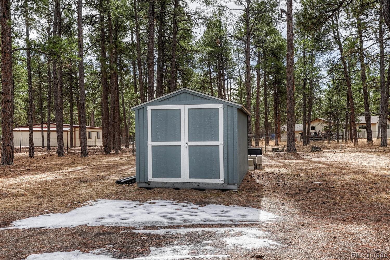Nestled within the fire-wise designated enclave of Wildwood Village, this award-winning Victorian estate offers serene living on 5.03 private, tree-lined acres within a covenanted community. The custom 2-story home has 4,567 sf of impeccably designed living space, highlighted by a newer roof, covered front porch, & beautifully maintained grounds that create a memorable 1st impression. Inside, soaring ceilings, gleaming hardwood floors, & a dramatic spiral staircase set an elegant tone. Formal living/dining rms are ideal for entertaining, while French doors open to a versatile BR or home office w/ a nearby powder bath. The inviting family rm features custom built-ins & a wood-burning fireplace for cozy evenings. The gourmet island kitchen boasts hardwood floors, wood cabinetry, granite countertops, a planning desk, dining nook, & access to an expansive composite deck. Appliances incl a dishwasher, gas cooktop, double ovens, microwave, & refrigerator. The laundry rm offers cabinetry, sink, & outdoor access to a 2nd deck. Upstairs, 3BRs & 2BAs incl a luxurious primary retreat w/ private sitting rm, electric fireplace, custom walk-in closet, & spa-inspired 5pc bath w/ dual vanity, engineered marble countertops, Jacuzzi tub, & walk-in shower w/ seating. The finished basement adds flexibility w/ a large rec rm, addtl BR, full bath, flex rm, utility space, & ample storage. Built w/ quality 2x6 construction & R-48 insulation, the home features a 96% efficient RHEEM heat pump, A/C, full-house steam humidifier, LED lighting, water treatment system, woodstove w/ circulation fan, high-speed fiber connectivity, & Gutter Helmet gutters w/ hot wires to prevent icing. Outdoor amenities incl auto sprinklers, pole & dowel dog-proof fencing w/ security gates, raised irrigated garden beds, greenhouse, playset, Tuff Shed, domestic well, septic system, & 4 heated garages. This extraordinary home blends craftsmanship & modern luxury in one of Black Forests most desirable communities.