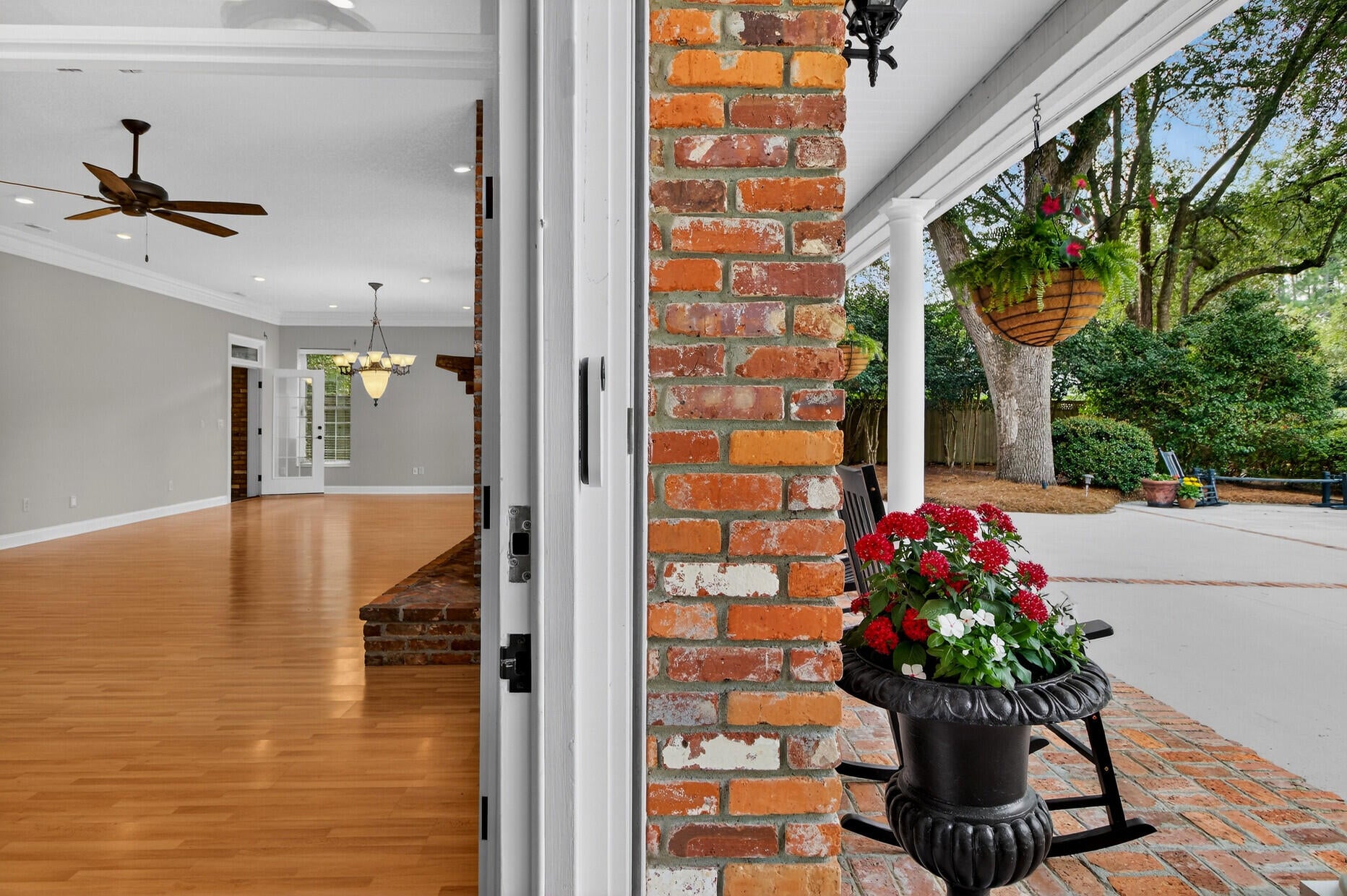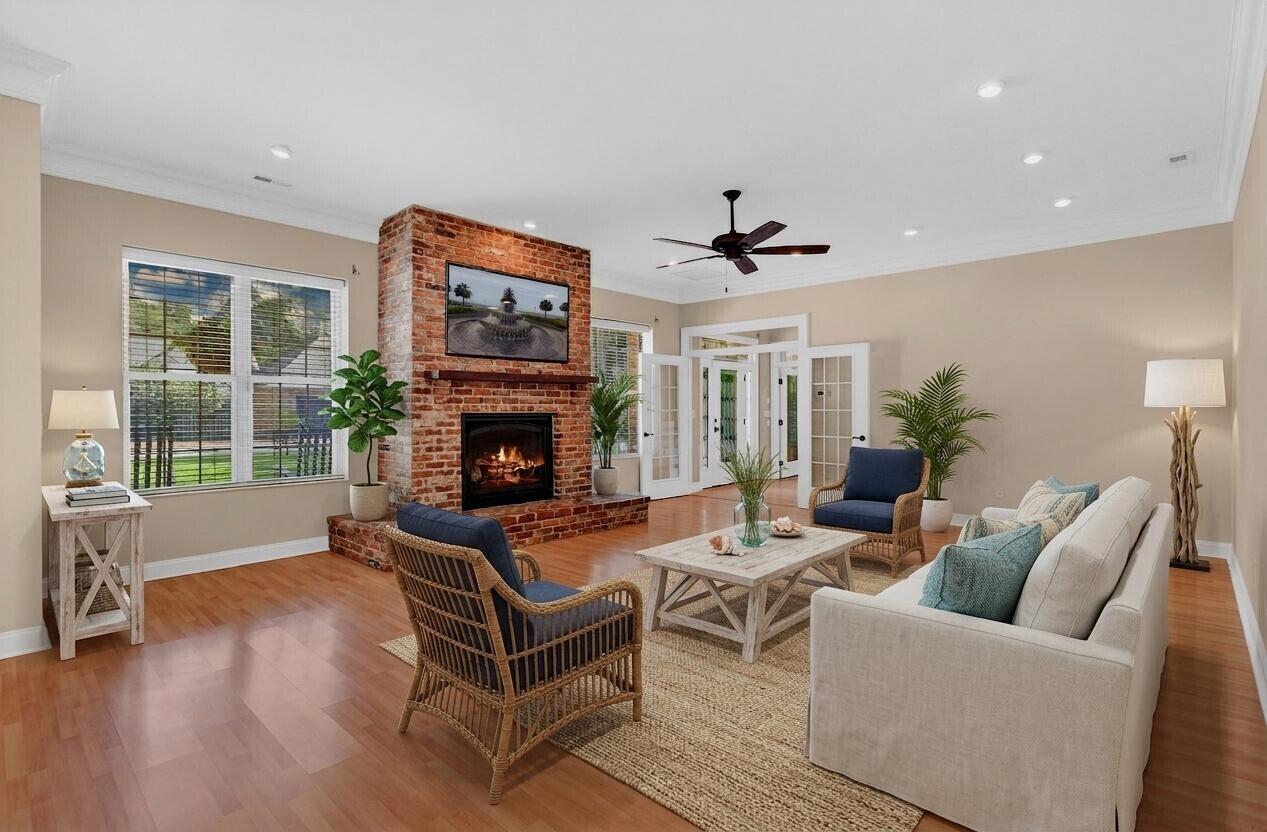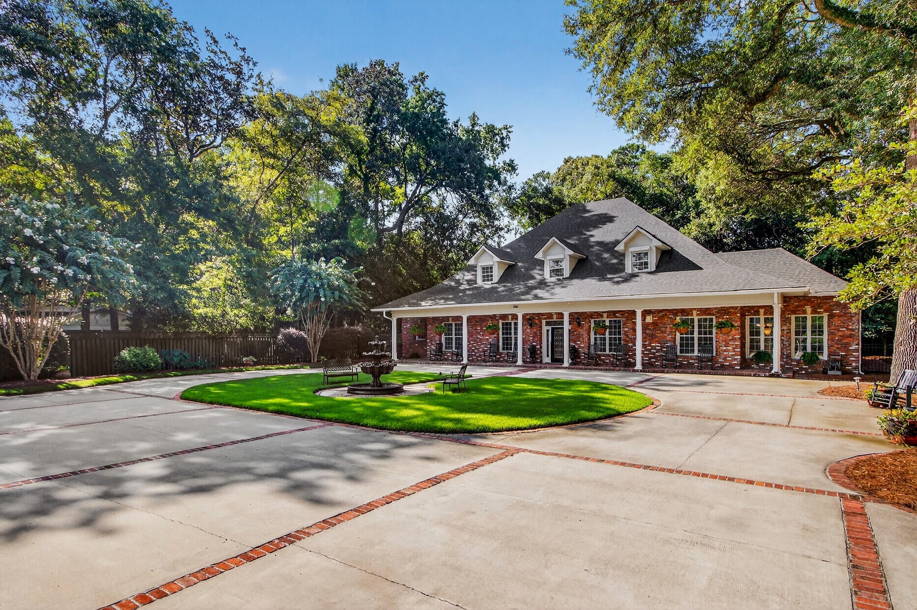 Gated Luxury Home in Tea Farm113 Tea Farm Road is nestled in a highly desired neighborhood (with no traditional HOA) in the heart of historic Summerville. Its landscaped long driveway leads you to a unique and beautiful estate secured behind impressive electronic wrought iron gates anchored between stately brick columns. They open wide to welcome you to a nearly one-acre property sitting on the grounds of a former tea plantation and reveal many azaleas and magnificent live oak trees. The extraordinary 6000 sq. ft. home and garage with an additional storage room are dressed in stunning and strong Old Charleston bricks and are spacious enough for multi-generational living. This remarkable residence offers peaceful living with its circular, brick-lined cement driveway outlining a lusciousgreen space surrounding a flowing 4-tiered fountain to soothe the soul. Here you can sit a while on the spacious rocker-lined porch with its white columns rising from its Old Charleston brick floor. A brick sidewalk neatly wraps around the entire perimeter of the home. Undeniably, 113 Tea Farm Road is a one-of-a-kind home carefully crafted with not only beauty in mind but with safety, security and solitude as its 24 thick brick walls, supported by a commercial grade steel framework, and outlined by an 8 privacy fence reflects. This expansive home, situated on .91 acres, sports built-in hurricane rated shutters, a whole house 24KW Generac, and an extensive security system. It is as strong as it is beautiful and ready to withstand any storm that comes its way.Entering through the stunning front door, you instantly pause upon seeing its spectacular foyer with a soaring ceiling and a long central hallway. Beautifully detailed crown molding throughout, 10 ceilings, and an impressive spindle staircase before you will instantly draw you in. Through French doors to your left, you can see an extremely spacious, custom designed, gourmet eat-in kitchen and breakfast room with commercial grade stainless steel cabinetry and stainless Energy Star appliances. The tiled floors are heated for cold winter mornings. Plenty of counter and storage space grace the room and a granite-topped island give ease to your meal prep and entertaining. Beyond the kitchen is a laundry/mud room, also with heated floors, built-in wall storage, and plenty of counter surface offering convenience and functionality.Looking to your right from the foyer is a GRAND open concept living and dining room, ready to accommodate large gatherings with family and friends who will enjoy the abundance of space, light, and the substantial custom-built brick fireplace along the exterior wall framed by windows with beautiful views to bring the outside in. This remarkable room flows into a sun/ garden room where there is ample space for future expansion to add an outside kitchen/grill area, magnificent garden or possibly a pool in the spacious side yard.With six bedrooms and five-and-a-half baths, the thoughtful layout IS ideal for multigenerational living. The Main-Level Owners Suite is a retreat all its own---tucked off the hallway to the left is a private wing, complete with a large study/office and sunroom/gym. A cement pad for a hot tub sits out the window view. A spa inspired bathroom with a walk-in tiled shower, antique clawfoot tub, heated floors, and a spacious walk-in closet completes the suite. A second large suite with its large walk-in closet on the first floor to the right of the hallway is perfect for in-laws or guests. Its beautiful and extraordinary ensuite bath with a walk-in tiled shower and heated floors is extremely pleasing. Mid-hallway on the right is the third bedroom with full bath. It is Handicap Accessible offering a stunning no-step entry shower, heated tile floor, and proximity to common areas. Also, a charming powder room is on the left of the central hallway.The graceful staircase leads upward to a spacious landing that connects three attractive and generously sized bedrooms and two full baths, each with vintage clawfoot tubs. Each bedroom has its own character and charm such as dormer windows, window seats, multiple closets, and detailed crown molding. Storage is abundant in each room as well as in the 3 floored attic areas. A climate-controlled mechanical room with 3 HVAC units with inline filtration completes the upstairs, which has three quarter inch concrete- fiber subflooring. This spacious area offers privacy, comfort and the abundant storage every family needs.Across the front lawn is an immaculate, attractive detached 2-car garage with a storage/work room, newly epoxied floor, attached wall cabinets, a sizeable center storage rack and electronic doors. This tremendous garage is a dream for anyone who values an abundance of work and storage space.Additional Highlights: Full Property Irrigation System Whole House Generac Generator Landscape Lighting Dual Rinnai Tankless Water Heaters Central Vacuum System RV Hookups-power and dump station on reinforced concrete Spa Pad and Electrical Hookup Ready for Hot Tub Installation Herringbone pattern brick walkways Natural gas logs Remote controlled privacy gate and garage doorsThis truly magnificent fenced estate, a hidden gem behind gates, is a pleasing blend of thoughtful design reflective of advance construction, strength, and beauty within a private, peaceful location in the heart of historic Summerville where offerings are treasured.
