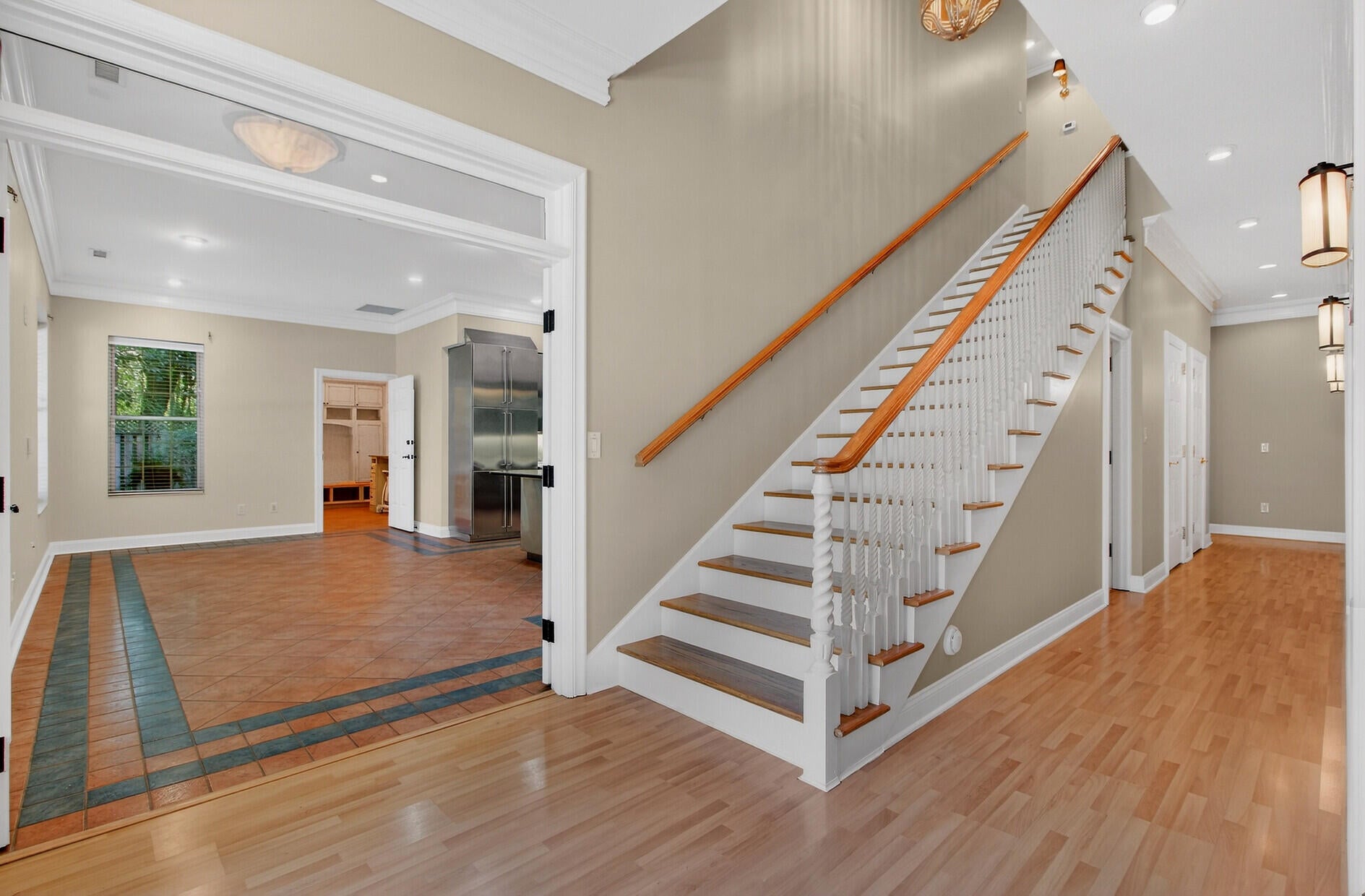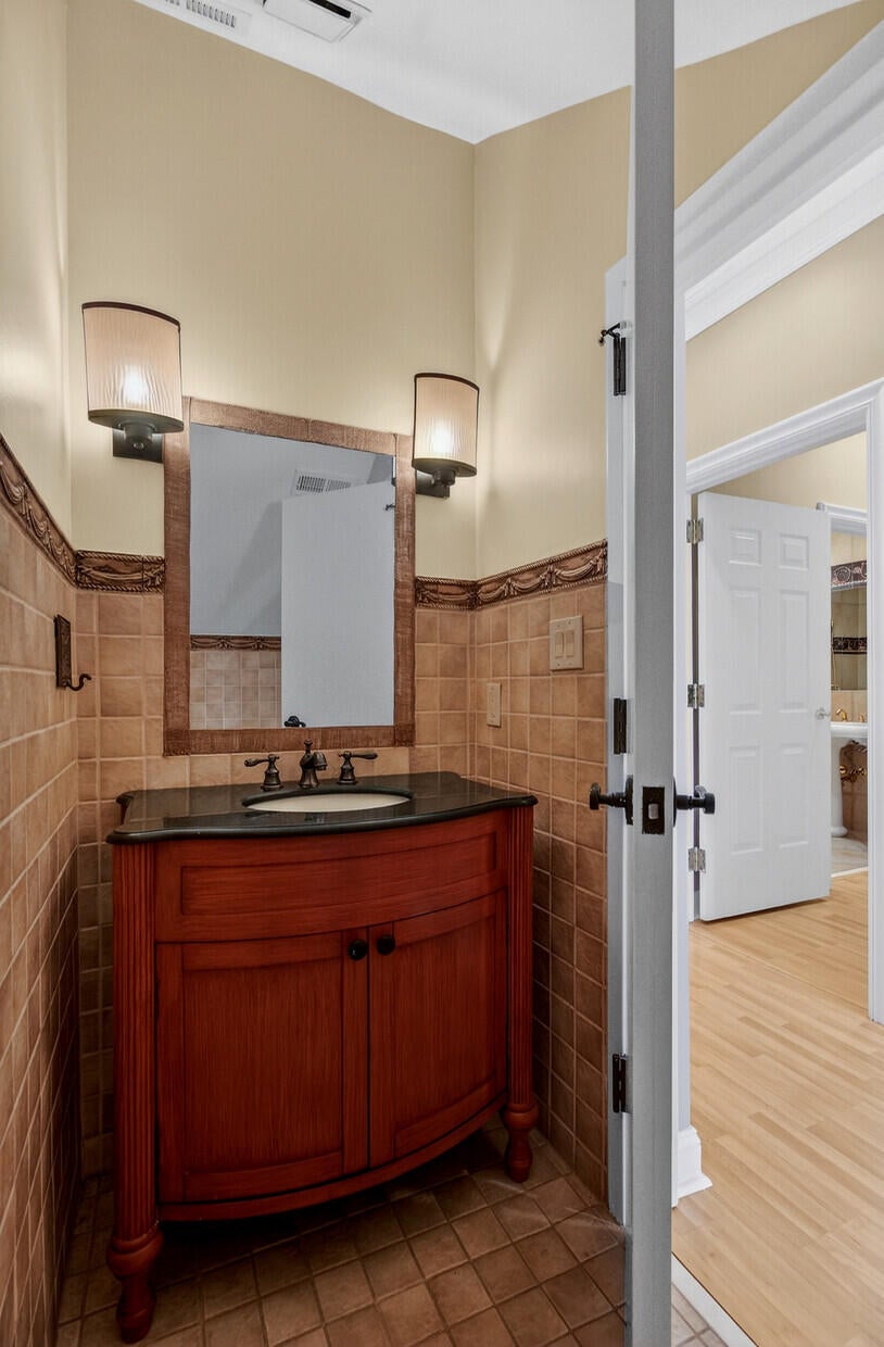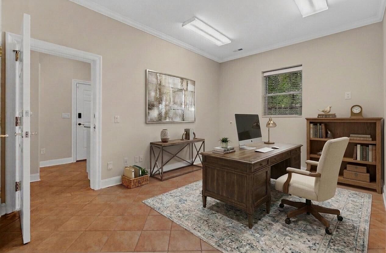 Nestled in the cul de sac, this custom-built French country home exudes elegance and PRIVACY. A magnificent WROUGHT IRON GATE marks the entrance, leading to a WINDING DRIVEWAY that meanders through the woods, setting the scene for the secluded 7 ACRES in a park-like setting. WALKING AND RIDING TRAILS carve through the land, offering peaceful escapes into nature.