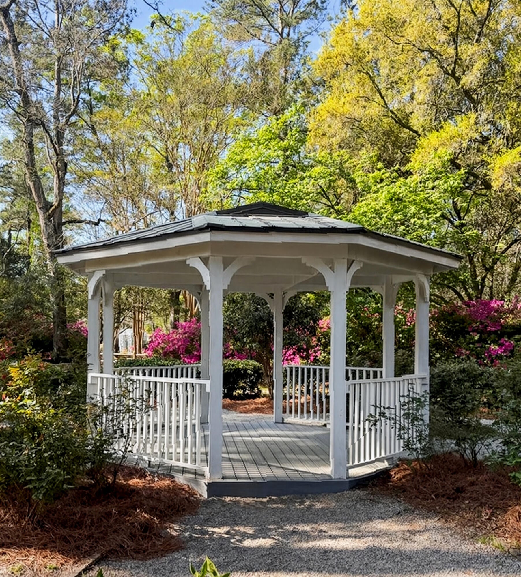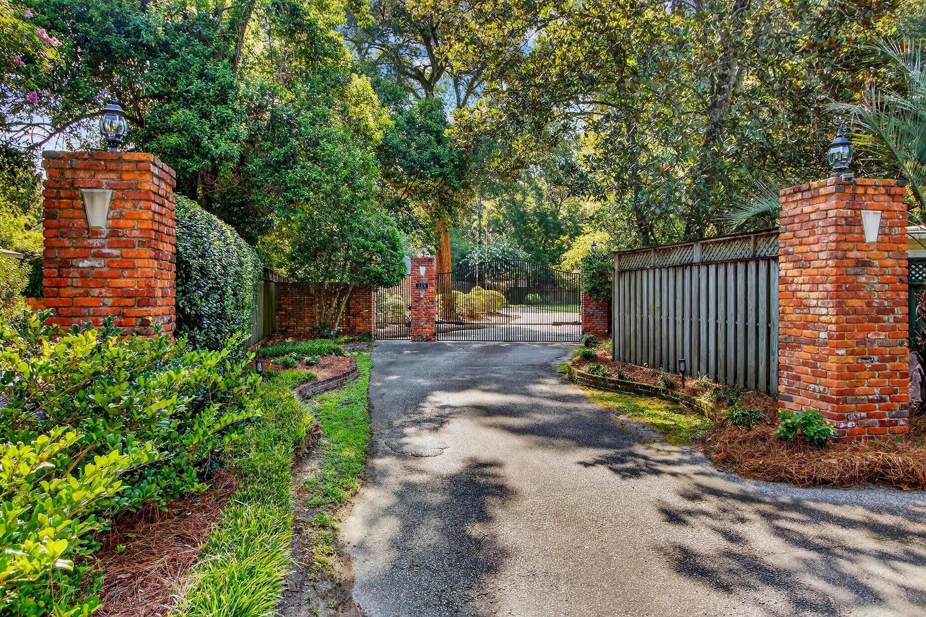 Gated Luxury Home in Tea Farm113 Tea Farm Road is nestled in a highly desired neighborhood (with no traditional HOA) in the heart of historic Summerville. Its landscaped long driveway leads you to a unique and beautiful estate secured behind impressive electronic wrought iron gates anchored between stately brick columns.