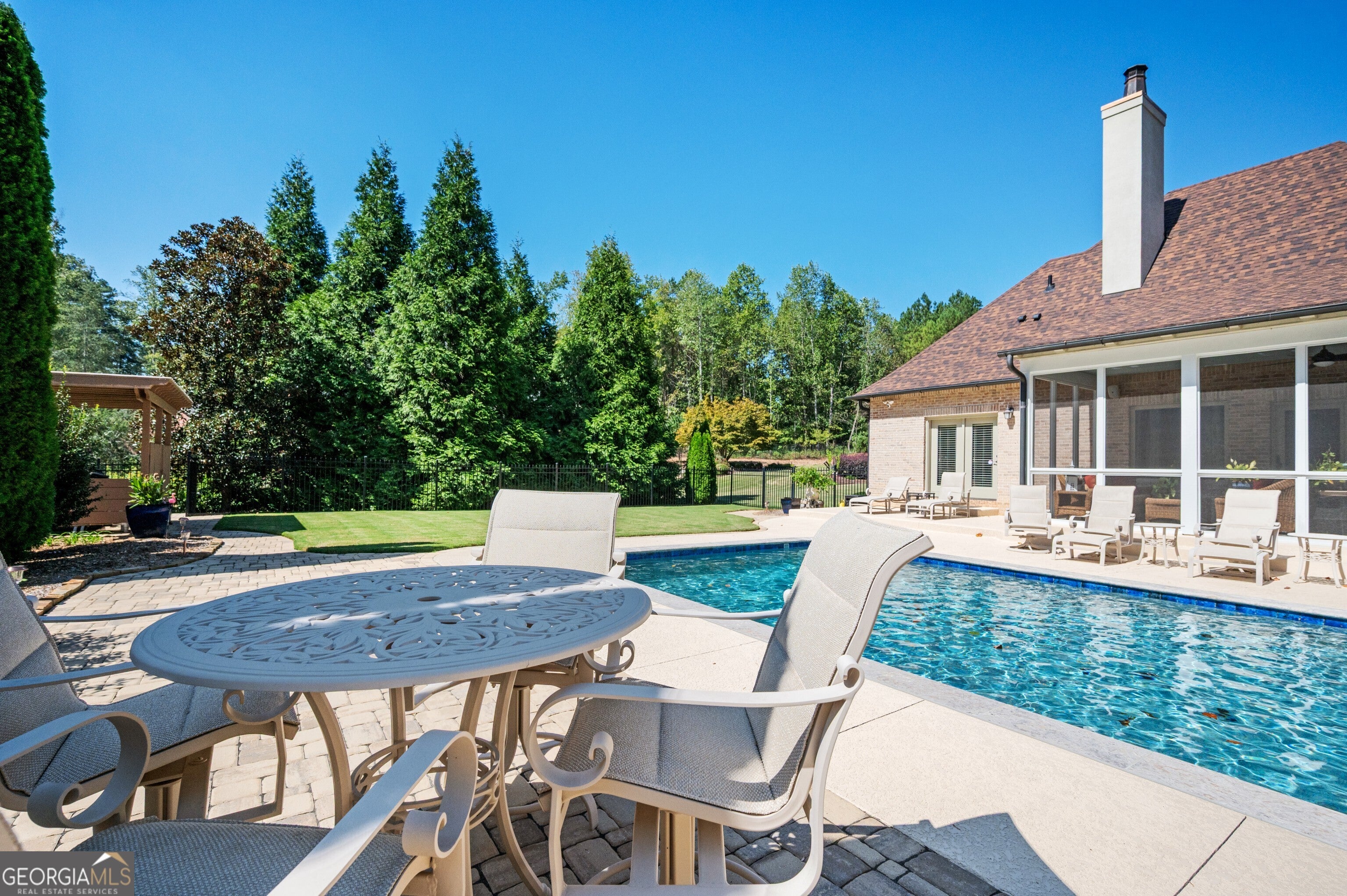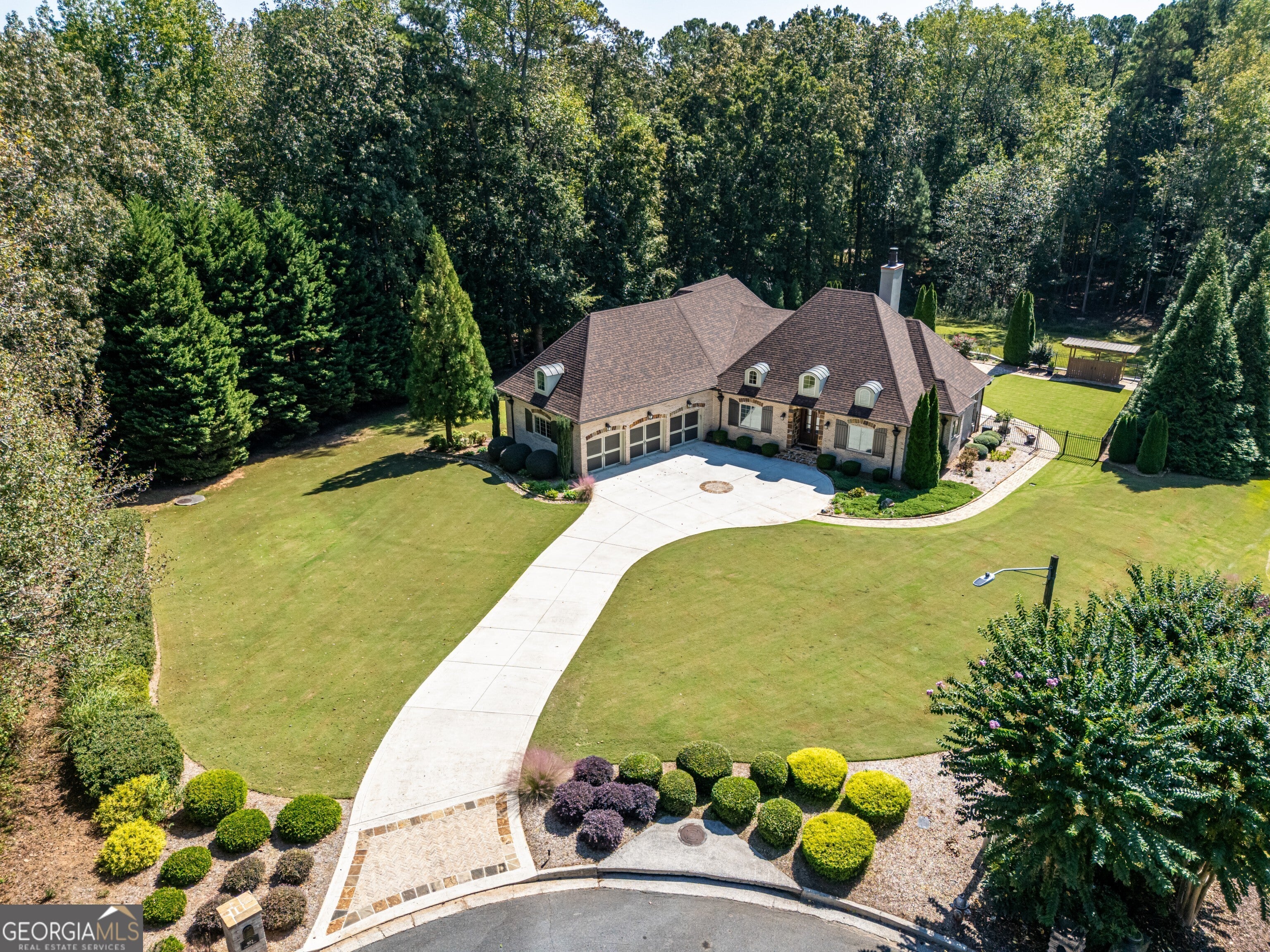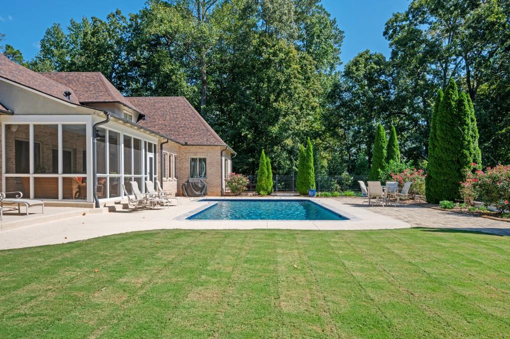 Rare Estate Opportunity on 2.27 Private Acres in Prime West Cobb.Privately located on a quiet cul-de-sac in the exclusive Enclave at Hadaway, this custom-built French Provincialstyle home sits on the largest lot in the community, within a boutique neighborhood of just nine estate homes, all in the highly sought-after Harrison High School district.Designed by Jack Arnold (Homes of Elegance) and completed in 2010, this all brick and stone residence offers 5 bedrooms (one ideal as a study), 3.5 baths, and a 3-car garage, all set on a meticulously maintained crawl space. The main level features true one-level living with the primary suite plus two additional bedrooms, a vaulted family room, oversized dining room, hardwood floors throughout, and an open-concept layout ideal for entertaining and everyday living.What truly distinguishes this home is the exceptional list of capital improvements and energy-efficient upgrades, many completed within the last several years. Interior enhancements include a Navien tankless water heater with dedicated recirculation line, providing endless hot water and eliminating long wait times, along with two high-efficiency Carrier HVAC systems, including an Infinity system with zoning on the main level and a Performance Series unit upstairs, both equipped with whole-house media air filtration. Additional upgrades include dehumidifiers in the crawl space and upstairs bonus room, whole-house surge protection plus surge protection for HVAC condensers, custom cabinetry additions with granite countertops, window tinting, LED lighting throughout, and fresh interior and garage paint with updated light fixtures (2025).The home was thoughtfully constructed with spray-foam insulation throughout the living space, attic, and crawl space, creating an efficient HVAC envelope that delivers exceptional comfort, quiet living, and notably low utility costs. Both the attic and crawl space are climate controlled, a rare and valuable feature that enhances long-term efficiency and durability.The backyard has been completely renovated into a private retreat, designed for full southern exposure and year-round enjoyment. Outdoor features include a 16 x 32 PebbleSheen pool with travertine coping and new tile, a cool deck surface, and all-new energy-efficient pool equipment, including a variable-speed pump and saltwater system. Expansive paver patios and walkways, new fencing and gates, fresh Bermuda sod, mature privacy plantings, professional stone edging, and a fully renovated screened porch with PVC trim, non-slip tile, and ceiling fan complete the outdoor living experience. A new architectural roof (2023) further enhances peace of mind and long-term value.Additional features include an EPA-certified Fireplace Xtrordinair, wide doorways on the main level for enhanced accessibility, and a remarkably clean, professionally praised crawl space. With major mechanical systems, roof, pool, and outdoor living areas all updated, this home lives far younger than its build date and offers a level of construction quality, efficiency, and maintenance rarely found today.Thoughtfully designed, extensively improved, and meticulously maintained, this exceptional property offers privacy, energy efficiency, and timeless elegance in one of West Cobbs most exclusive settings.