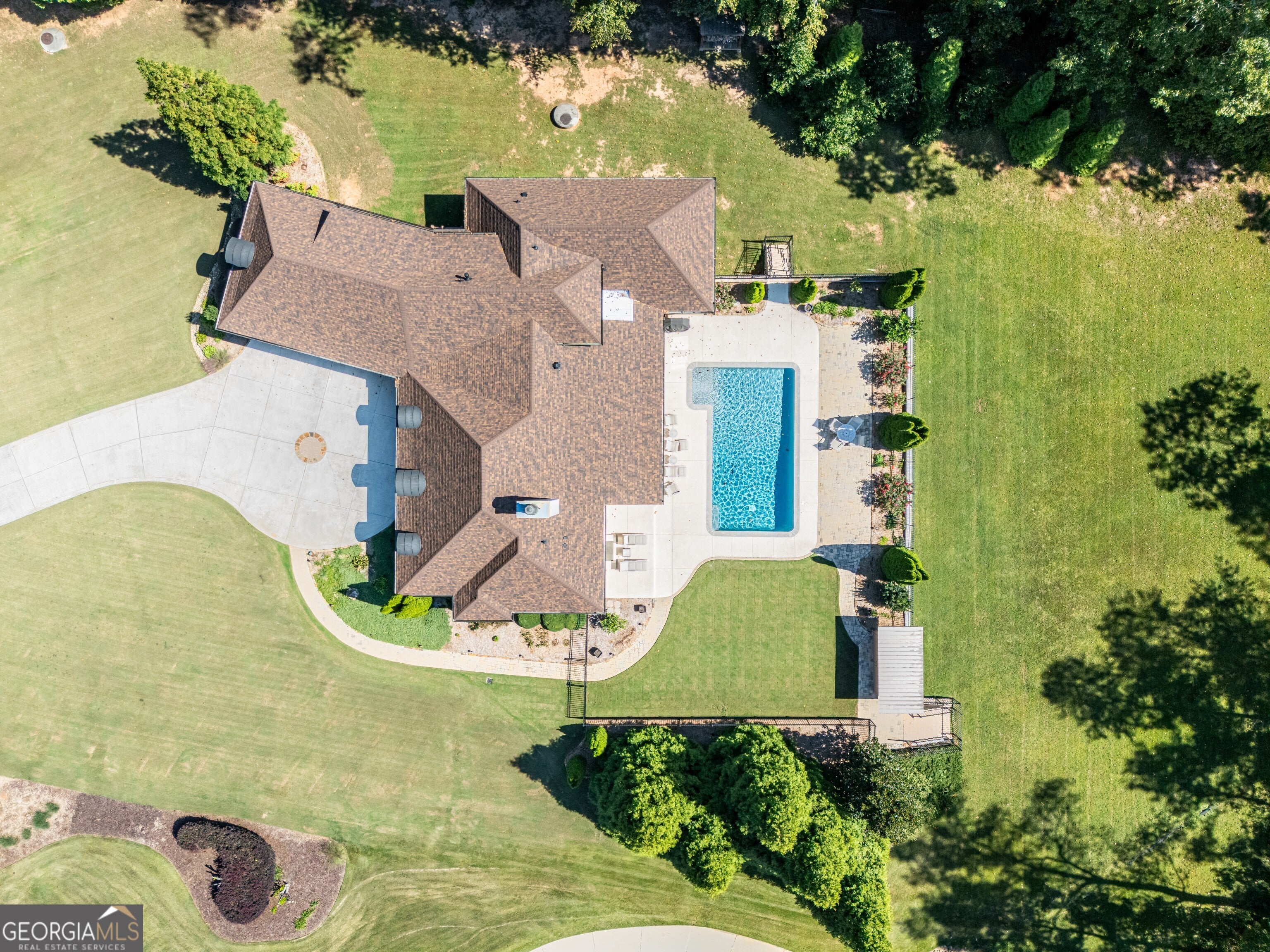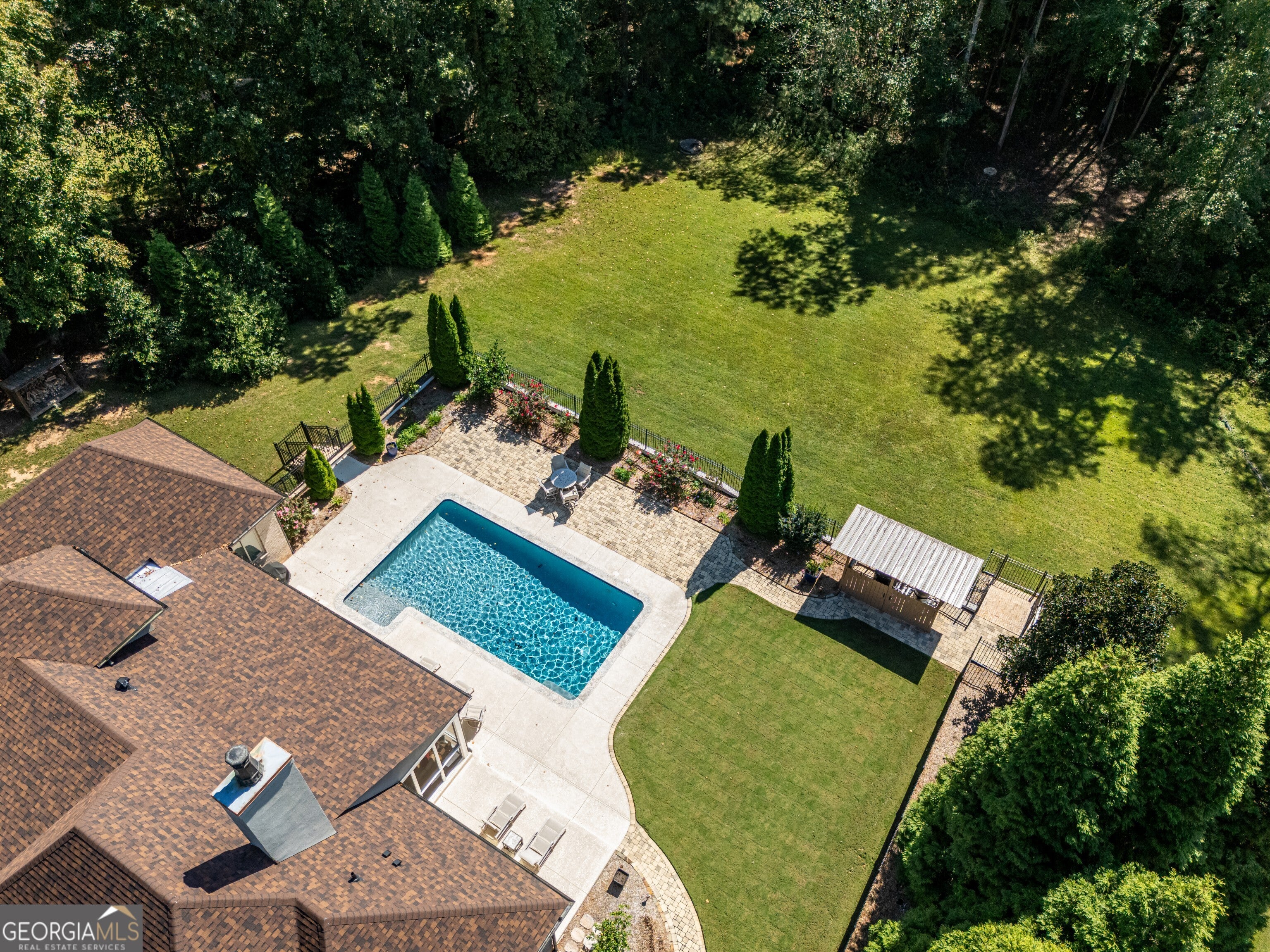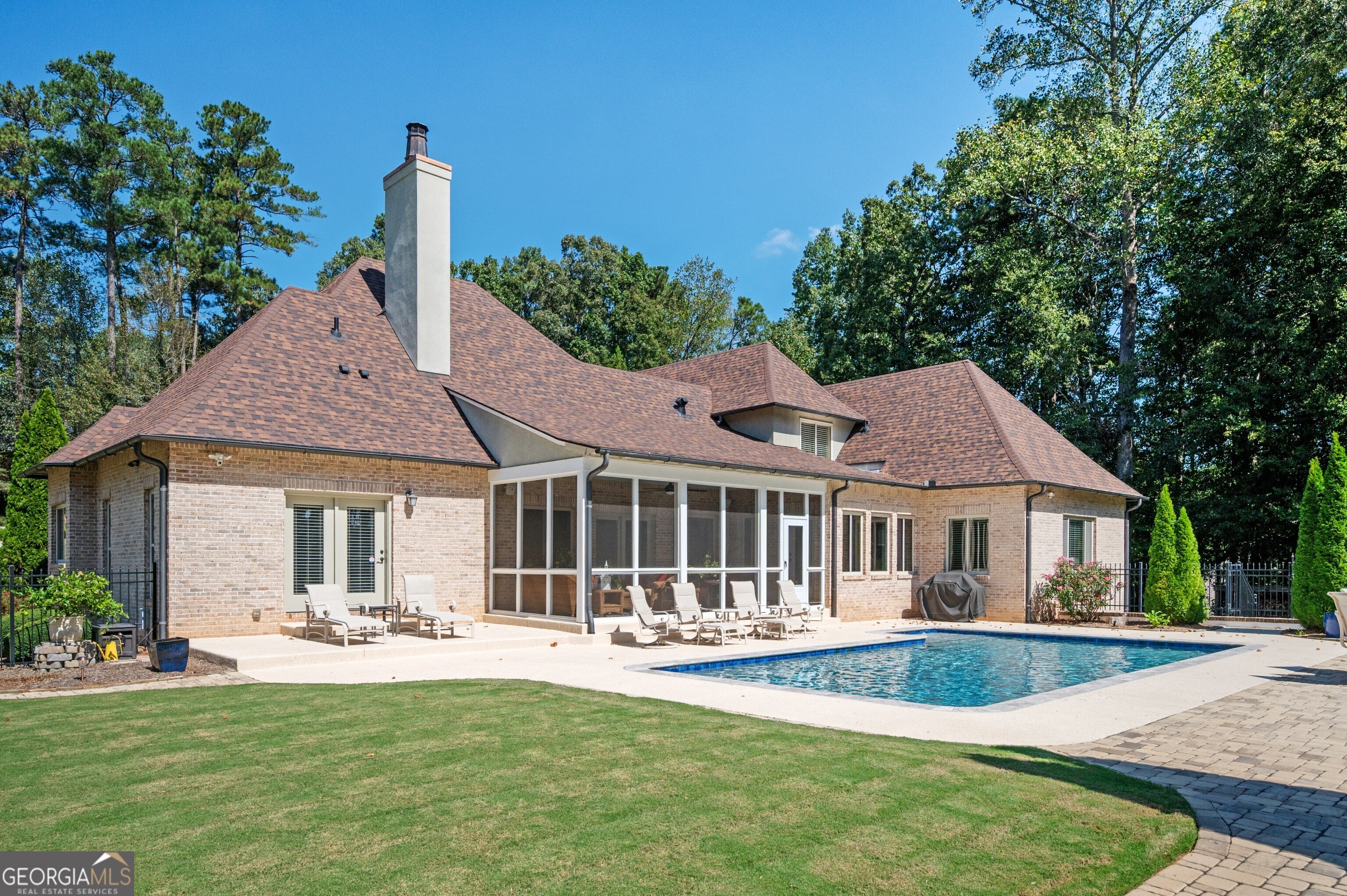 Rare Estate Opportunity on 2.27 Private Acres in Prime West Cobb.Privately located on a quiet cul-de-sac in the exclusive Enclave at Hadaway, this custom-built French Provincialstyle home sits on the largest lot in the community, within a boutique neighborhood of just nine estate homes, all in the highly sought-after Harrison High School district.Designed by Jack Arnold (Homes of Elegance) and completed in 2010, this all brick and stone residence offers 5 bedrooms (one ideal as a study), 3.5 baths, and a 3-car garage, all set on a meticulously maintained crawl space. The main level features true one-level living with the primary suite plus two additional bedrooms, a vaulted family room, oversized dining room, hardwood floors throughout, and an open-concept layout ideal for entertaining and everyday living.What truly distinguishes this home is the exceptional list of capital improvements and energy-efficient upgrades, many completed within the last several years. Interior enhancements include a Navien tankless water heater with dedicated recirculation line, providing endless hot water and eliminating long wait times, along with two high-efficiency Carrier HVAC systems, including an Infinity system with zoning on the main level and a Performance Series unit upstairs, both equipped with whole-house media air filtration. Additional upgrades include dehumidifiers in the crawl space and upstairs bonus room, whole-house surge protection plus surge protection for HVAC condensers, custom cabinetry additions with granite countertops, window tinting, LED lighting throughout, and fresh interior and garage paint with updated light fixtures (2025).The home was thoughtfully constructed with spray-foam insulation throughout the living space, attic, and crawl space, creating an efficient HVAC envelope that delivers exceptional comfort, quiet living, and notably low utility costs. Both the attic and crawl space are climate controlled, a rare and valuable feature that enhances long-term efficiency and durability.The backyard has been completely renovated into a private retreat, designed for full southern exposure and year-round enjoyment. Outdoor features include a 16 x 32 PebbleSheen pool with travertine coping and new tile, a cool deck surface, and all-new energy-efficient pool equipment, including a variable-speed pump and saltwater system. Expansive paver patios and walkways, new fencing and gates, fresh Bermuda sod, mature privacy plantings, professional stone edging, and a fully renovated screened porch with PVC trim, non-slip tile, and ceiling fan complete the outdoor living experience. A new architectural roof (2023) further enhances peace of mind and long-term value.Additional features include an EPA-certified Fireplace Xtrordinair, wide doorways on the main level for enhanced accessibility, and a remarkably clean, professionally praised crawl space. With major mechanical systems, roof, pool, and outdoor living areas all updated, this home lives far younger than its build date and offers a level of construction quality, efficiency, and maintenance rarely found today.Thoughtfully designed, extensively improved, and meticulously maintained, this exceptional property offers privacy, energy efficiency, and timeless elegance in one of West Cobbs most exclusive settings.