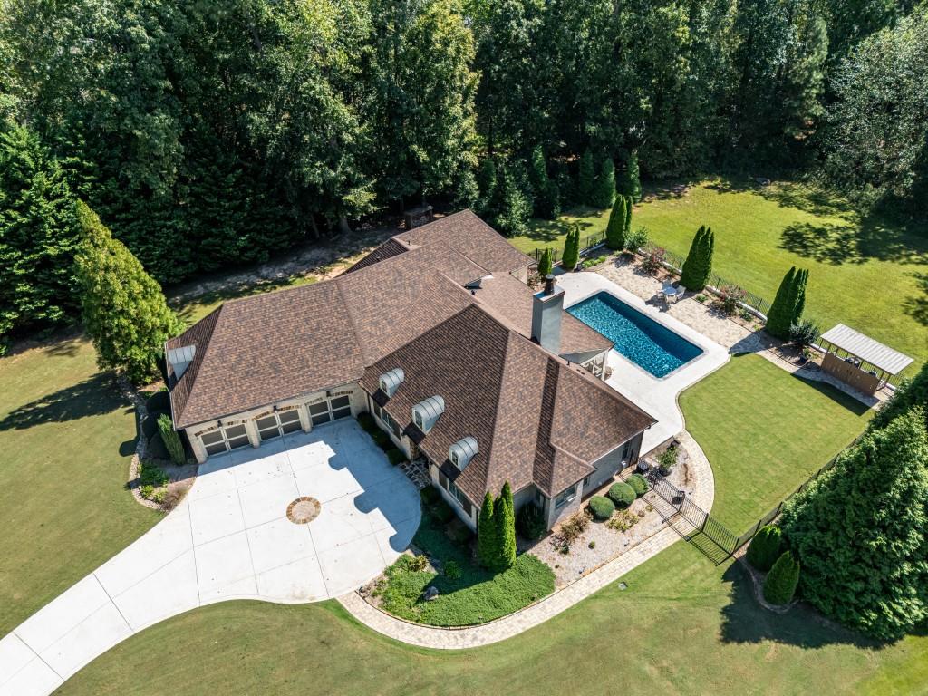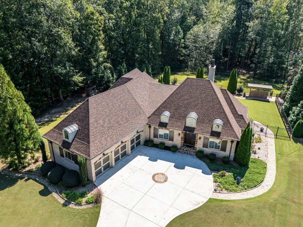 Rare Estate Opportunity on 2.27 Private Acres in Prime West Cobb. Privately located on a quiet cul-de-sac in the exclusive Enclave at Hadaway, this custom-built French Provincial-style home sits on the largest lot in the community, within a boutique neighborhood of just nine estate homes, all in the highly sought-after Harrison High School district. Designed by Jack Arnold (Homes of Elegance) and completed in 2010, this all brick and stone residence offers 5 bedrooms (one ideal as a study), 3.5 baths, and a 3-car garage, all set on a meticulously maintained crawl space. The main level features true one-level living with the primary suite plus two additional bedrooms, a vaulted family room, oversized dining room, hardwood floors throughout, and an open-concept layout ideal for entertaining and everyday living. What truly distinguishes this home is the exceptional list of capital improvements and energy-efficient upgrades, many completed within the last several years. Interior enhancements include a Navien tankless water heater with dedicated recirculation line, providing endless hot water and eliminating long wait times, along with two high-efficiency Carrier HVAC systems, including an Infinity system with zoning on the main level and a Performance Series unit upstairs, both equipped with whole-house media air filtration. Additional upgrades include dehumidifiers in the crawl space and upstairs bonus room, whole-house surge protection plus surge protection for HVAC condensers, custom cabinetry additions with granite countertops, window tinting, LED lighting throughout, and fresh interior and garage paint with updated light fixtures (2025). The home was thoughtfully constructed with spray-foam insulation throughout the living space, attic, and crawl space, creating an efficient HVAC envelope that delivers exceptional comfort, quiet living, and notably low utility costs. Both the attic and crawl space are climate controlled, a rare and valuable feature that enhances long-term efficiency and durability. The backyard has been completely renovated into a private retreat, designed for full southern exposure and year-round enjoyment. Outdoor features include a 16 x 32 PebbleSheen pool with travertine coping and new tile, a cool deck surface, and all-new energy-efficient pool equipment, including a variable-speed pump and saltwater system. Expansive paver patios and walkways, new fencing and gates, fresh Bermuda sod, mature privacy plantings, professional stone edging, and a fully renovated screened porch with PVC trim, non-slip tile, and ceiling fan complete the outdoor living experience. A new architectural roof (2023) further enhances peace of mind and long-term value. Additional features include an EPA-certified Fireplace Xtrordinair, wide doorways on the main level for enhanced accessibility, and a remarkably clean, professionally praised crawl space. With major mechanical systems, roof, pool, and outdoor living areas all updated, this home lives far younger than its build date and offers a level of construction quality, efficiency, and maintenance rarely found today. Thoughtfully designed, extensively improved, and meticulously maintained, this exceptional property offers privacy, energy efficiency, and timeless elegance in one of West Cobbs most exclusive settings.