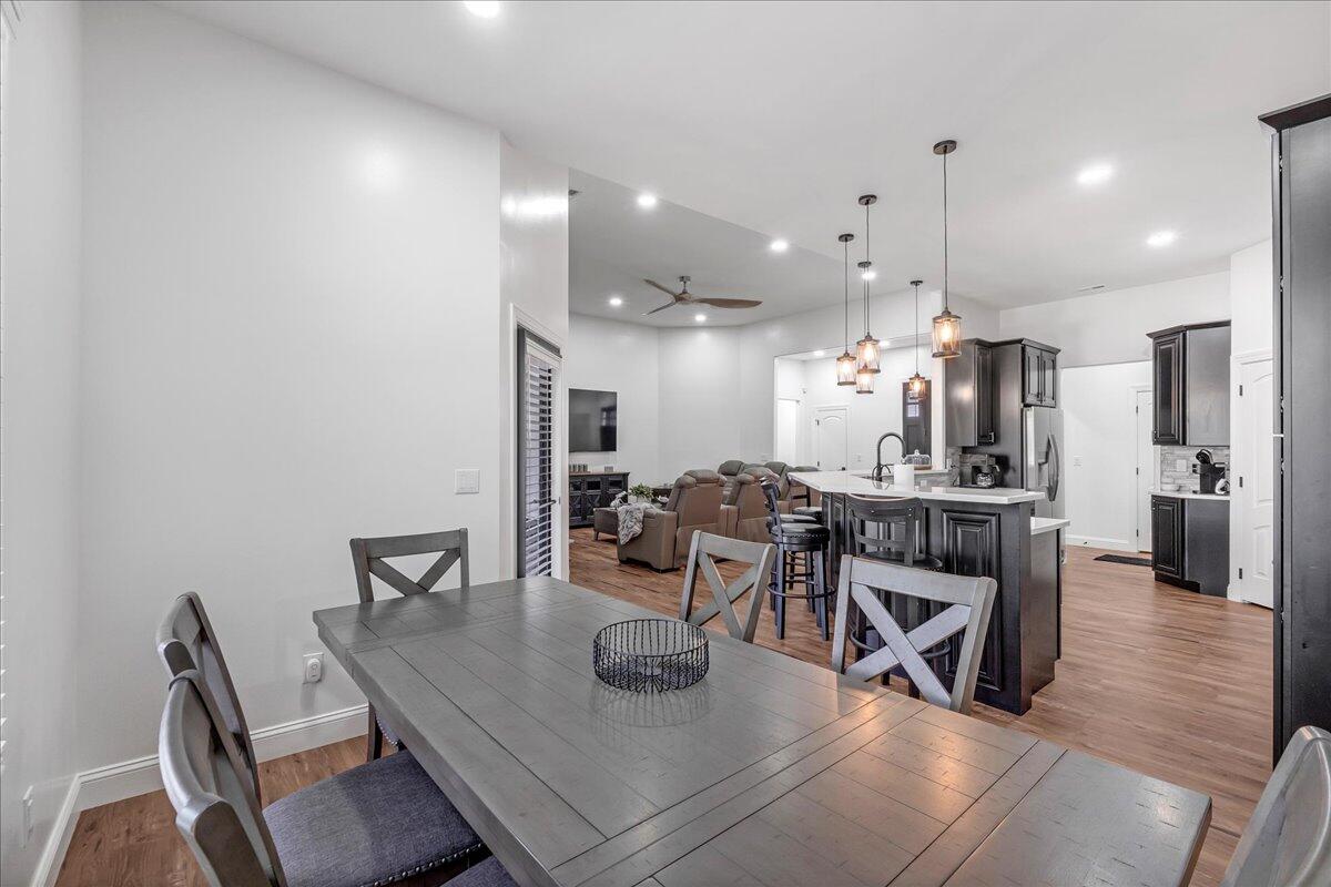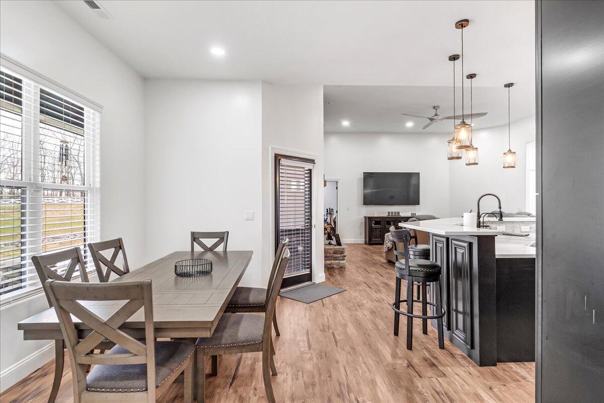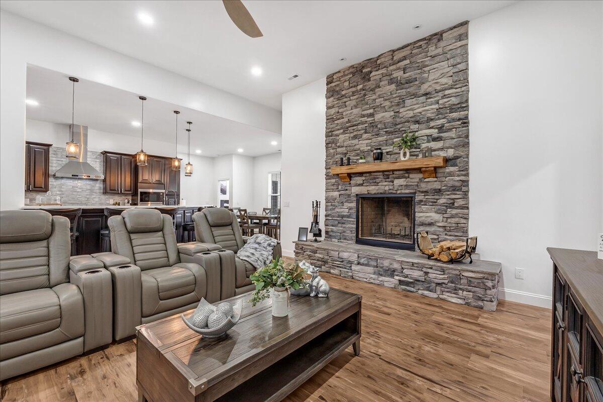 The Tiburon Plan built by Peachtree Residential Properties. Quick Move-In! OUR MODEL HOME IS NOW AVAILABLE TO PURCHASE! Dont miss out on this beautiful 2 story home on a full basement with a 3 car garage. The Tiburon home has a second bedroom on the main floor with a full bath and walk-in closet. Perfect for an office or a guest room for those guests that prefer not to use stairs. All the homes in this 15 homesite community come with a deeded, covered, deep water slip located at the community dock. The lake is just a quick golf cart ride away for you to enjoy your boating adventures. This home sits off the road and has an inviting rocking chair front porch. The 2-story foyer, flanked by the Dining Room, leads to a Sunny Family Room with a fireplace with built-in cabinets on both sides and a wall of windows. The open concept living is perfect for entertaining with a kitchen with cabinets to the ceiling, large island, SS Kitchen Aid appliances, designed backsplash, walk-in pantry with custom shelving and Breakfast Room with a door leading to the deck. The spacious laundry room has a sink with built-in cabinets. The Powder Room is located off the Mudroom. This home offers living flexibility with the Owners Suite and a Guest Room on the main floor. The spa like Owners bath has a shower, soaking tub and double vanities with quartz countertop as well as a walk-in closet with custom shelving. Upstairs there is a large Bonus Room and three bedrooms. Two of the bedrooms share a bathroom with separate vanities and walk-in closets. There is also a huge bedroom with a private bath and walk-in closet. Youll love having the large walk-in linen/storage closet upstairs. There are engineered hardwoods in the main living areas and up hall and carpet in the bedrooms and tile in the Laundry Room and Baths. The home has a 2-car side entry garage and a tandem garage with custom garage floor finish. The large unfinished basement is perfect for expanding the living space. This community is a perfect place to call home and is minutes away to lake fun, dining and shopping! If you are searching for a builder that provides TRUE design flexibility, look no further. Come see us today to learn about all the possibilities. Ask us about our rates as low as 3.99%* with use of sellers preferred lender, Movement Mortgage, with binding contract by 03/15/2026.