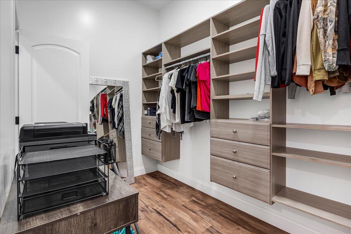 Nestled in the cul de sac, this custom-built French country home exudes elegance and PRIVACY. A magnificent WROUGHT IRON GATE marks the entrance, leading to a WINDING DRIVEWAY that meanders through the woods, setting the scene for the secluded 7 ACRES in a park-like setting. WALKING AND RIDING TRAILS carve through the land, offering peaceful escapes into nature. Despite its secluded feel, the property is conveniently located just 5 MINUTES from central Moss Bluff and a mere 15 minutes to Lake Charles, offering the perfect blend of PRIVACY AND ACCESSIBILITY. The residence itself is a testament to its thoughtful care and design, featuring 4 BEDROOMS, 3.5 BATHROOMS, an OFFICE, KEEPING ROOM, FORMAL DINING ROOM and 2 FIREPLACES. The UPSTAIRS boasts its OWN BATHROOM along with the 4th BEDROOM AND BONUS ROOM which can serve as a media room or game room! Thats not all - the property also features an APARTMENT STUDIO with over 500 sqft which makes a total of 5 BEDROOMS and 4.5 BATHS for the property - all meticulously kept to maintain its LIKE-NEW CONDITION. The heart of the home, a CHEFS KITCHEN, overlooks a SPACIOUS LIVING ROOM, seamlessly connecting to both a formal dining area and a cozy keeping room. Central to the kitchens functionality and elegance is an EXTRA-LARGE ISLAND AND SNACK BAR, offering ample seating and workspace. It is equipped with TWO COPPER SINKS, a POT FILLER for convenience, and a wealth of storage options. Adding to the charm of this true southern home, the HEWN WOOD FLOORS display the natural beauty of magnolia and oak trees, PERSONALLY HARVESTED FROM THE PROPERTY. A WROUGHT IRON BANISTER leads to the upper level where the home unfolds into the EXPANSIVE MEDIA ROOM, perfect for movie nights or enjoying sports events in grand style. Adjacent to the bonus room, the 4TH BEDROOM OR HOBBY ROOM awaits, offering a secluded space for creativity and projects. The master suite serves as a sanctuary of luxury and comfort, featuring a CURBLESS WALKIN SHOWER, DUAL SINKS plus a separate VANITY AREA, and an AIR JETTED 2-PERSON TUB equipped with HEATED BACKRESTS for ultimate relaxation. Complementing the suite is an EXPANSIVE WALK-IN CLOSET, complete with BUILT-INS and a CENTRAL ISLAND, ensuring ample storage and organization. The estates allure extends to its beautifully LANDSCAPED FRONT AND BACK YARDS, each adorned with TWO SOOTHING WATER FOUNTAINS. The SPACIOUS BACK PATIO offers an ideal setting for outdoor entertainment, surrounded by the natural beauty of the estate. Practicality meets luxury with the inclusion of an OVERSIZED 2-CAR GARAGE, 2-CAR CARPORT and 2 CIRCLE DRIVES ensuring ample space for vehicles and guest parking. A PORTE-COCHERE seamlessly connects the main home to the SELF-CONTAINED STUDIO APARTMENT, complete with its OWN BATHROOM AND KITCHEN a perfect retreat for overnight guests or a private studio space. The home is fully equipped for modern living, WIRED FOR SECURITY AND SURROUND SOUND, and includes a CENTRAL VACUUM SYSTEM for ultimate convenience. Eco-conscious and cost -effective, the home boasts SOLAR PANELS and is PREPPED FOR THE INSTALLATION OF A WHOLE HOME GENERATOR, ensuring continuous power and efficiency. ARCHITECTURAL SHINGLE ROOFING WITH TILE RIDGE CAPS provide the finishing touch, combining durability with aesthetic appeal to this remarkable residence. Further enhancing the propertys value is a 30x60 WORKSHOP, a A TOTAL OF 30x100 when including the SHOPS COVERED BACK PORCH and THE FRONT 2-CAR CARPORT. The shop also features a LEAN-TO for your outdoor storage! With almost 4600 living sqft/ 6661 total sqft/ 7/- acres, a home of this stature and quality CANNOT BE REPLICATED AT THIS PRICE. Every inch of this estate has been crafted with precision and an eye for detail, making it a unique find in todays market. This residence is not just a home -its a retreat. Call the listing agent today for a showing and list of additional amenities!