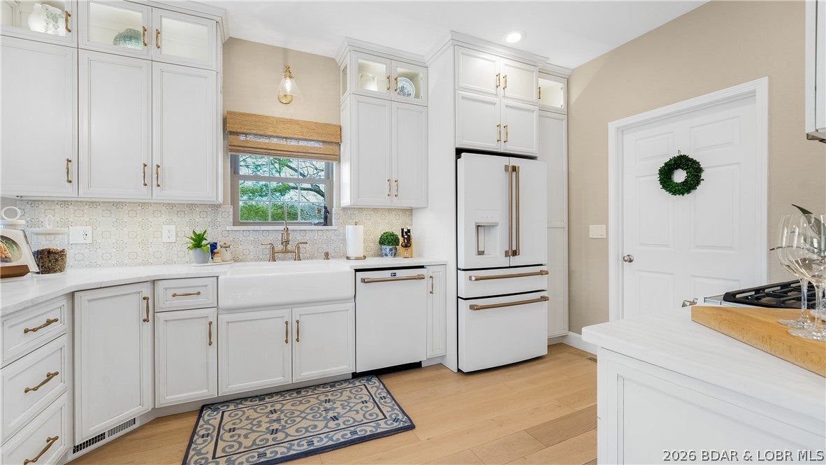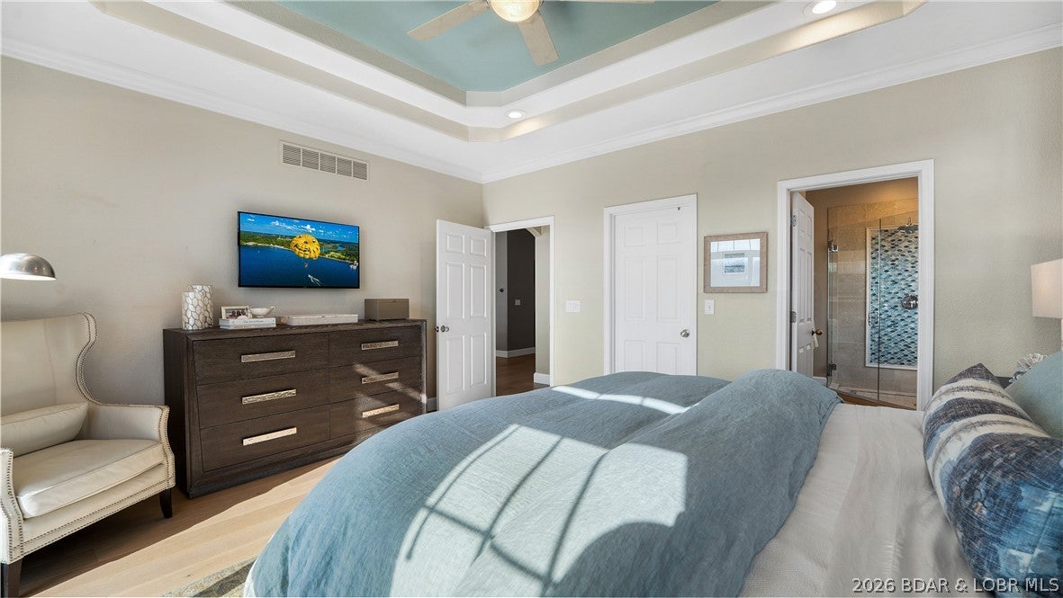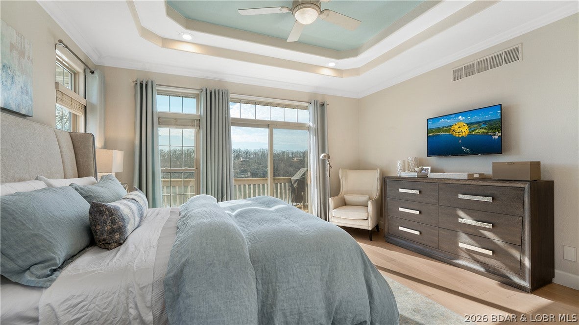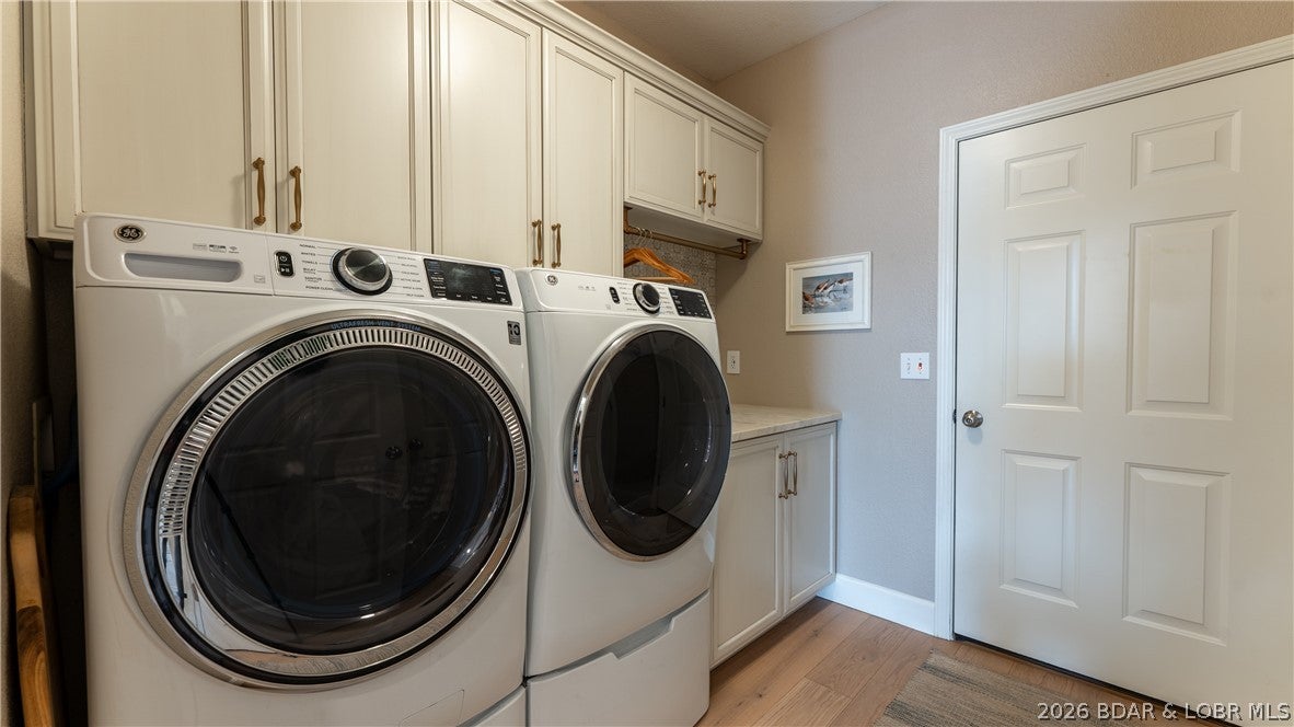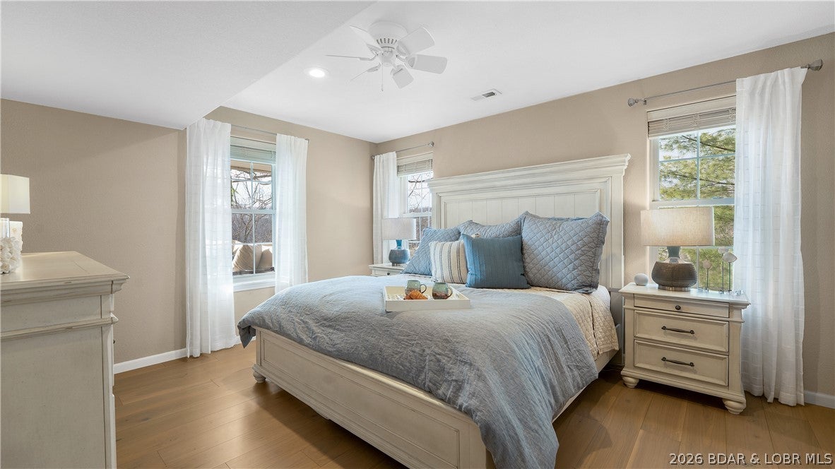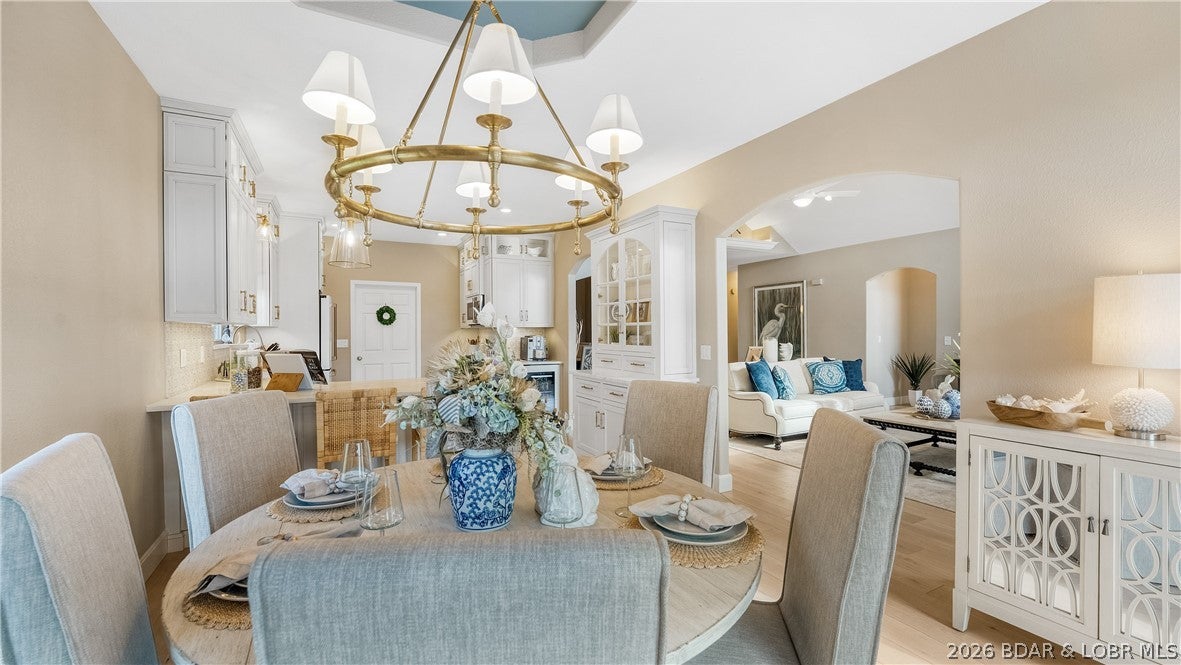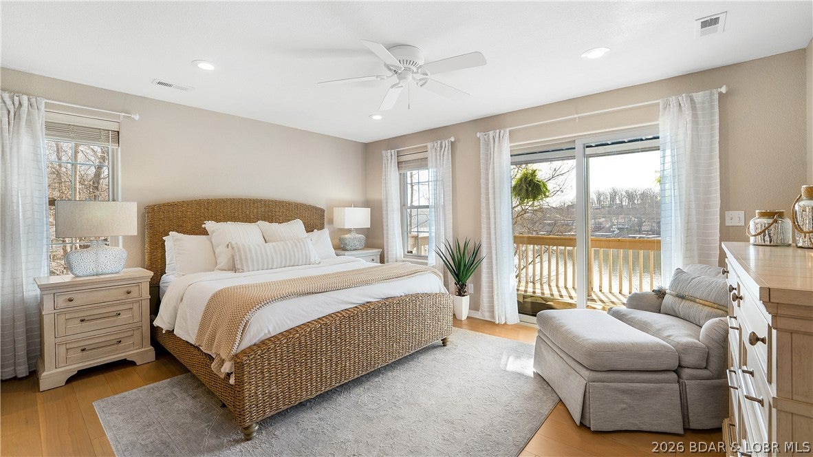 No wake cove at the 34-mile marker of the Osage, this 4-bed, 4.5 bath lakefront home offers rare privacy, space, and main channel views. Step inside to an open main level designed for easy living and entertaining, where the updated kitchen flows into the living area and out to expansive lake views. Primary suite, guest bedroom, full bath, laundry room, and bath create comfortable main-level living. The lower level is set up for hosting with a second living area, wet bar, a second ensuite, 4th bedroom, and another full bath, giving family and guests their own space. Outdoor living continues with open and covered decking, an awning for shade, and an easy walk to the dock. The 12x32 slip includes a 10,000 lb Polylift with remote, Wet Steps ladder, PWC port in calm, deep water. Numerous curated designer upgrades throughout (property highlights sheet), newer HVAC systems, and a well-maintained interior make this move-in ready. Attached 2-car garage with epoxy floors and extra storage. Assessment fee covers water, sewer, trash, street lights, park area, and trailer parking. Close to Captain Rons, Bulldogs Beach House, and Stewarts on the Water. Furniture package available.