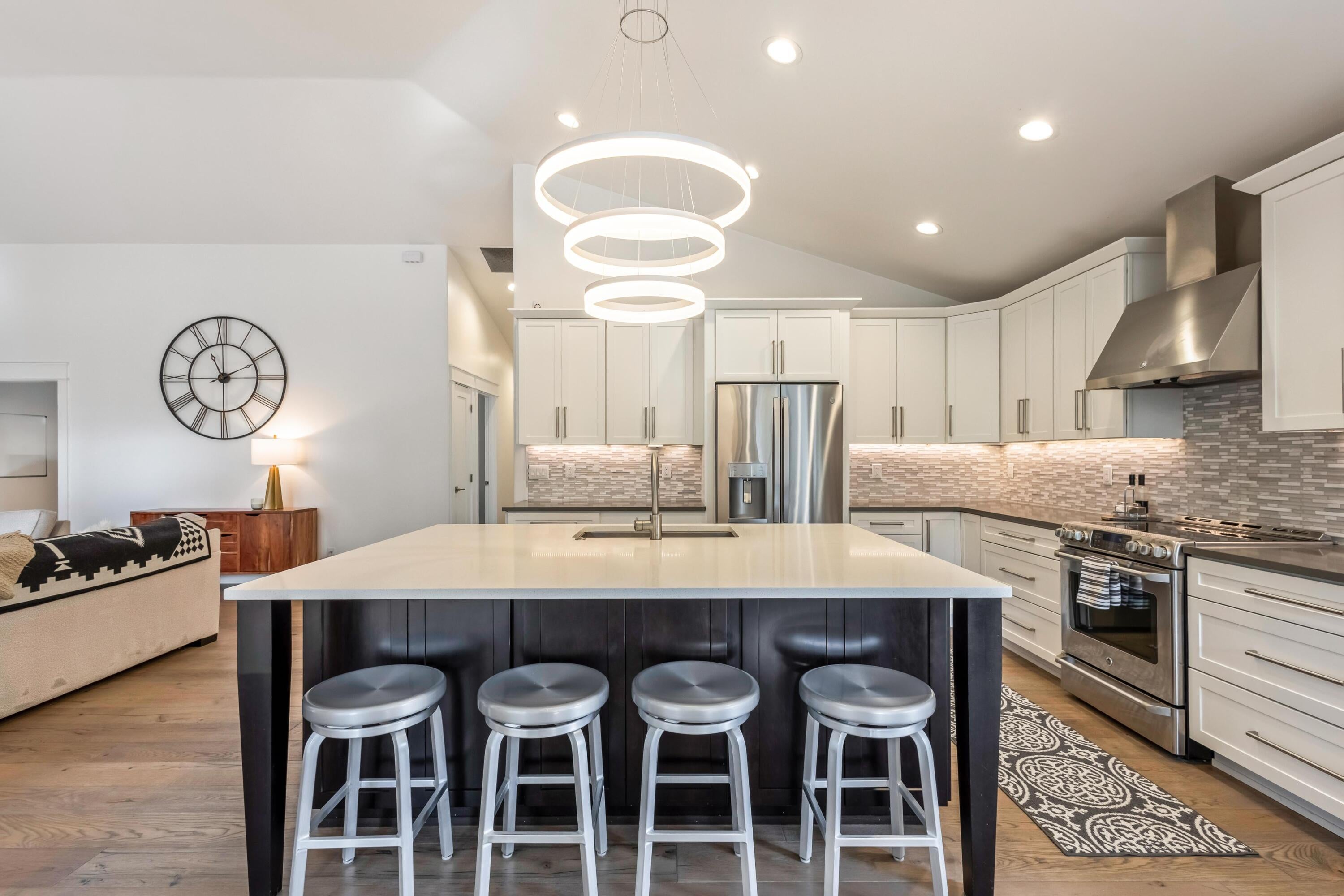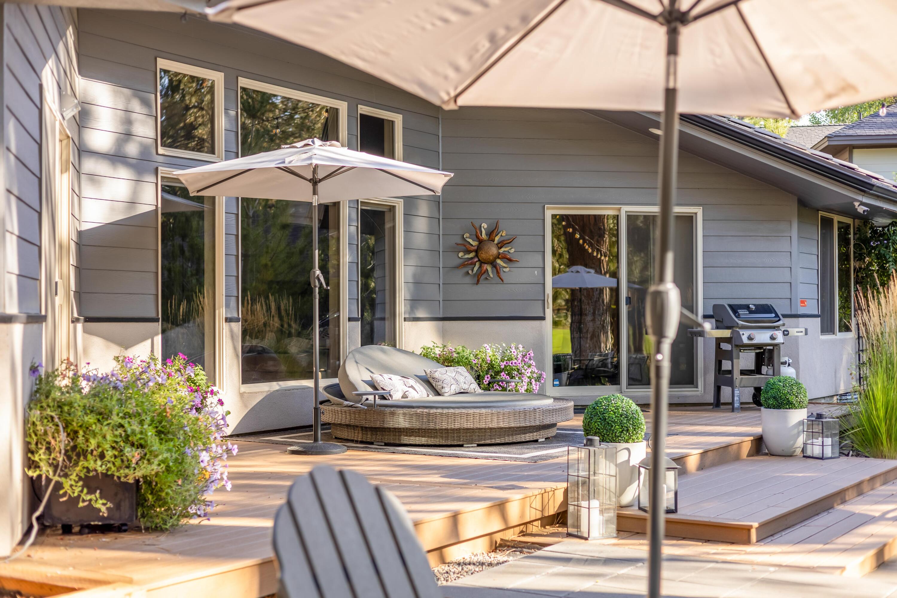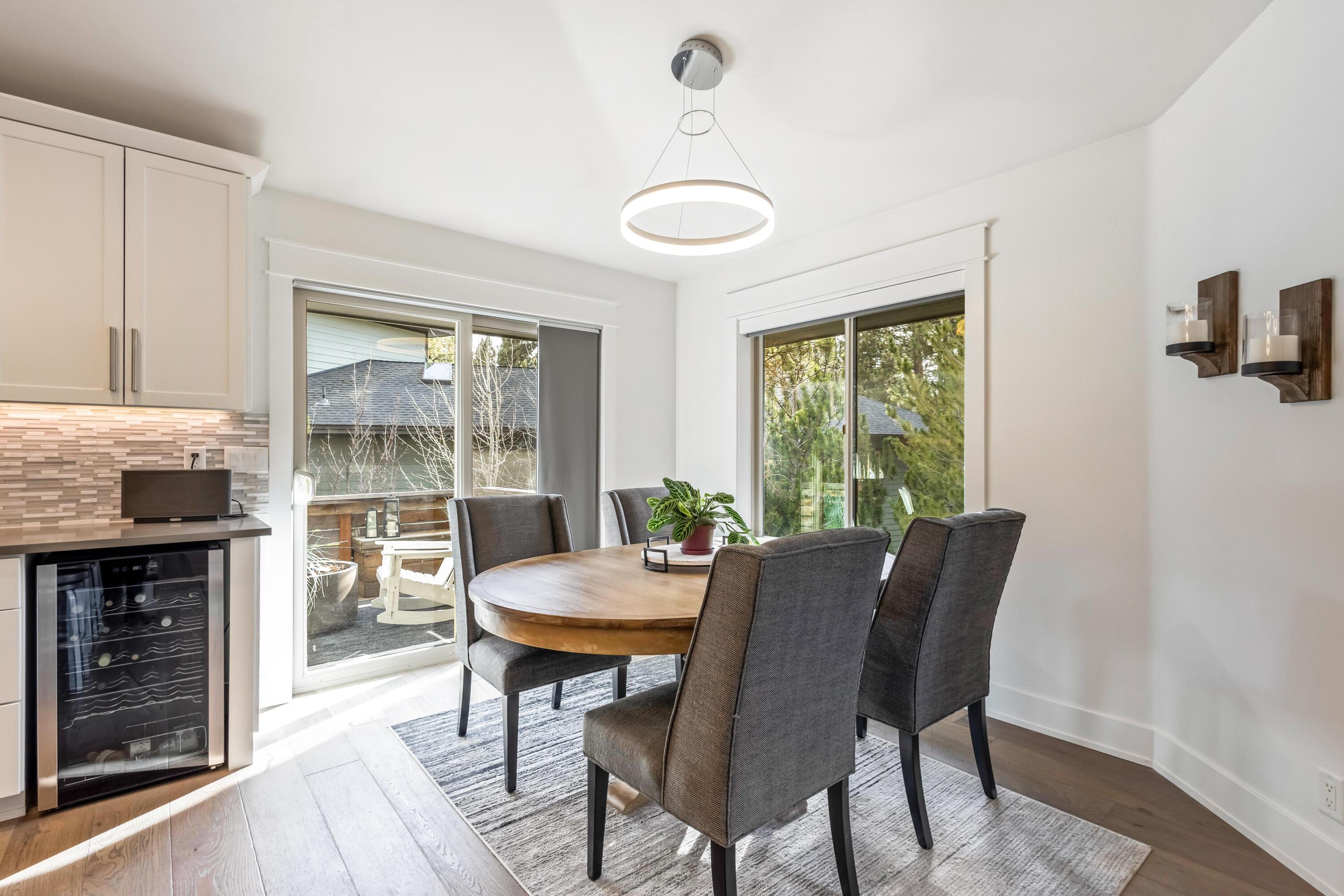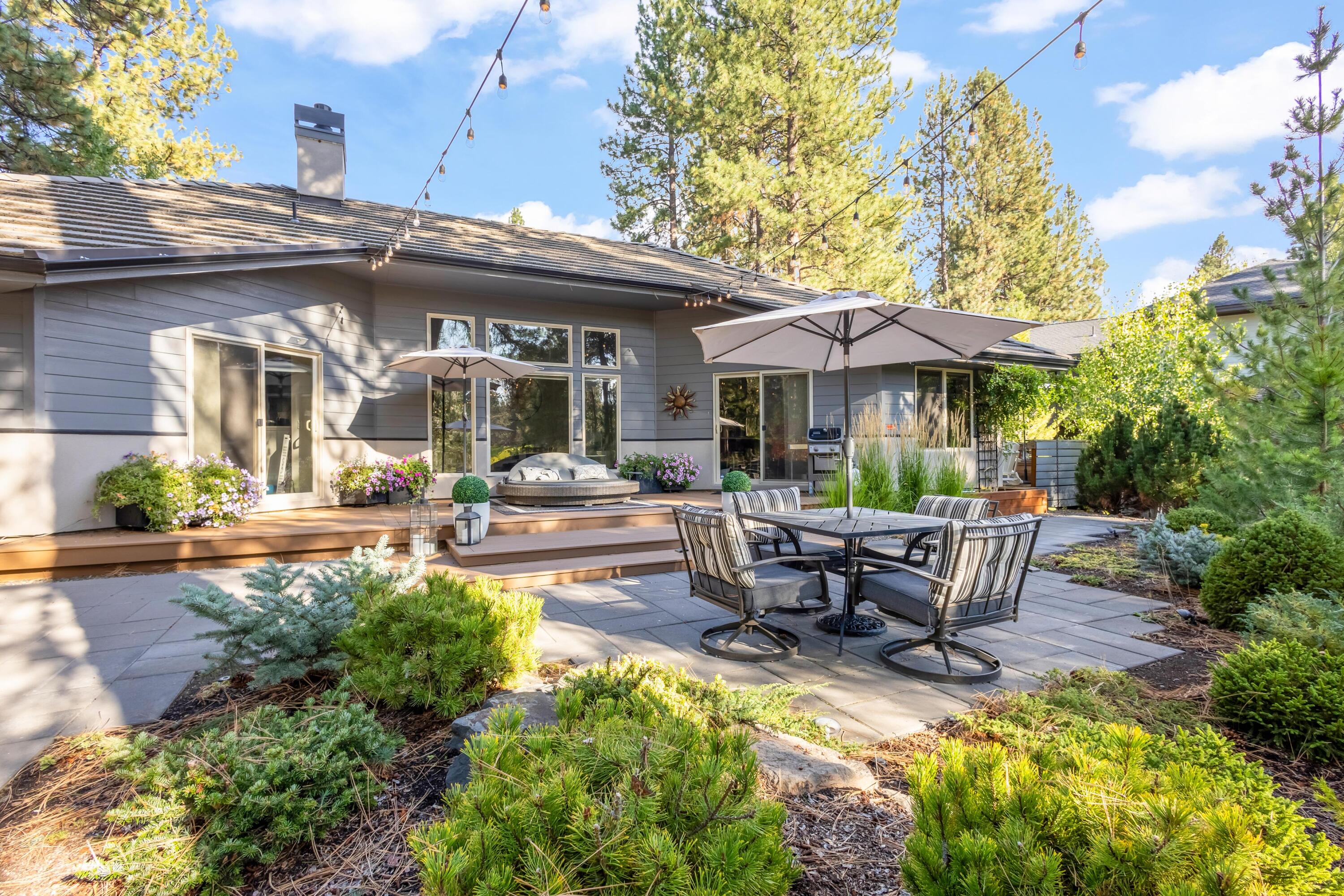 Nestled along the 7th fairway of prestigious Widgi Creek Golf Club, this eloquently renovated 3-bed, 2-bath retreat perfectly blends refined living with resort-style relaxation. Bathed in golden light, the home captures breathtaking golf course views while enjoying the privacy of a large, treed lot. A gorgeous, thoughtfully updated kitchen inspires effortless entertaining. The west-facing patio is the true showstopper featuring a gas fire pit and multiple seating areas. It is an entertainers dream. Watch the sun dip behind the Cascades while golfers complete their round below, all with exceptional privacy. A spacious garage with workshop rounds out this beautiful property with room for your gear, hobbies, and everything the Central Oregon lifestyle demands.
