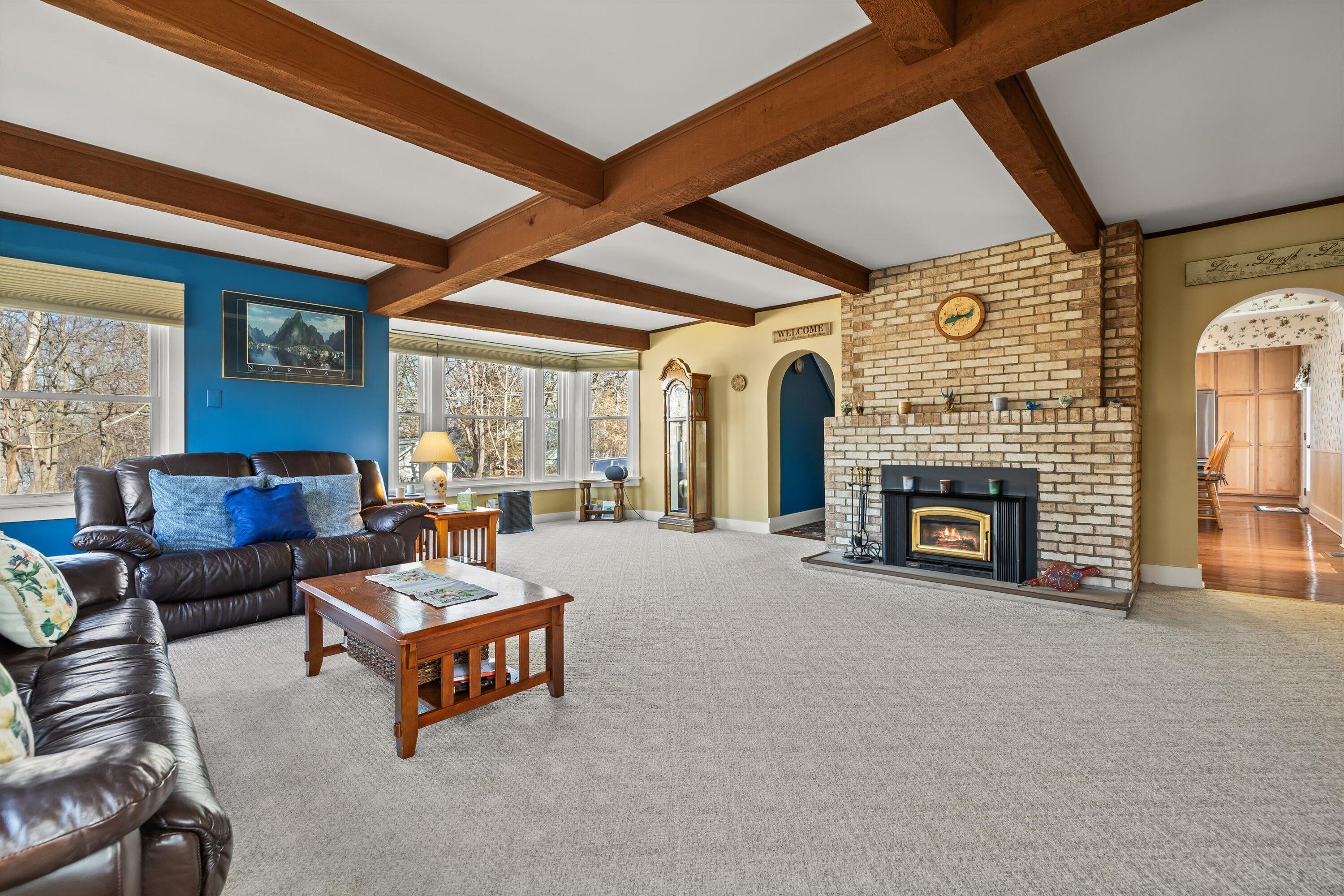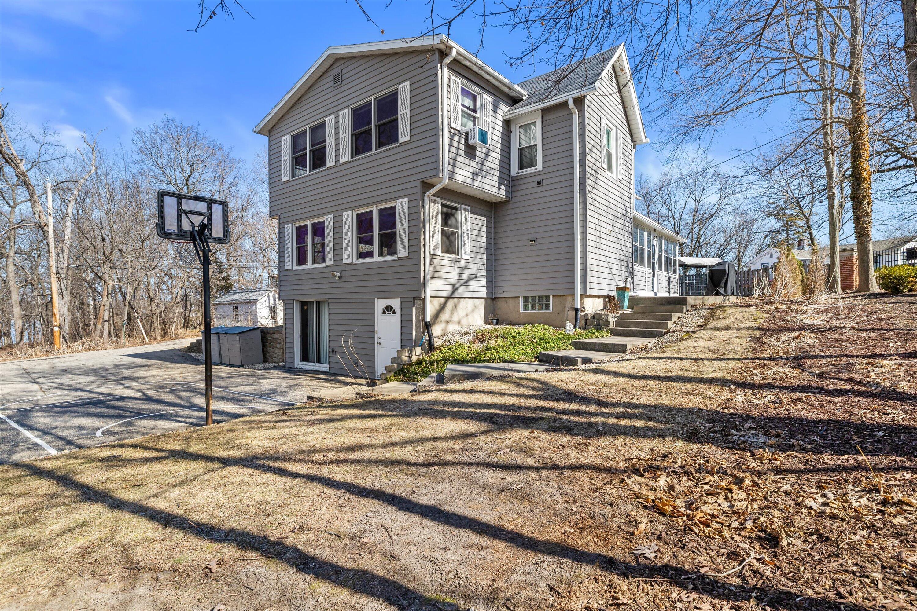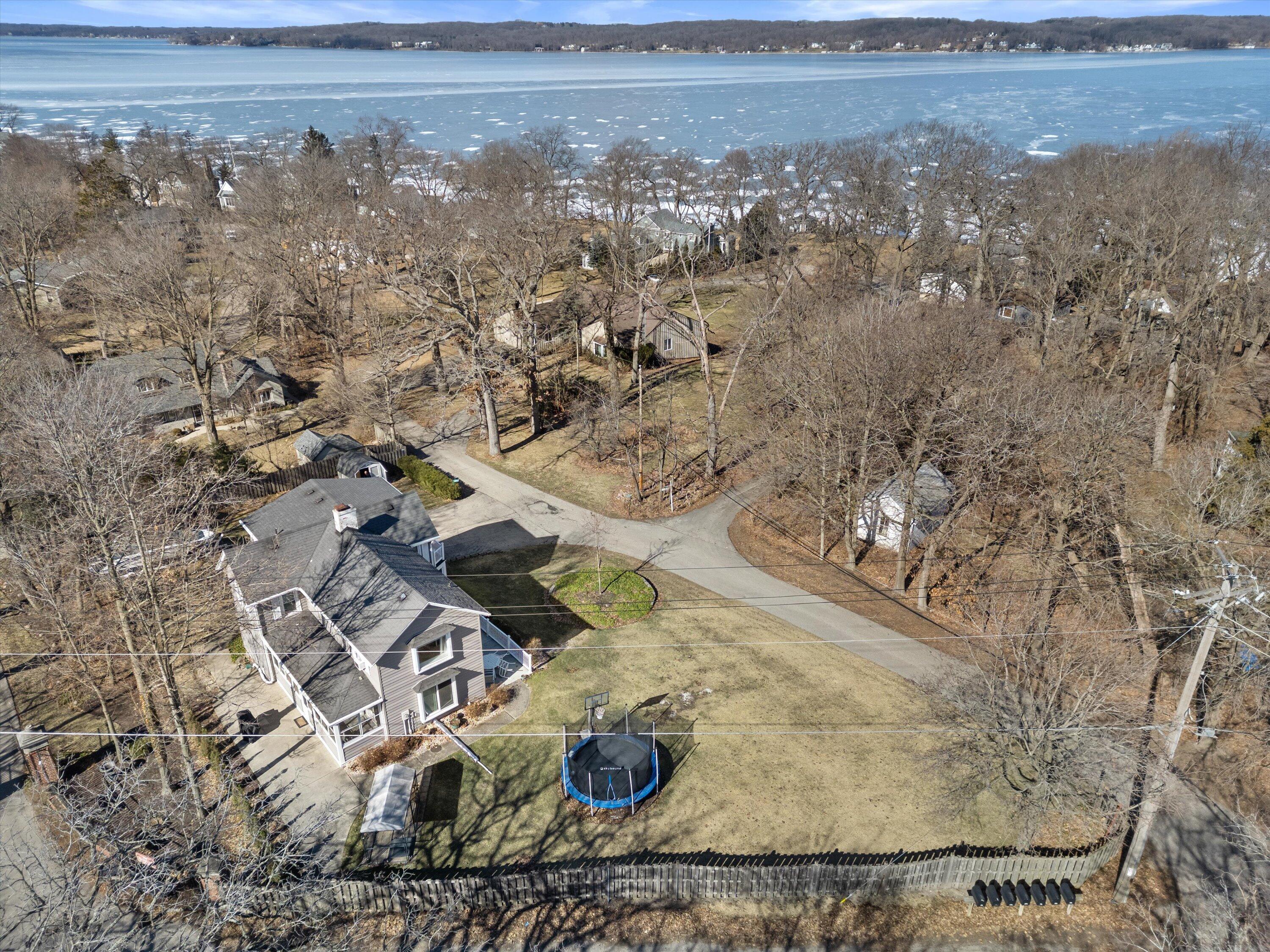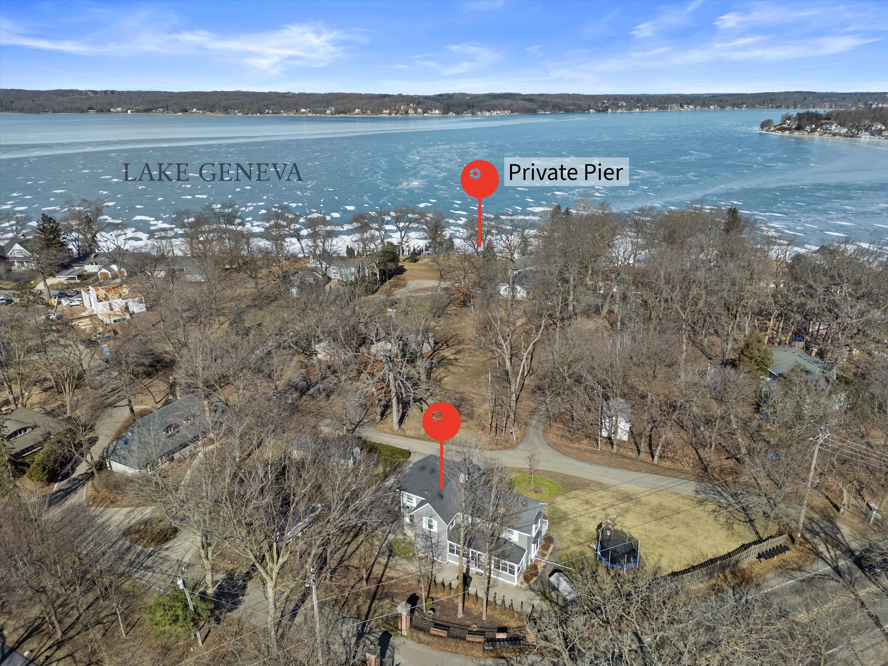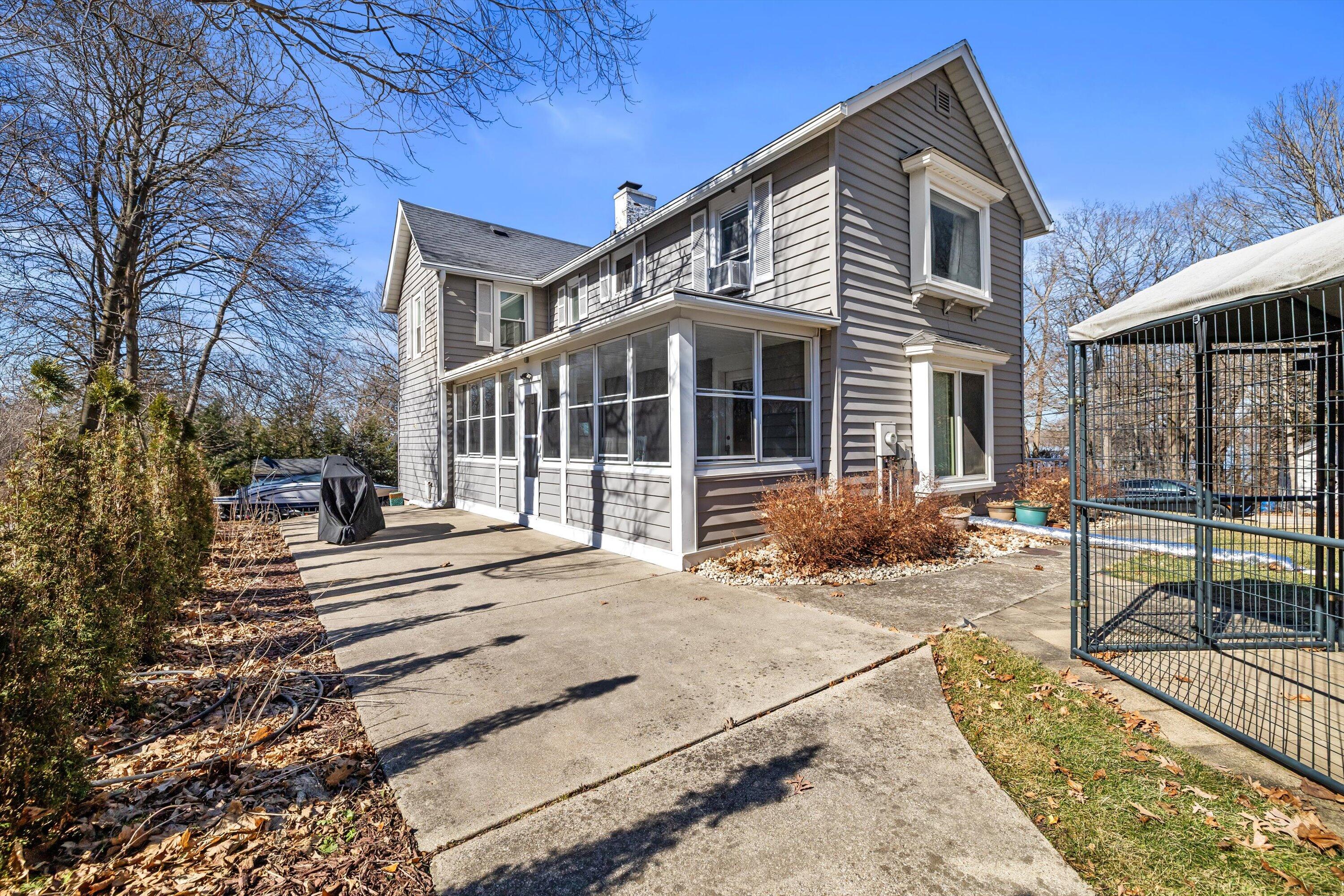 Hurry! Tremendous opportunity! Just a short walk to the lake and very rare to have your own private pier with slips! This older home stands up tall with room to roam on an oversized lot! Enjoy summers on the side deck or enclosed sun filled porch! Cozy LR w/solid brick FP, cstm blt-n, cedar beams & btfl seasonal views of the lake! Lrg oversized gourmet ktchn w/huge brkfst bar island, 42 maple cabs, SS vented hood, SS appliances & sep eating area! Spacious mbdrm w/picture wndw, chair rail & full private bath! All secondary bdrms w/seasonal lake views! Part fin lwr lvl with rec rm w/sldr, full bath and unfin area for storage! Tons of parking space! 2 sheds! Nwr furn, A/C & siding! 1 block 2 Big Foot Beach State Park! Close to downtown! So much upside here! Sold AS IS!