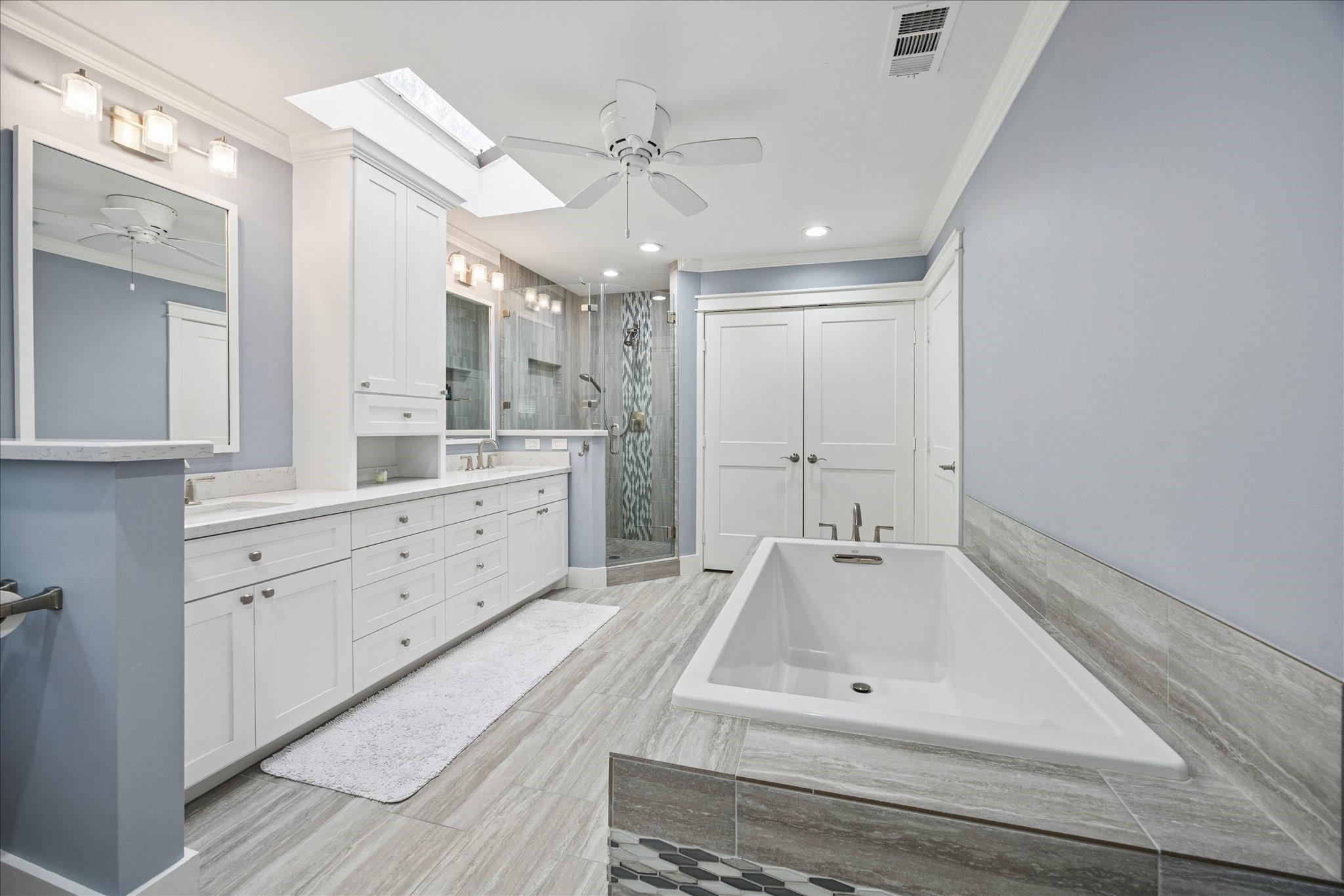 Beautifully updated traditional home on desirable street in Nottingham Forest. Wonderful floor plan with 5 bedrooms, 3.5 baths, study, primary bedroom down and over sized kitchen. Home updates include: roof, windows, driveway, sidewalk, siding, HVAC, doors, trim, wood floors, crown molding, baseboards, recessed lighting, fixtures, custom cabinets, updated bathrooms, french drains, gutters, PEX and paver patio. Gorgeous kitchen is perfect for entertaining with large peninsula over looking the family room and breakfast room, stainless appliances, gas range, under counter lighting, recessed lighting, great pantry and large mud room for extra storage. The spacious primary suite addition has a raised ceiling, seating area, wall of windows and french doors and a spectacular walk-in closet with custom built-in shelves and three access doors. Primary bath has custom cabinets, stand alone tub and walk-in shower. This home is truly one of a kind with amazing curb appeal and a private back yard!
