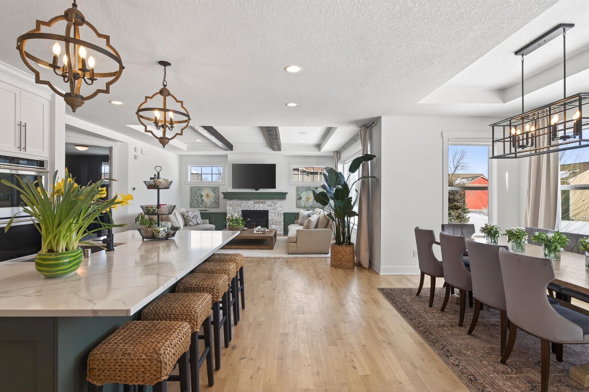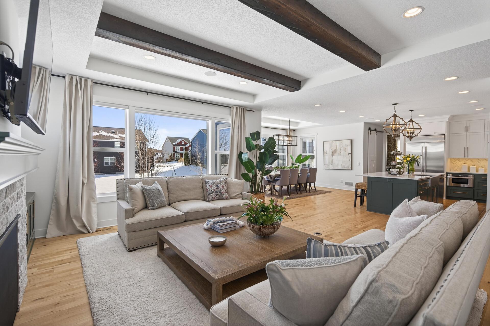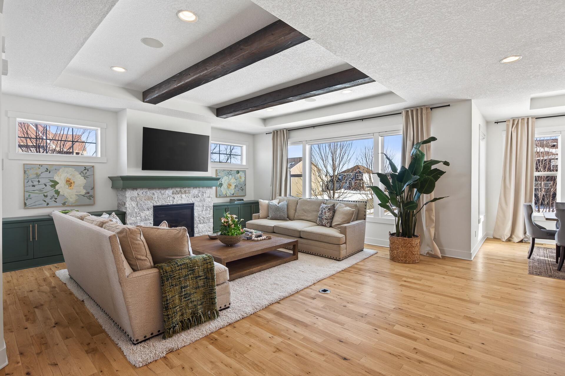 Elevated design meets effortless luxury! This custom-built Norton masterpiece in Serenity on the Greenway redefines refined living in Plymouthwithin the award-winning Wayzata Public Schools district. Perfectly positioned on a beautifully landscaped .30-acre corner lot, this professionally managed neighborhood offers exclusive access to a shared pool and clubhouse, enhancing an already exceptional lifestyle. With over 5,000 finished square feet, five bedrooms, and five baths, the open-concept layout blends architectural detail with everyday comfort. It feels like new constructiononly betterbecause every thoughtful upgrade and custom finish is already complete. Soaring ceilings with wood beams, abundant natural light, and gorgeous design elements immediately make a statement when you enter the home. The main level makes a stunning impression with white oak flooring and a gas fireplace with stone surround & cabinets that anchors the living room. The designer kitchen is both beautiful and a dream to cook in, featuring painted ceiling-height cabinetry, modern hardware, tile backsplash, quartz countertops, stainless steel appliances with vent hood, center island with breakfast bar, and a walk-in pantry. A major highlight, the vaulted four-season porch offers a paneled ceiling, fireplace, TV, ceiling fan, and LVP flooring, with a no-maintenance grill deck just beyondcreating seamless indoor-outdoor living. Upstairs, the spacious primary suite features a tray ceiling, custom bookshelves, a walk-in closet with custom organizers, and a spa-inspired bath with double bowl vanity and cabinet tower, soaking tub, and fully tiled shower. The fully finished lower level is built for fun & entertainment with a media room, game room, full wet bar with island seating, wine room, surround sound, fifth bedroom, and bath. Additional highlights include a main-level office, mudroom with built-in bench and lockers, laundry room with sink and folding counter, custom window treatments, multiple walk-in closets, oversized water heater, air-to-air exchanger, water softener, and a three-car insulated, fully finished garage with concrete driveway. With a rare blend of elevated style, thoughtfully designed layout, and premier location - this is the one that truly checks every box. Welcome home!