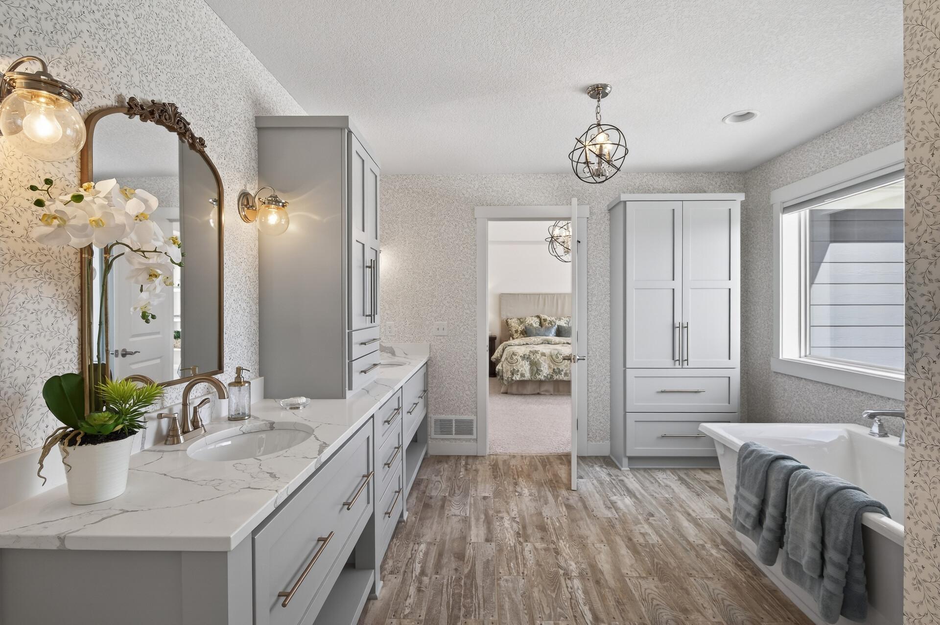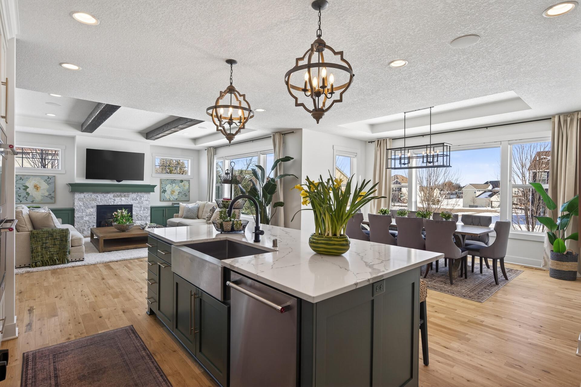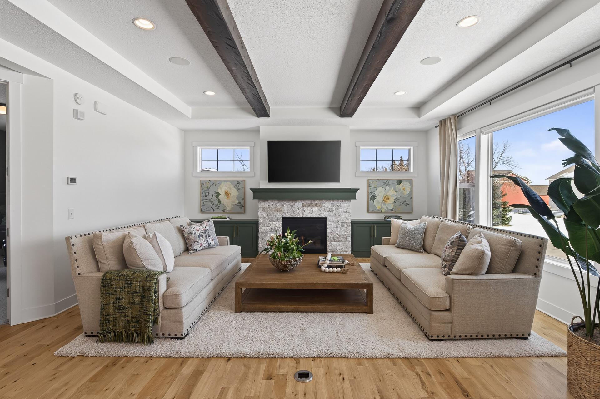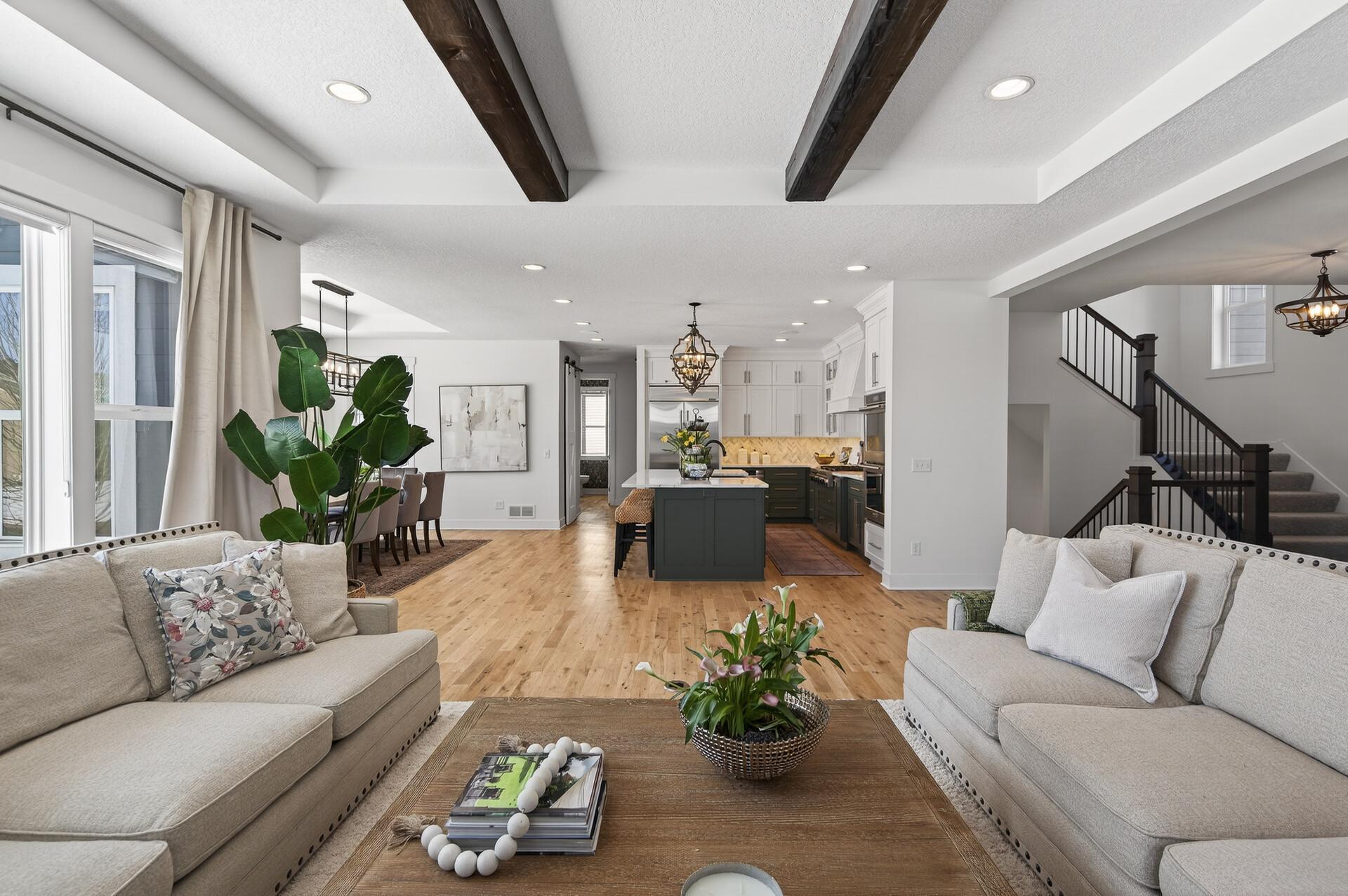 Elevated design meets effortless luxury! This custom-built Norton masterpiece in Serenity on the Greenway redefines refined living in Plymouthwithin the award-winning Wayzata Public Schools district. Perfectly positioned on a beautifully landscaped .30-acre corner lot, this professionally managed neighborhood offers exclusive access to a shared pool and clubhouse, enhancing an already exceptional lifestyle. With over 5,000 finished square feet, five bedrooms, and five baths, the open-concept layout blends architectural detail with everyday comfort. It feels like new constructiononly betterbecause every thoughtful upgrade and custom finish is already complete. Soaring ceilings with wood beams, abundant natural light, and gorgeous design elements immediately make a statement when you enter the home. The main level makes a stunning impression with white oak flooring and a gas fireplace with stone surround & cabinets that anchors the living room. The designer kitchen is both beautiful and a dream to cook in, featuring painted ceiling-height cabinetry, modern hardware, tile backsplash, quartz countertops, stainless steel appliances with vent hood, center island with breakfast bar, and a walk-in pantry. A major highlight, the vaulted four-season porch offers a paneled ceiling, fireplace, TV, ceiling fan, and LVP flooring, with a no-maintenance grill deck just beyondcreating seamless indoor-outdoor living. Upstairs, the spacious primary suite features a tray ceiling, custom bookshelves, a walk-in closet with custom organizers, and a spa-inspired bath with double bowl vanity and cabinet tower, soaking tub, and fully tiled shower. The fully finished lower level is built for fun & entertainment with a media room, game room, full wet bar with island seating, wine room, surround sound, fifth bedroom, and bath. Additional highlights include a main-level office, mudroom with built-in bench and lockers, laundry room with sink and folding counter, custom window treatments, multiple walk-in closets, oversized water heater, air-to-air exchanger, water softener, and a three-car insulated, fully finished garage with concrete driveway. With a rare blend of elevated style, thoughtfully designed layout, and premier location - this is the one that truly checks every box. Welcome home!