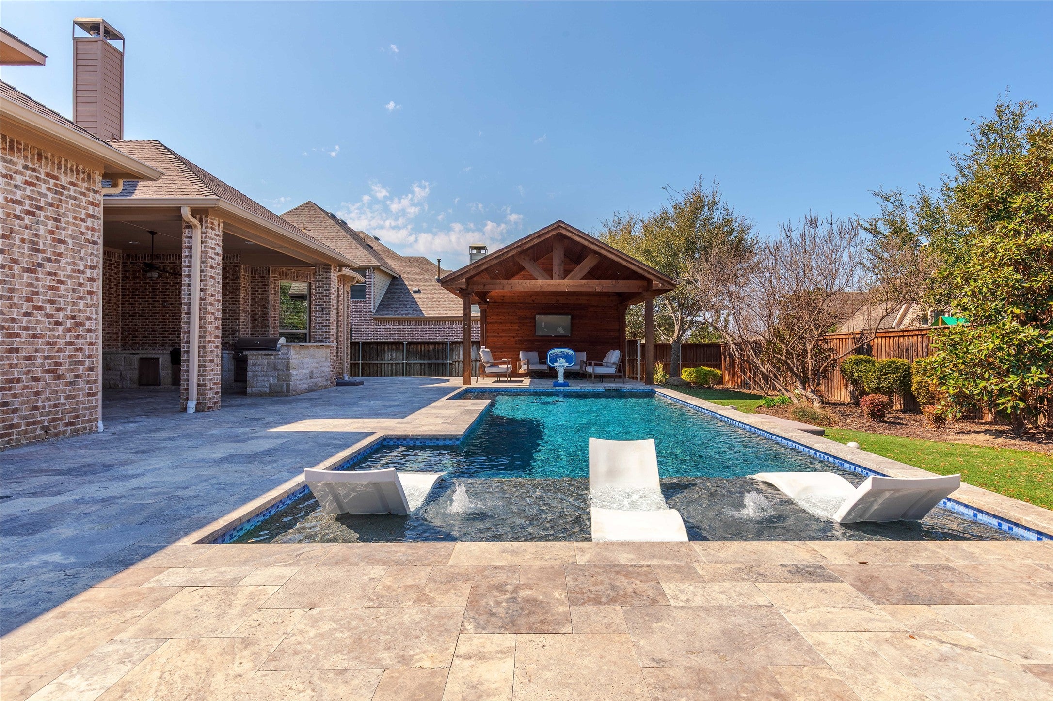 Experience elevated living in this exceptional 5-bedroom, 4 full and 2 half-bath luxury home in the highly sought-after Whitley Place community of Prosper, TX. Perfectly designed for both everyday comfort and elegant entertaining, this home offers a seamless blend of sophistication and functionality.A welcoming foyer sets the tone, leading to a spacious open-concept living area filled with natural light. The formal dining room and a versatile front office, library or flex space provide ideal settings for gatherings or working from home. The heart of the home flows effortlessly into the expansive living room and chefs kitchen, all overlooking the stunning backyard retreat.The private primary suite is thoughtfully positioned downstairs, featuring a generous walk-in closet and serene views of the backyard oasis. A separate guest suite with its own ensuite bath is also located on the main floor, offering privacy and convenience for visitors.Upstairs, youll find three additional spacious bedrooms, a dedicated media room, an oversized game room, and additional flex space perfect for a study nook, fitness area, or second office.Step outside to your own resort-style backyard complete with a sparkling pool, outdoor kitchen, and covered living areaideal for entertaining year-round in Texas.Located in Whitley Place with easy access to US 380, shopping, dining, and zoned to highly acclaimed Prosper ISD, this home offers the perfect combination of luxury, location, and lifestyle. Schedule your showing today!
