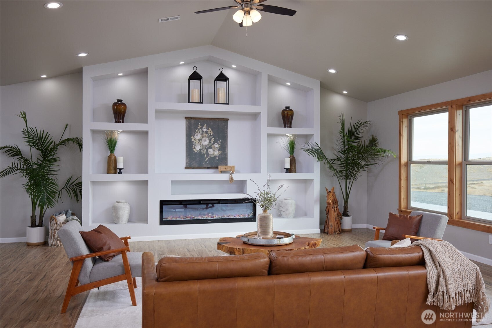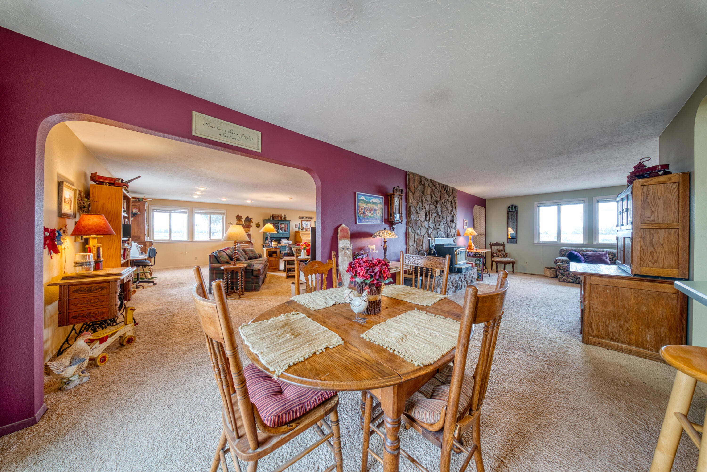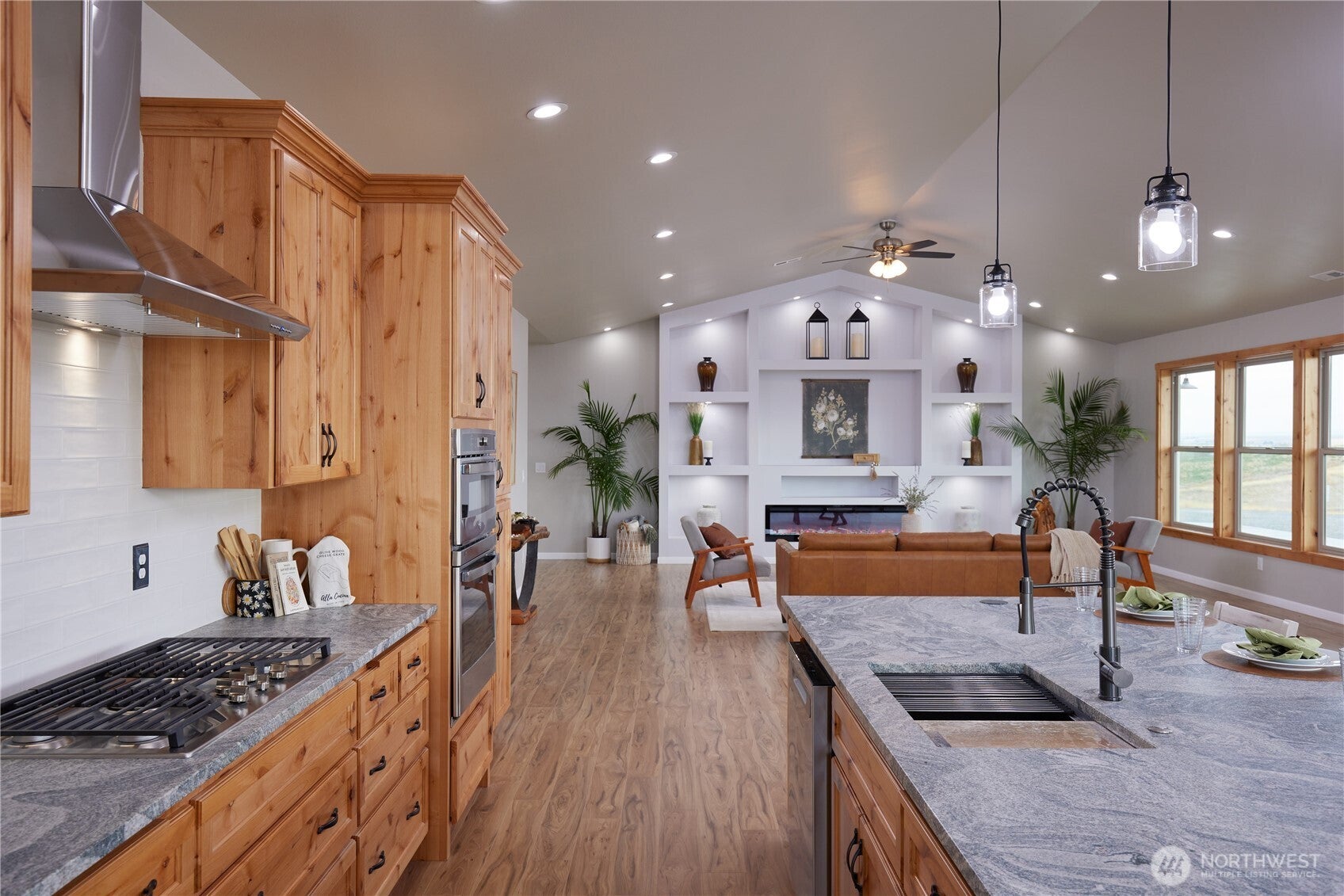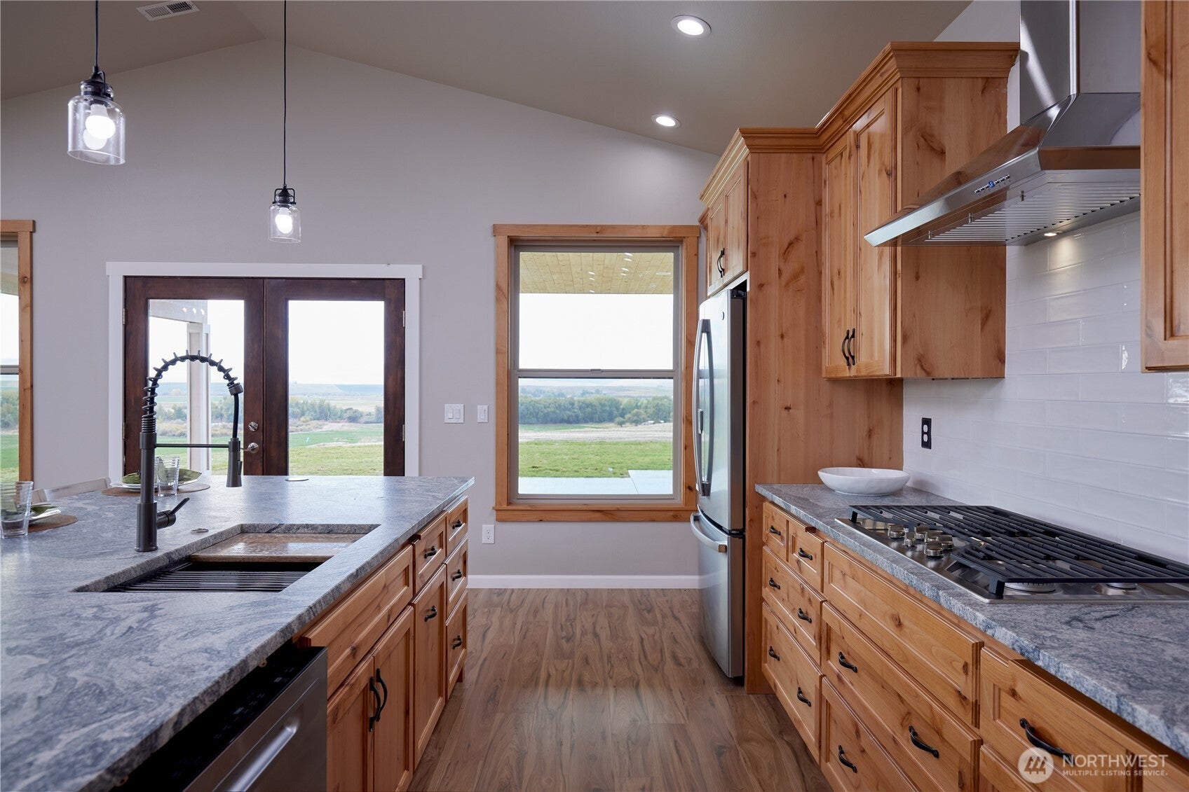 Enjoy refined living with 360 degree mountain views of the beautiful Walla Walla Valley in this newly built, single-level home. This home is set on 7 acres with incredible views of the mountains, sunsets, pastures, fields & vineyards. With 3,100 SF, 5 bedrooms & 5.5 baths, this residence features a luxurious primary suite with a large walk in shower, heated floors, dual sinks, soaker tub, walk in closet which has a washer and dryer hook up available and is situated for ultimate privacy and views of the incredible sunsets. There are four additional bedroom suiteseach with a spacious walk in shower. The flexible format of these spaces could be private work spaces, a theater room, exercise or music room - whatever works for your situation. There is a mother-in-laws suite with a private entrance of its own. The vaulted great room showcases a dramatic feature wall with art lighting and a built-in TV niche. The kitchen impresses with leathered granite counters, beautiful custom cabinetry, gas cook top and a kitchen island that is grand in size and scale. Walking out of the large great room living space, you pass onto the 1,700 SF covered patio, surrounded by new sod, underground sprinklers, and panoramic vineyard vistas. The water rights that are included in this property are exceptional. With easy access to Walla Walla, Touchet, Pasco, Kennewick & Richland, this propertys location is ideal for commuting. Also has an oversized garage with additional laundry & ample parking.