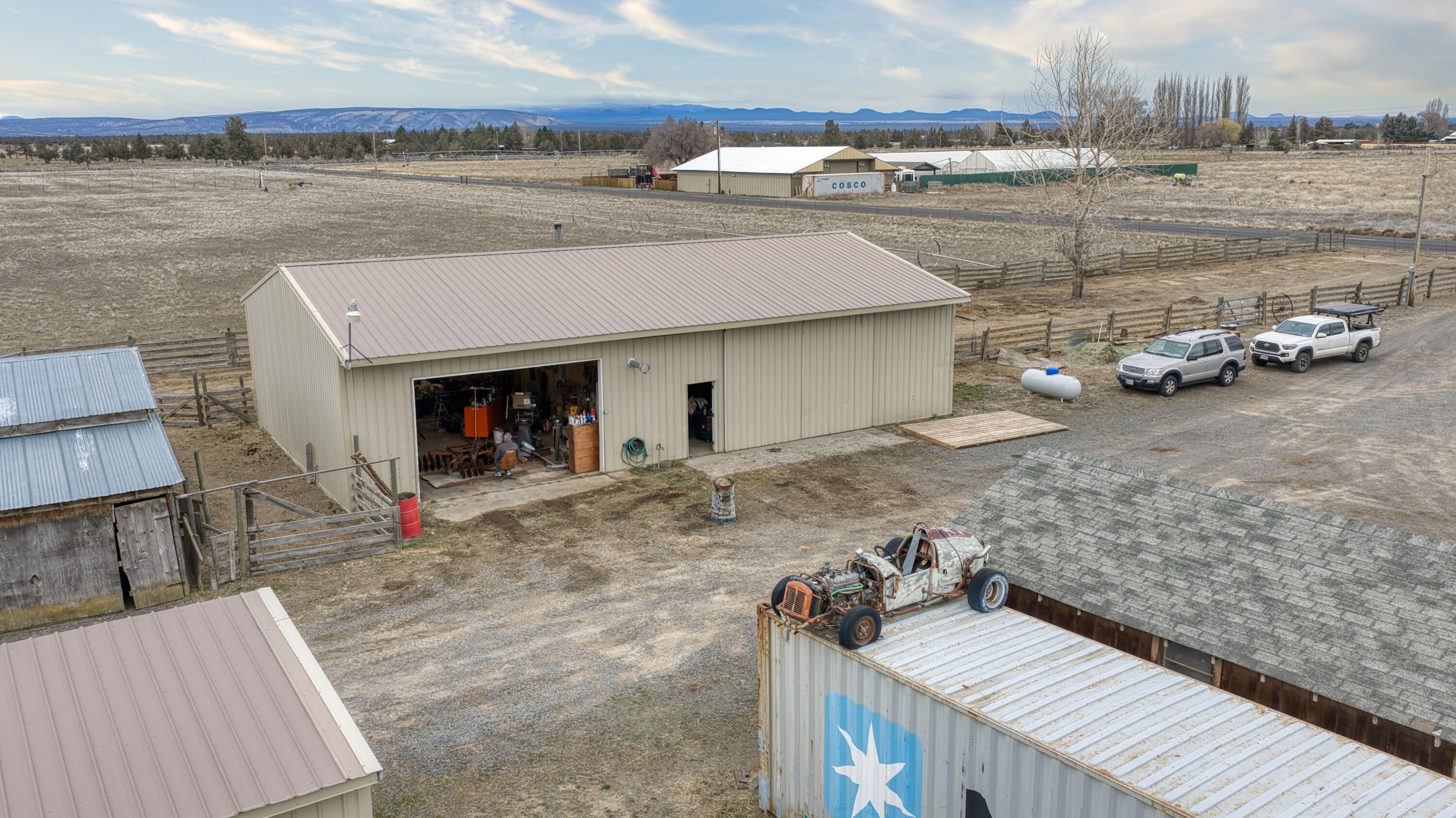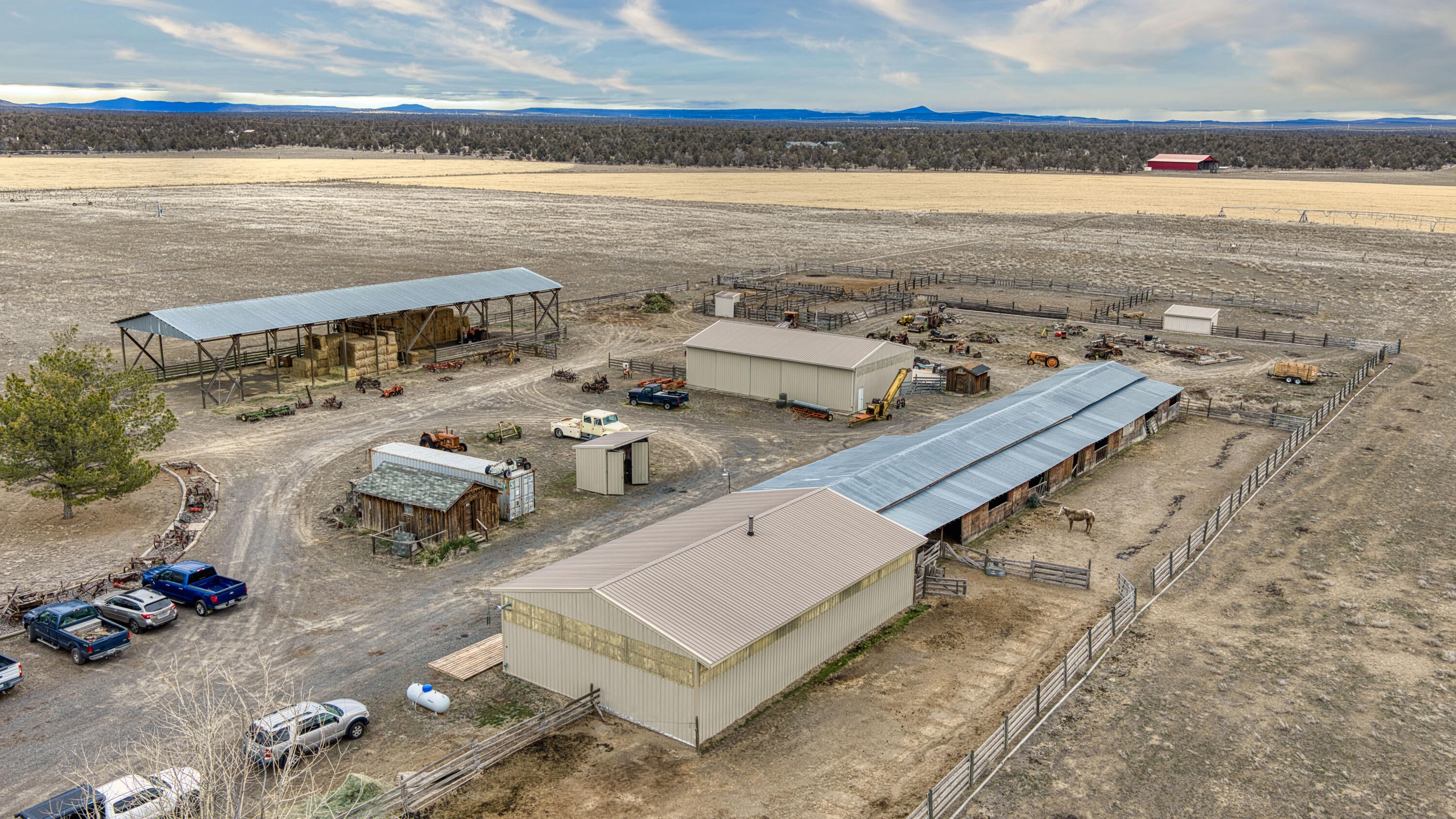 Set against sweeping Cascade Mountain views, this 77-acre irrigated ranch offers premier water rights and a rare blend of productivity and refinement. The property includes 69 acres of adjudicated Central Oregon Irrigation District (COID) irrigation, supporting highly productive alfalfa fields and efficient agricultural operations. Modern water infrastructure includes three circle pivots installed in 2019, three wheel lines, and a new irrigation pump added in 2023. The ranch is anchored by a 2,243 sq ft, 3-bedroom, 2-bath residence featuring a new roof in 2023, offering comfortable living framed by open fields and mountain vistas. Extensive improvements include two shops and two pole buildings, providing exceptional flexibility for equipment, hay storage, or expanded agricultural use. Blending working-ranch functionality with refined Central Oregon beauty, this turnkey property is ideally suited for continued production, a legacy holding, or a premier rural retreat.