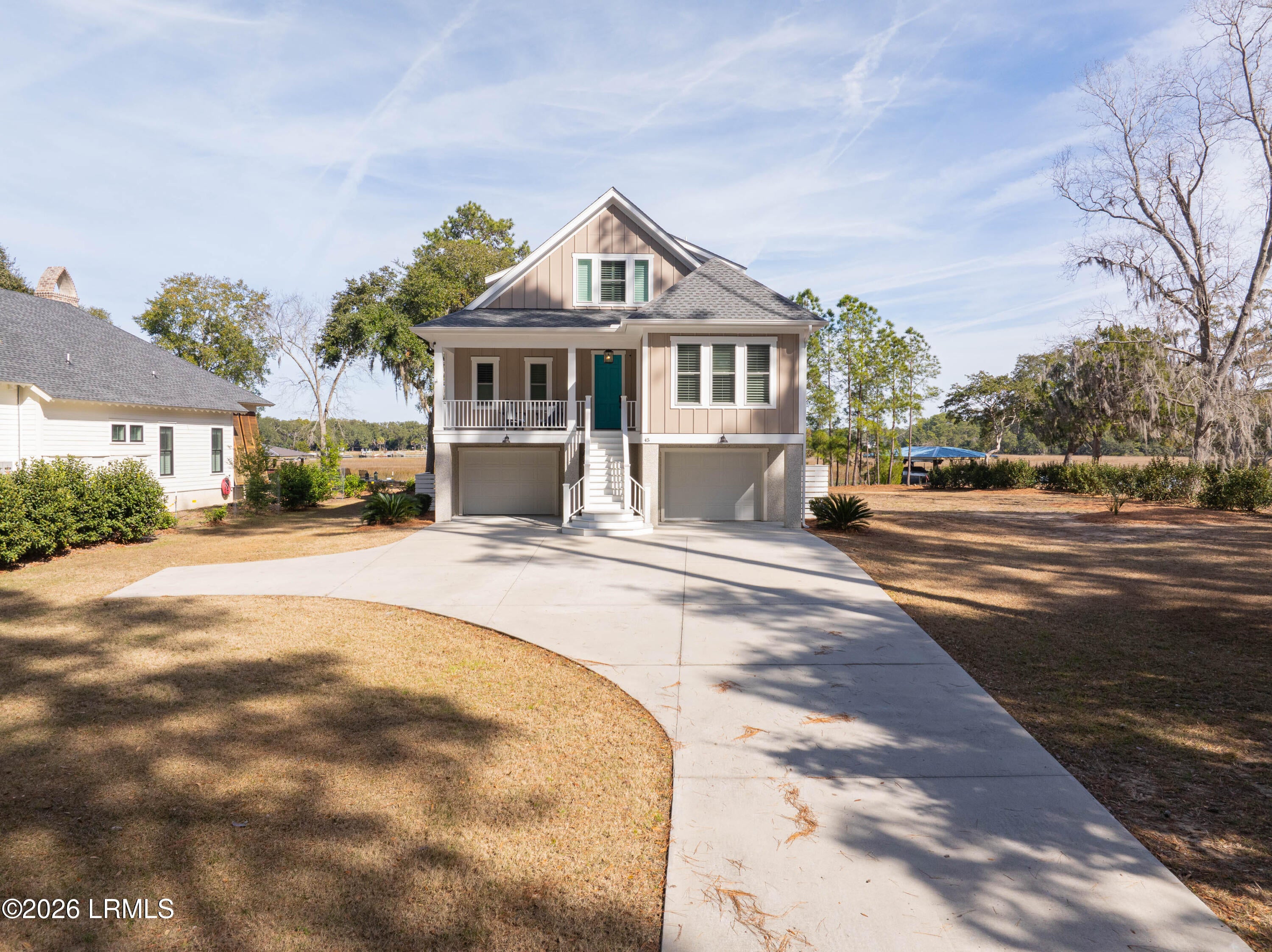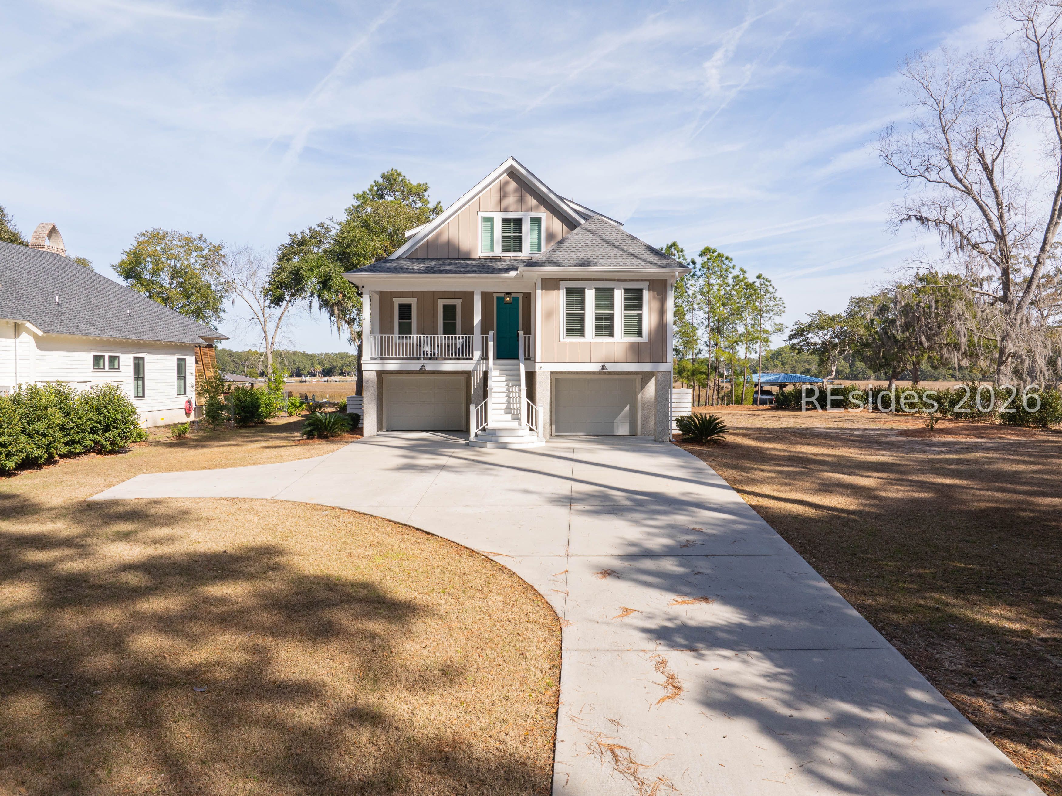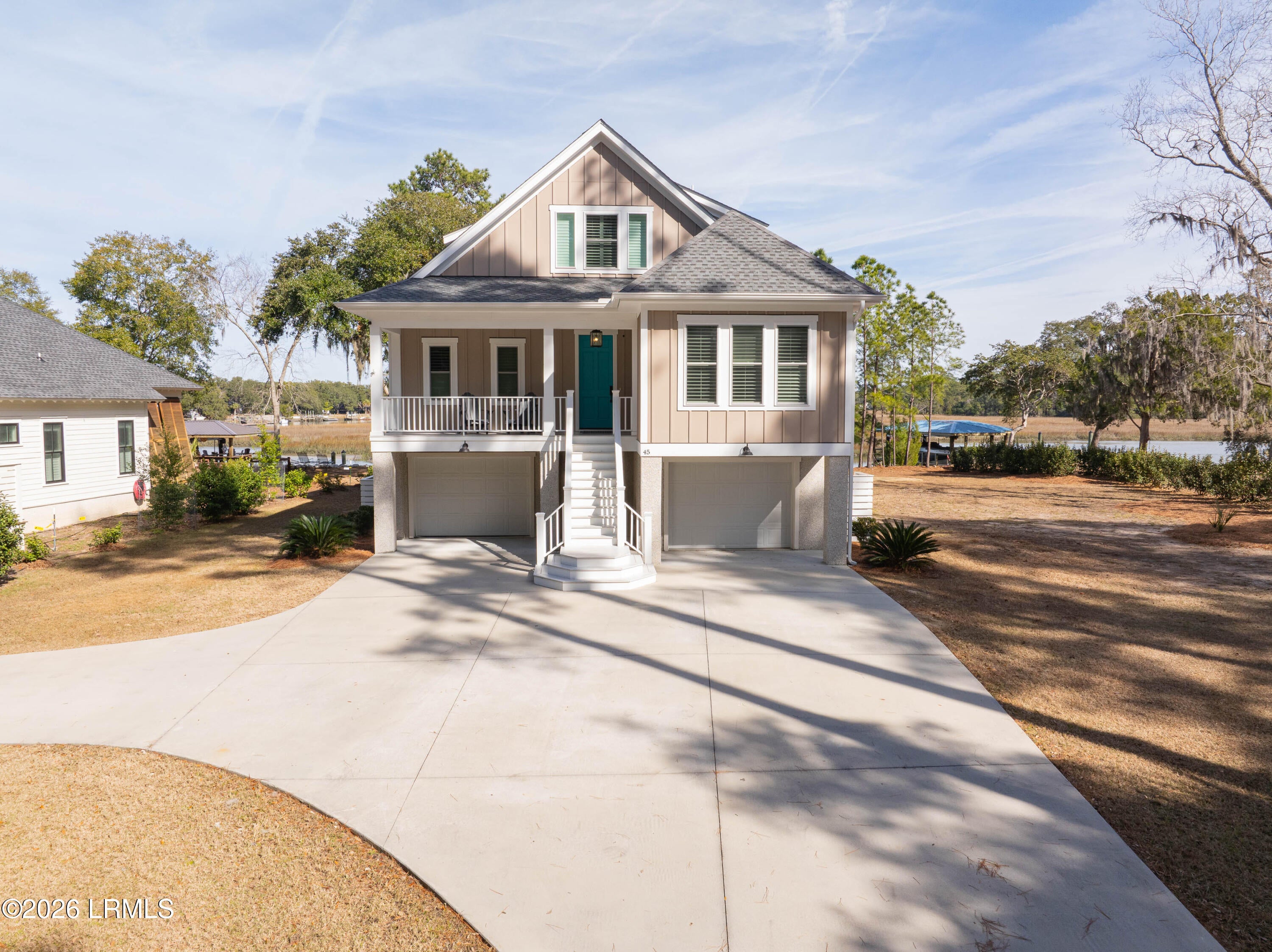 Welcome Home!! This NEARLY NEW 4BR, 3.5BA waterfront home showcases an open, modern floor plan designed to maximize natural light and capture stunning water views throughout. Elevated construction provides peace of mind and features a spacious 2-car garage beneath, offering generous storage, parking, and room for all your coastal gear. Thoughtfully designed with quality finishes, clean lines, and a seamless flow for everyday living or entertaining. Step outside and enjoy true coastal living with easy water access, perfect for boating, kayaking, or simply relaxing and taking in the serene surroundings. Dock permit in hand.