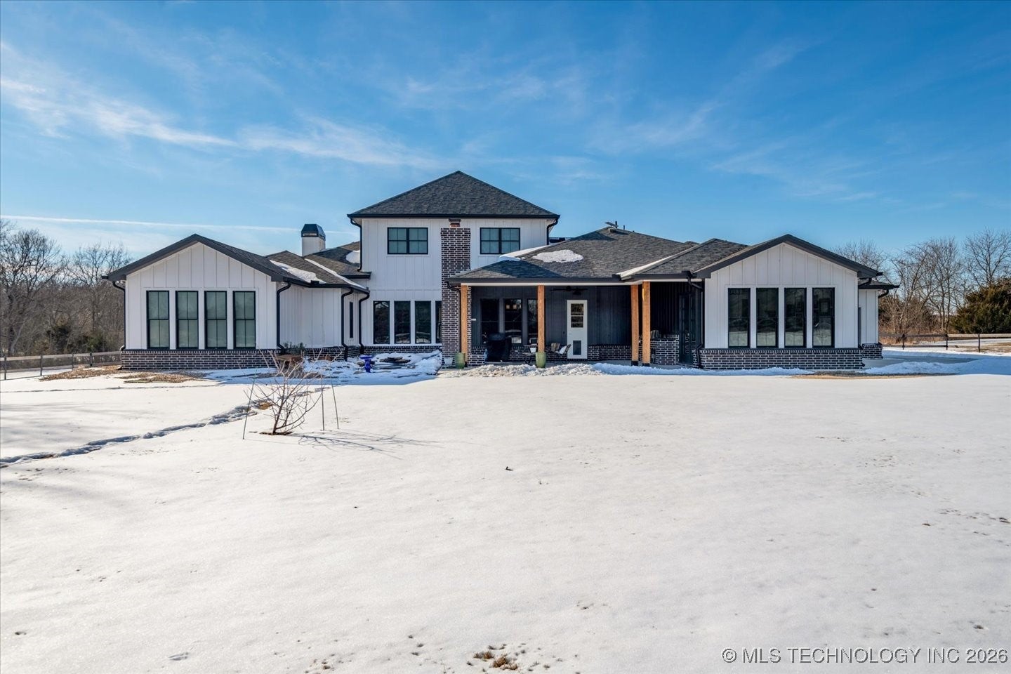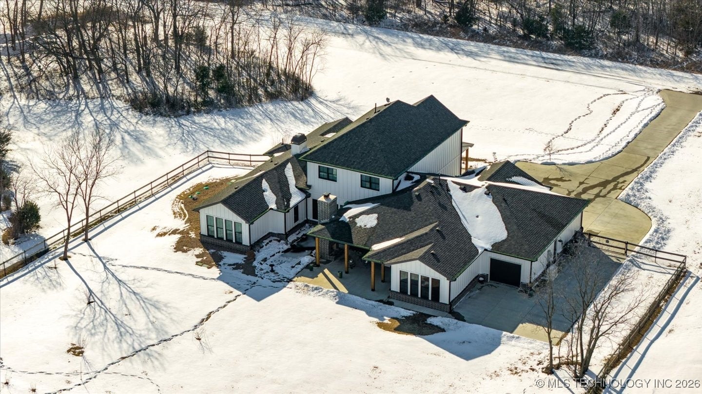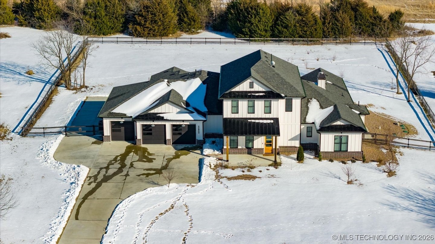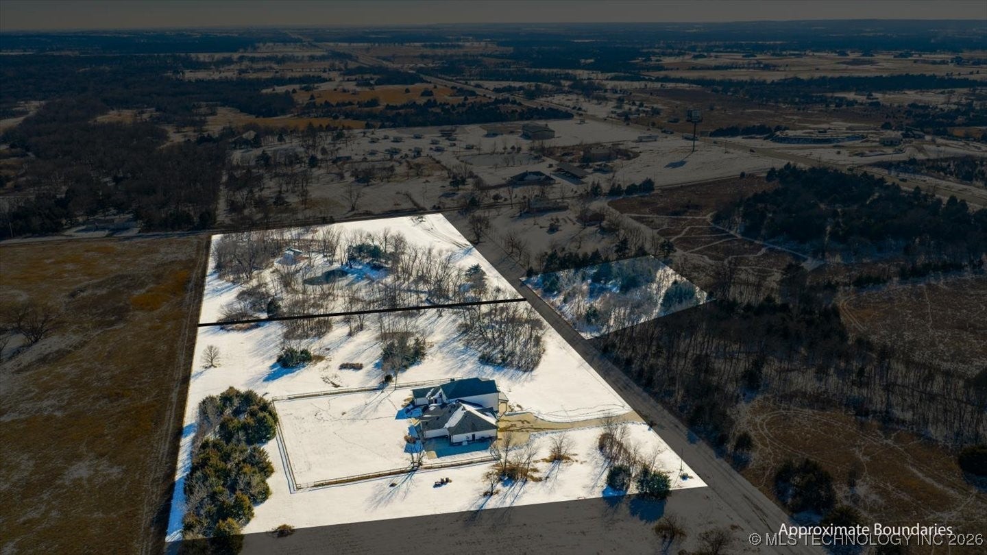 Welcome to a truly exceptional custom built home by Brent Taylor of Taylor Homes. Tucked away on a quiet cul-de-sac, where thoughtful design, high-end craftsmanship, and everyday comfort come together exquisitely. Set on a picturesque 5 acre lot, this stunning home offers the perfect balance of privacy and convenience with easy access to main roads, shopping, dining, and schools. From the moment you arrive, youll notice the attention to detail! A welcoming front porch with wood beams, lush custom landscaping with fruit trees, and a tranquil koi pond with waterfall! The oversized 4 car garage, RV parking with 50-amp service, and whole-home Generac generator add both functionality and peace of mind. This home features, light filled living spaces, and showcases modern farmhouse elegance with shiplap accents, exposed wood beams, designer lighting and beautiful flooring throughout. The heart of the home is the chef-inspired kitchen featuring quartz countertops, a dramatic waterfall island, professional grade GE Monogram appliances, dual dishwashers, a Brizo luxury faucet, and a hidden prep kitchen- perfect for entertaining without compromise. Every bedroom is an en-suite retreat with walk-in closets, while the primary suite offers spa-level luxury with a cathedral ceiling, rainfall shower also featuring an integrated premium speaker system, Deep soaking tub, and thoughtfully designed his-and-hers closets. Multiple living spaces, a private office with built-ins, flex room, fitness room, and whole-home audio create endless possibilities for work, play and relaxation. Step outside to enjoy the covered back porch with brick fireplace and outdoor kitchen-ideal for Oklahoma evenings. With Custom millwork, smart storage throughout, a family safe/tornado shelter and premium finishes at every turn. Additional 5 acre contiguous parcel available, with aerated stocked pond; and metal bdg. This home is a rare opportunity to own a property that is as functional as it is stunning!