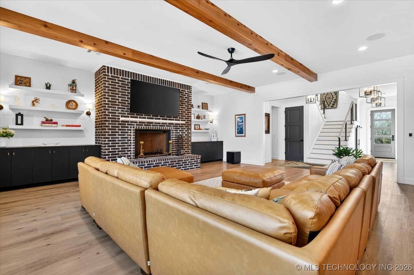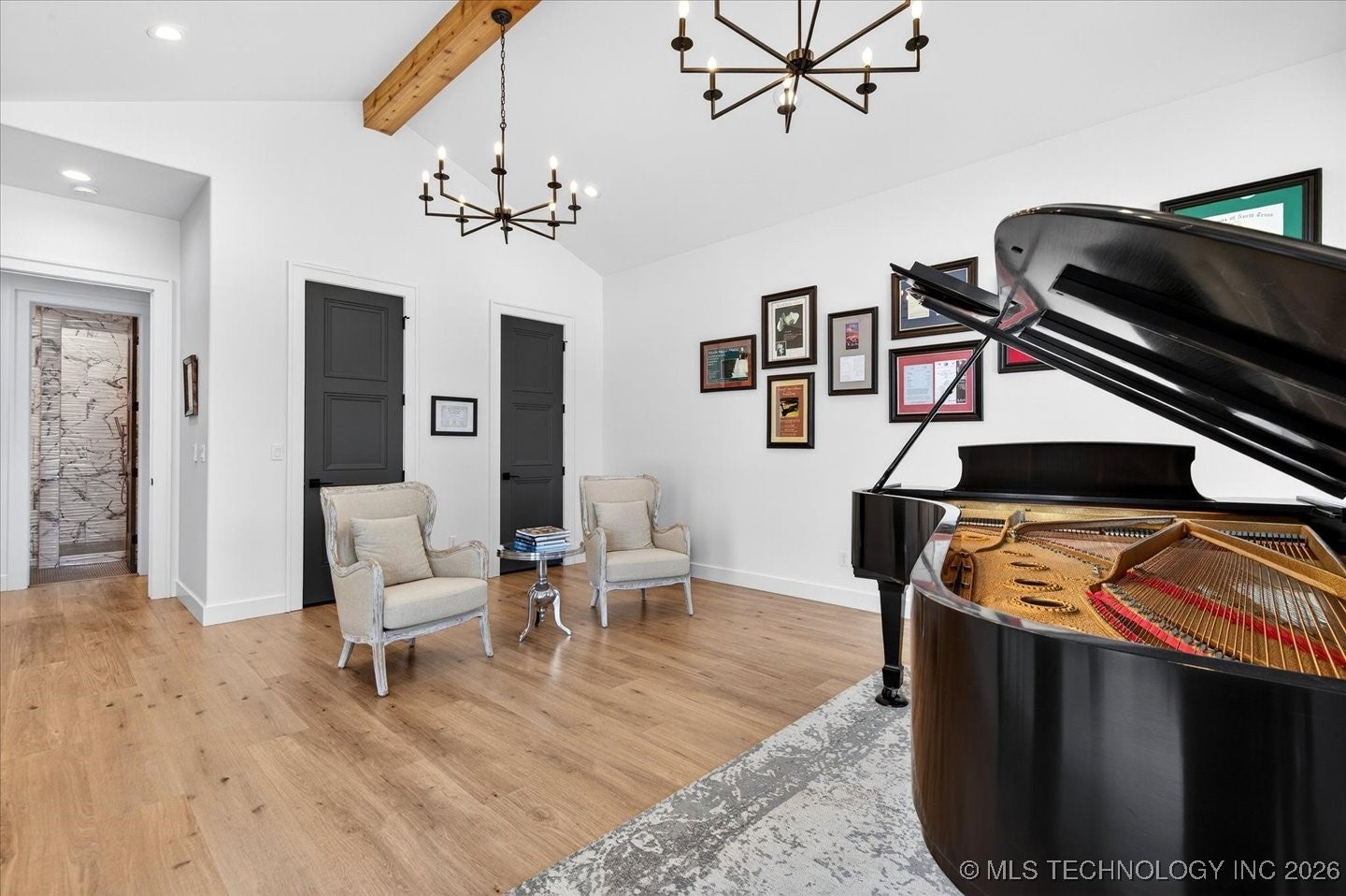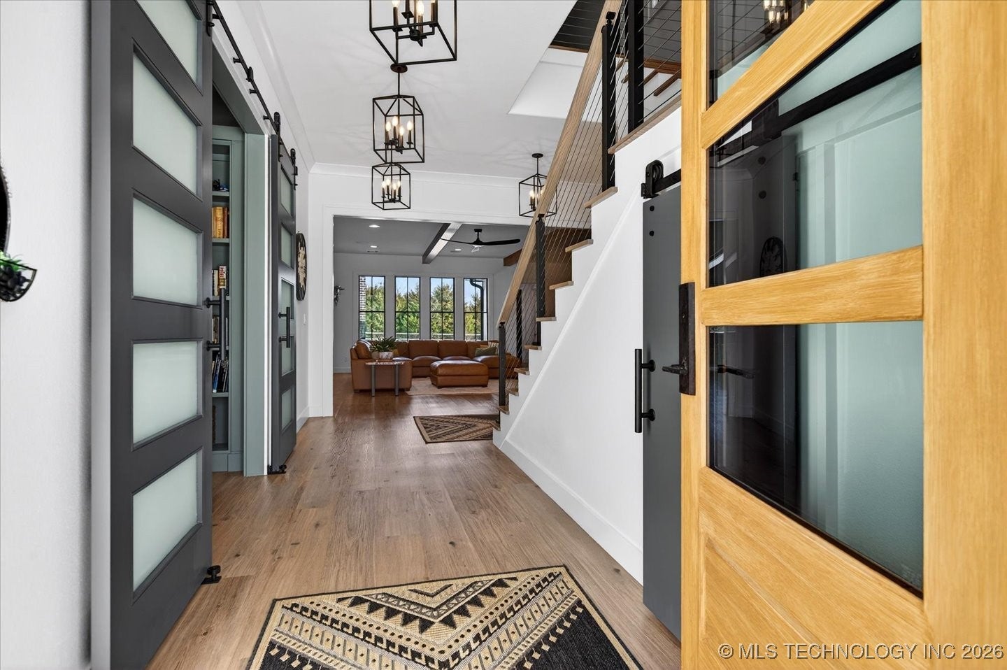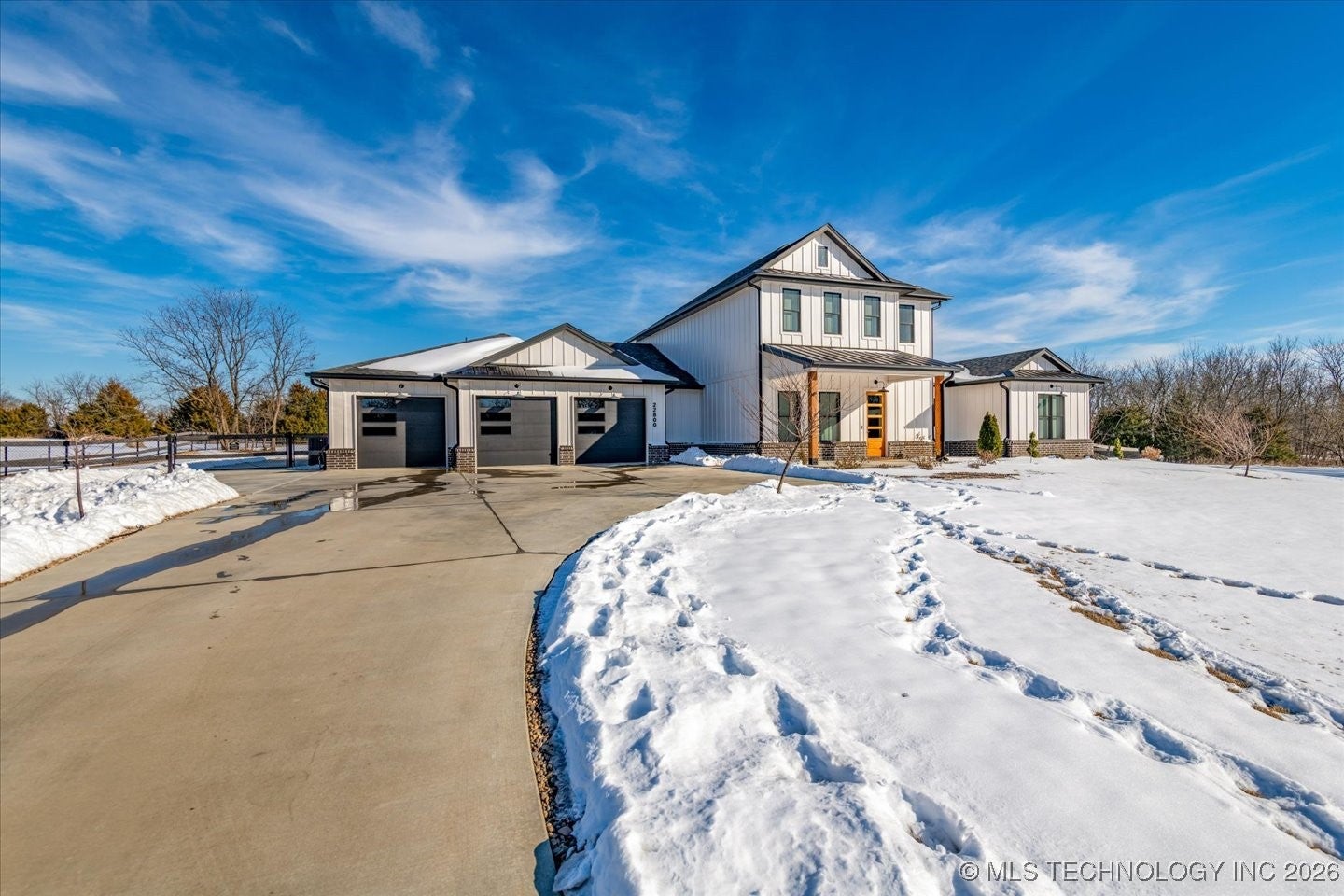 Welcome to a truly exceptional custom built home by Brent Taylor of Taylor Homes. Tucked away on a quiet cul-de-sac, where thoughtful design, high-end craftsmanship, and everyday comfort come together exquisitely. Set on a picturesque 5 acre lot, this stunning home offers the perfect balance of privacy and convenience with easy access to main roads, shopping, dining, and schools. From the moment you arrive, youll notice the attention to detail! A welcoming front porch with wood beams, lush custom landscaping with fruit trees, and a tranquil koi pond with waterfall! The oversized 4 car garage, RV parking with 50-amp service, and whole-home Generac generator add both functionality and peace of mind. This home features, light filled living spaces, and showcases modern farmhouse elegance with shiplap accents, exposed wood beams, designer lighting and beautiful flooring throughout. The heart of the home is the chef-inspired kitchen featuring quartz countertops, a dramatic waterfall island, professional grade GE Monogram appliances, dual dishwashers, a Brizo luxury faucet, and a hidden prep kitchen- perfect for entertaining without compromise. Every bedroom is an en-suite retreat with walk-in closets, while the primary suite offers spa-level luxury with a cathedral ceiling, rainfall shower also featuring an integrated premium speaker system, Deep soaking tub, and thoughtfully designed his-and-hers closets. Multiple living spaces, a private office with built-ins, flex room, fitness room, and whole-home audio create endless possibilities for work, play and relaxation. Step outside to enjoy the covered back porch with brick fireplace and outdoor kitchen-ideal for Oklahoma evenings. With Custom millwork, smart storage throughout, a family safe/tornado shelter and premium finishes at every turn. Additional 5 acre contiguous parcel available, with aerated stocked pond; and metal bdg. This home is a rare opportunity to own a property that is as functional as it is stunning!