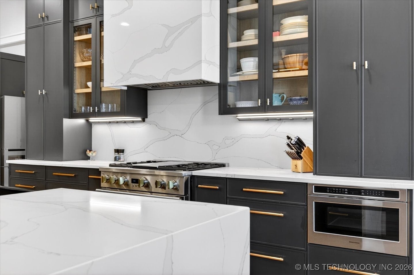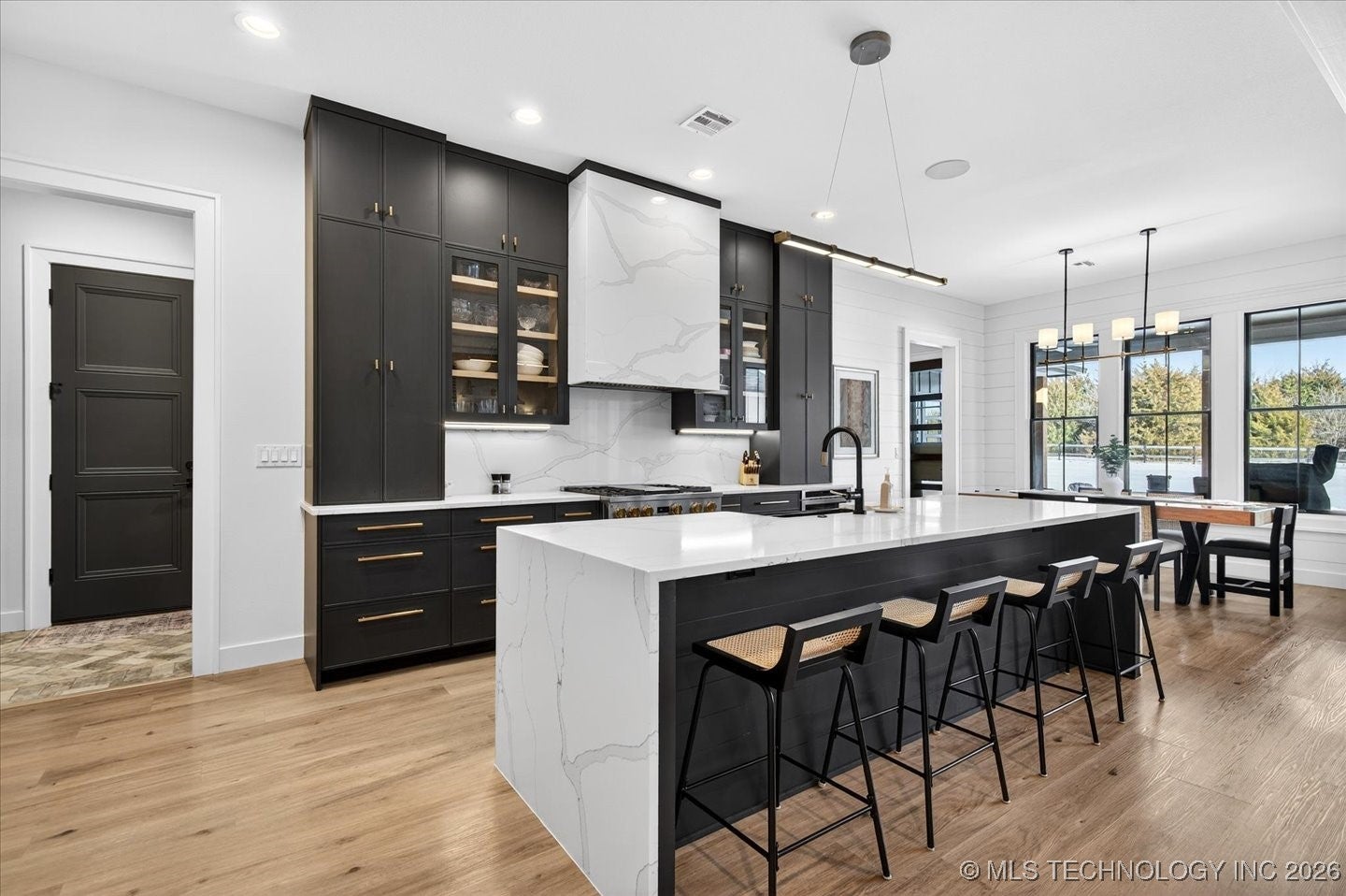 Experience elevated coastal living in this stunning 5-bedroom, 7-bath waterfront residence, where thoughtful design meets high-end finishes throughout. This home is loaded with premium upgrades and crafted for both elegant entertaining and everyday comfort. The heart of the home is a luxury designer kitchen featuring quartz countertops and full-height quartz backsplash (Pietra finish), an oversized island with undermount sink, and sleek Cabico Regola Gloss cabinetry with soft-close drawers. GE stainless steel appliances, a Moen soap dispenser, and air-switch garbage disposal complete this sophisticated culinary space. The primary suites offer spa-level relaxation. Master Baths showcase Pearl Jasmine quartz vanity tops, frameless 3/8 glass shower enclosures, custom soft-close cabinetry, Kohler fixtures, and dramatic floor-to-ceiling tile with waterfall layouts. A soaking tub adds to the retreat-like atmosphere. Additional bathrooms continue the luxury aesthetic with frameless glass showers, premium quartz surfaces, upgraded tile to the ceiling, polished chrome hardware, and Kohler fixtures creating a consistent high-end feel across all 7 baths. The cabana bath is perfectly positioned for guests and outdoor living, finished with Miami White quartz, Editorial Volakas tile, and elegant chrome details.Interior enhancements include nearly 24,000 in upgrades, such as a modern stain-grade staircase, smooth window coverings, brushed nickel hardware, an upgraded performance A/C system, and a 300-amp electrical panel for enhanced capacity. The laundry room features stylish tile flooring (Shaw Omega, Silver finish). Set on the water, this home blends luxury finishes, modern systems, and resort-style comfort an exceptional opportunity to own a beautifully upgraded waterfront property designed for refined living. Tenant occupied.