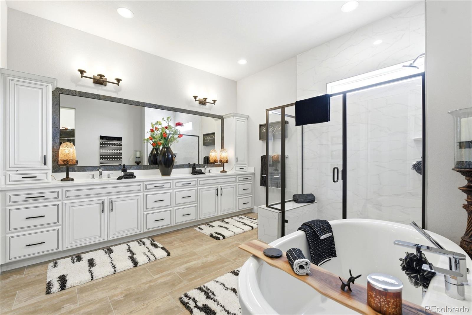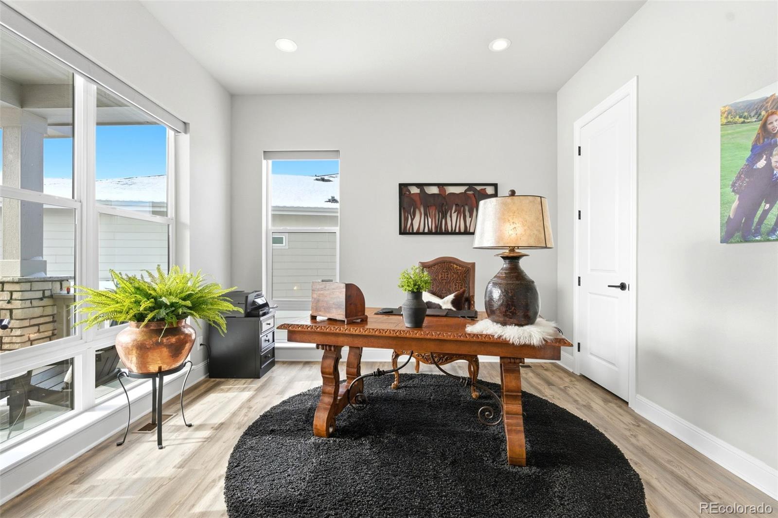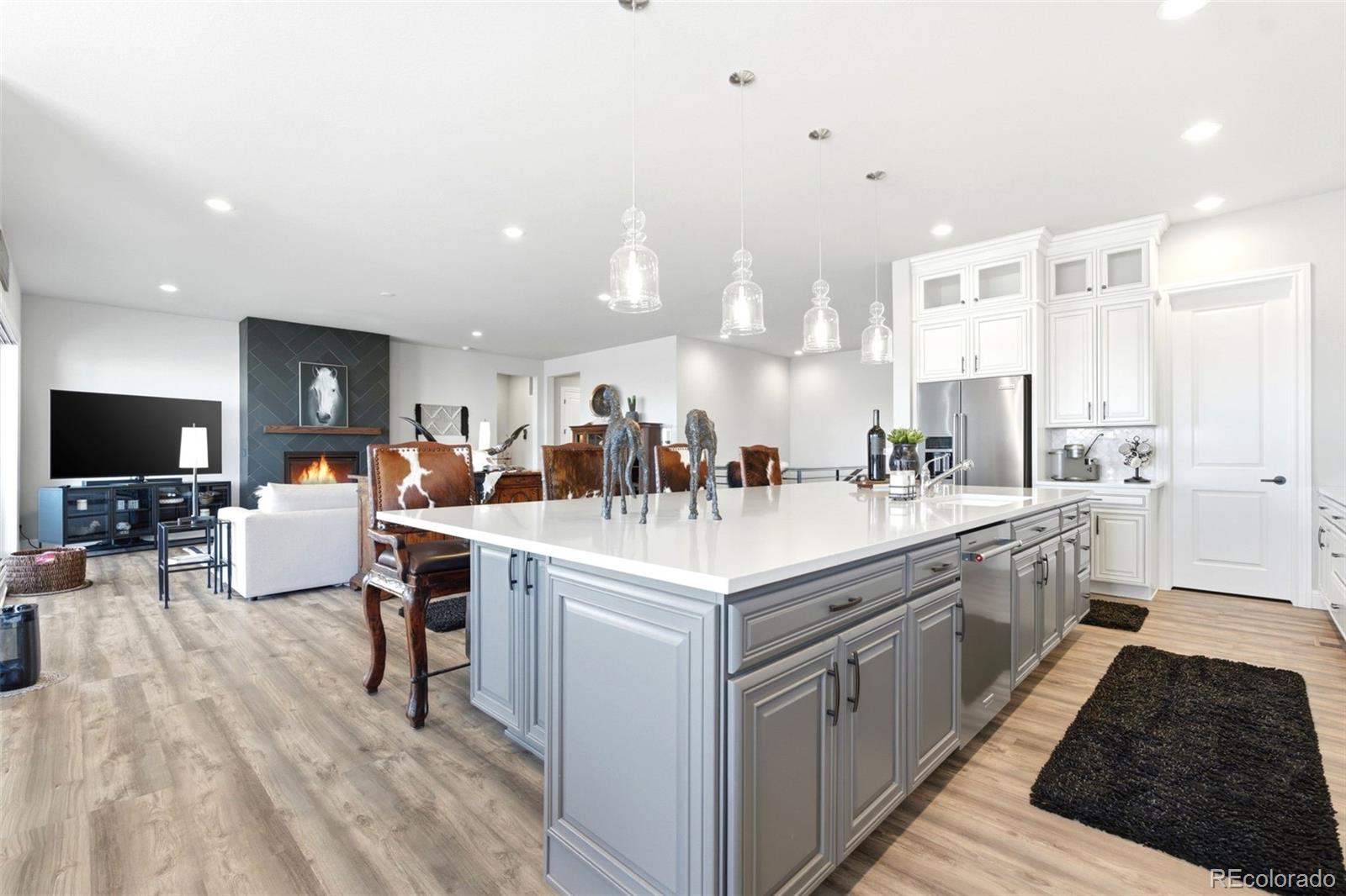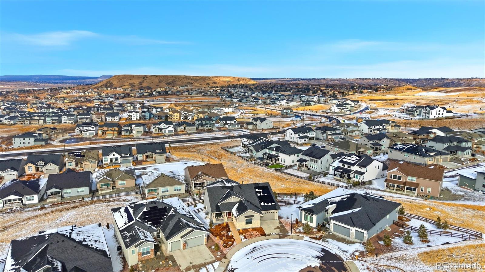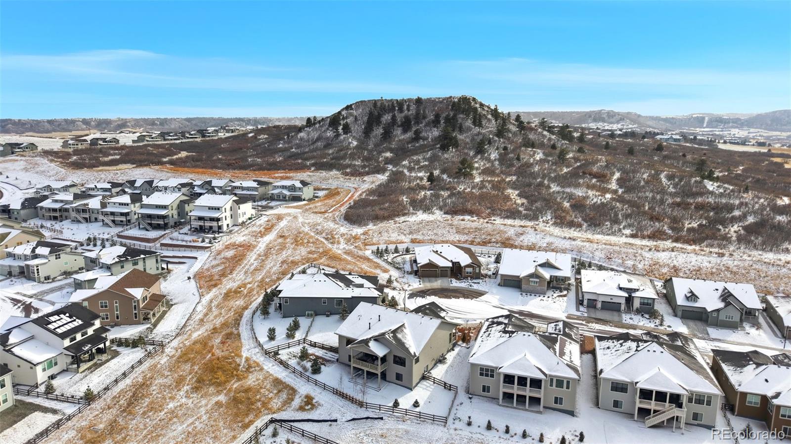 Welcome to effortless main-level living in Montaines sought-after Regency Collection, Castle Rocks premier 55 luxury community. Set in a friendly cul-de-sac where neighbors connect through holiday gatherings and everyday support, this home offers the peace of mind that comes from living among people who truly care. The open-concept floor plan is filled with natural light and features high ceilings, wide plank flooring, and a stunning great room with front range views, gas fireplace and large nesting sliding glass doors, creating a seamless indoor-outdoor flow perfect for entertaining. Electronic window coverings throughout the home add modern convenience and a polished finish.The gourmet kitchen is the heart of the home, showcasing an oversized island, custom cabinetry, quartz and granite countertops, double ovens, walk-in pantry, and generous prep spaceideal for both everyday living and hosting.The primary suite is a private retreat, complete with its own gas fireplace, radiant heated floors in the spa-inspired five-piece bath, and a spacious walk-in closet. A secondary bedroom with ensuite bath and a dedicated home office provide flexibility for guests, hobbies, or work-from-home needs. Convenient main-level laundry enhances ease of living.Step outside to the covered composite deck and enjoy open views and peaceful surroundings. The south-facing driveway naturally melts snow, a thoughtful Colorado convenience. Additional highlights include owned solar panels, central A/C, an oversized 3-car garage with EV hookup, and a level, professionally landscaped lot.The walk-out basement is unfinished and ready for future expansion.Montaine offers a true resort lifestyle with pickleball, tennis, bocce, lap and lounge pool, spa, clubhouse, fitness center, and over 13 miles of trails across 548 acres of open space. Snow removal and trash are included.This is downsizing done rightluxury, comfort, and community in one exceptional home.