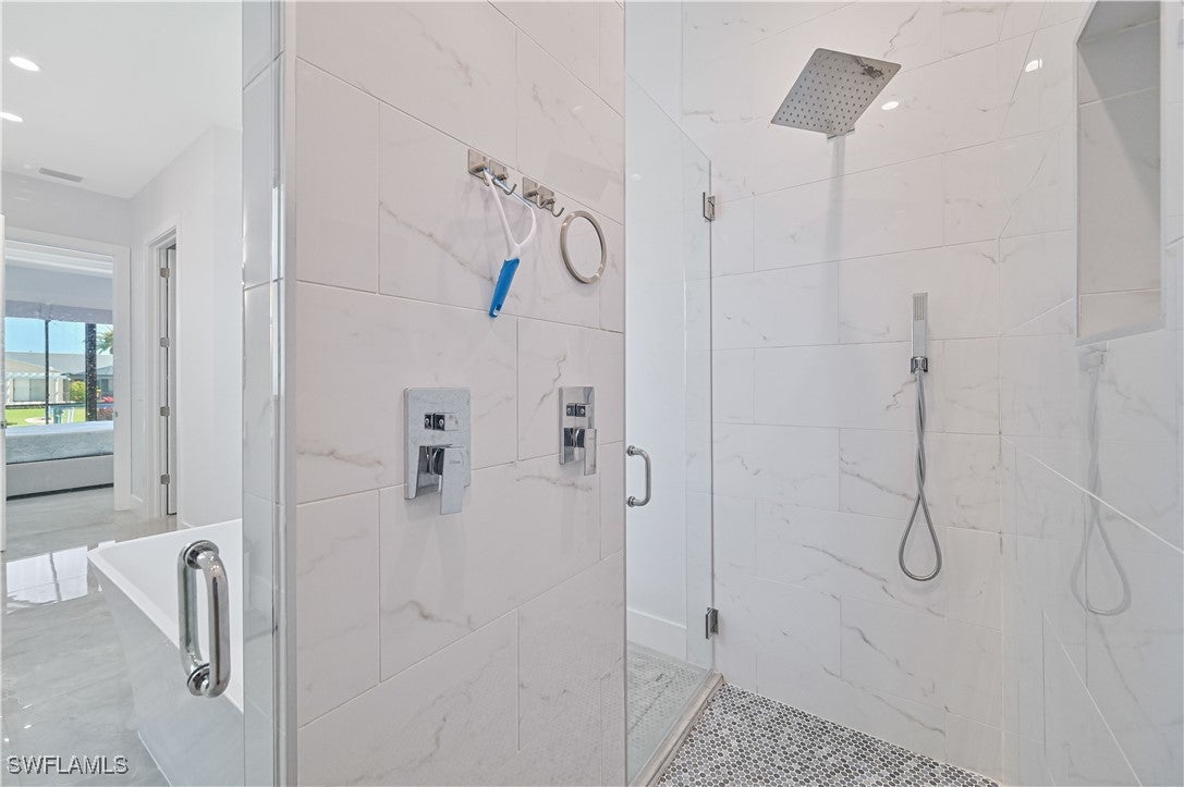 Quality, comfort, and thoughtful design define this exceptional residence in the gated community of Legendary Trails in Southeast Ocala. A circular driveway sets the tone with stately curb appeal, stone accents, and a large glass front door with sidelights, with the drive extending to the oversized 4-car garage tucked privately in the back of the home. Once inside, you are welcomed by high-end finishes & a view directly to the outdoor oasis & centered waterfall spa beyond the pocketing sliding glass door. Rich hardwood flooring flows through the main areas & is complemented by detailed millwork including crown molding, paneled archways, & a coffered ceiling in the living room. The open kitchen features stone countertops, abundant cabinetry & storage (incl. storage behind the breakfast bar), upper display cabinets with lighting, tiled backsplash, & a suite of stainless appliances including a five-burner gas cooktop, built-in smart convection oven, & wine cooler. Adjacent is a large scullery/butlers pantry with additional full-size refrigerator, sink with disposal, & cabinetry. The luxurious primary suite overlooks the pool & includes an ensuite bathroom with extensive cabinetry, dual vanities, & heated floors, including the shower which boasts three heads. Two walk-in closets include custom built-ins, & the larger closet includes a stackable washer & dryer. This triple-split floor plan provides privacy for the whole family & guests: two bedrooms share a full bath, while a fourth bedroom sits adjacent to another full bath that doubles as a pool bath. All closets include built-in systems, & multiple linen closets add further storage. The outdoor living space is reminiscent of a private resort. The expansive north-facing covered lanai features a stone wood-burning fireplace with gas starter & a fully equipped outdoor kitchen, flowing to the screened pool deck finished with pavers & artificial turf. The heated, saltwater, volleyball-style pool is surrounded by marble & includes a large 8-person elevated waterfall spa, deck water fountains & lighting. The oversized 4-car garage provides walkable attic storage above, smart jackshaft openers with high-lift tracks, epoxy floor, & French doors from the 4th bay to the pool deck. A whole-home standby generator offers peace of mind & is powered by the 1,000-gallon buried propane tank. Additional features include: smart-home automation, interior & exterior surround sound, outdoor landscape lighting throughout the property, a wired security system, 8-camera surveillance, plantation shutters & shades, heated towel racks in every bathroom, ambient crown-molding lighting, occupancy-sensor lighting, keyless entry, and other refined details throughout offering the utmost in comfort & function - detailed feature list available. Legendary Trails provides a fantastic Southeast Ocala location less than 1 mile to the Santos Trailhead & under 2 miles to The Country Club of Ocala, plus convenient access to Belleview & The Villages to the South. Please enjoy the attached video & 3D tours, & schedule your private showing before its too late!