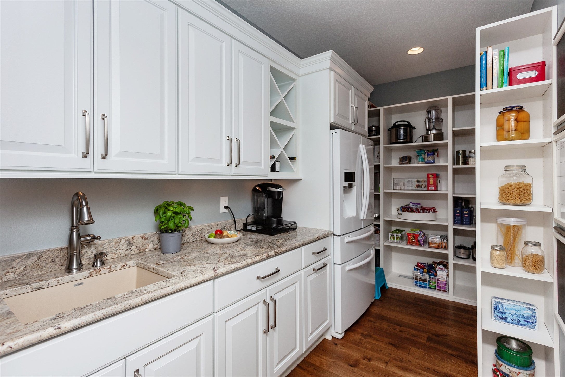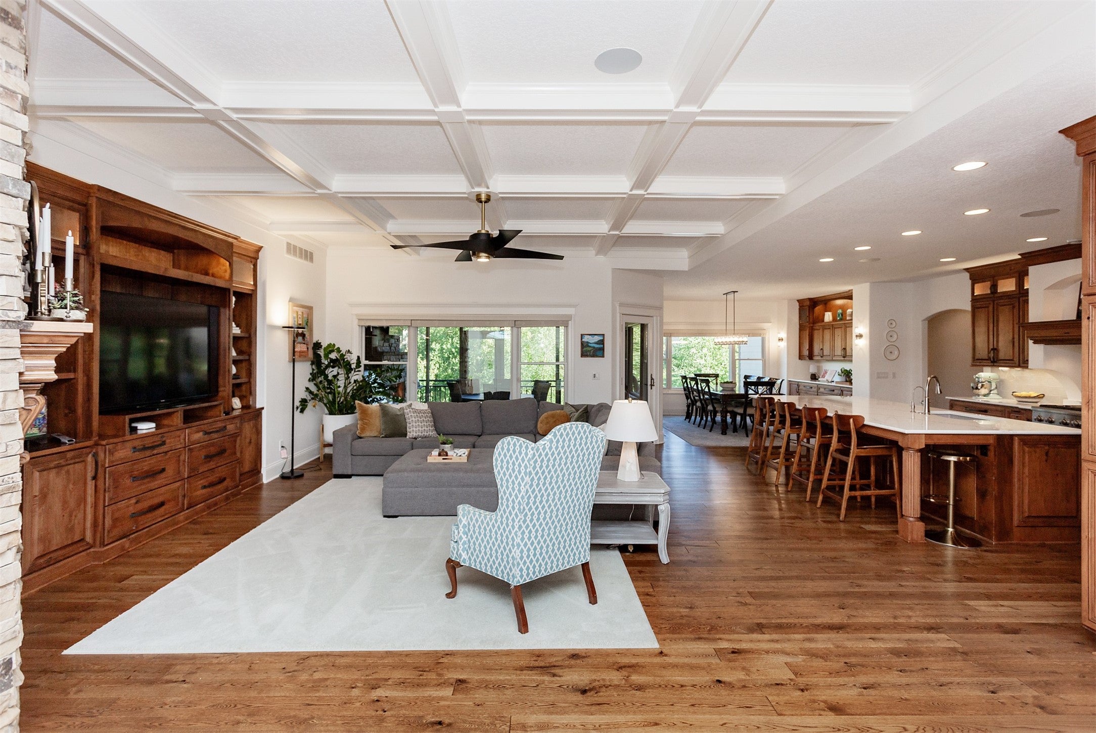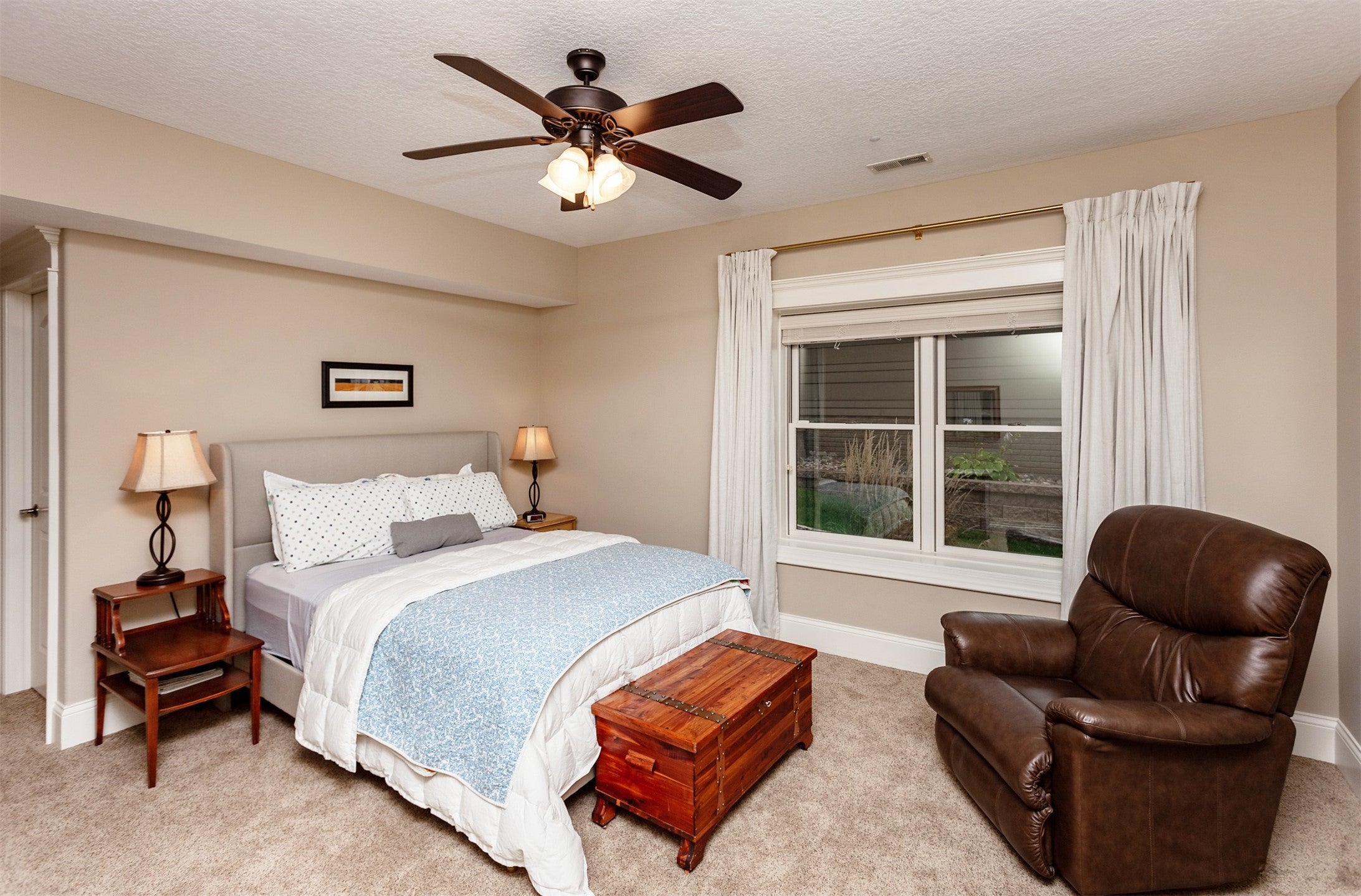 This exceptional walk-out ranch home in sought-after Bent Creek Estates offers the perfect blend of comfort, luxury and functionality. The open concept main floor showcases a real stone fireplace, freshly renewed white oak hardwood floors, freshly painted walls, a chefs kitchen, walk-in pantry w/2nd refrigerator, large primary suite & bath w/double vanity, soaking tub & large tiled shower & large primary closet connecting to laundry. Three addtnl main floor bedrooms; 2 sharing a jack-n-jill bath & 1 large junior primary ensuite bedroom w/window seat, built-in desk & walk-in closet. Step outside onto your covered 3-season deck featuring an outdoor fireplace & built-in grill. The lower level is built for entertaining, featuring a full kitchen & bar area overlooking the family room w/fireplace, 1/2 bath, game area & bonus room plus 2 more bedrooms share a jack-n-jill bath. Enjoy all the extra space w/ NOT ONE BUT TWO storage areas. Walk right out to your own backyard pickleball court, built-in childs playset, fire-pit and professionally designed landscaping. Over-sized 4 car garage w/epoxy floor. Dont miss the addtnl 5th stall w/heat & a/c making a great work area or storage for that special vehicle! Such a lovely home; schedule your showing today! All information obtained from seller and public records.