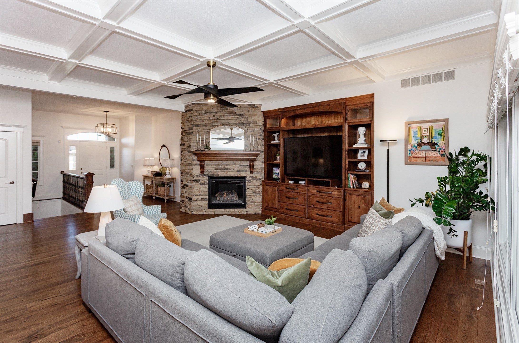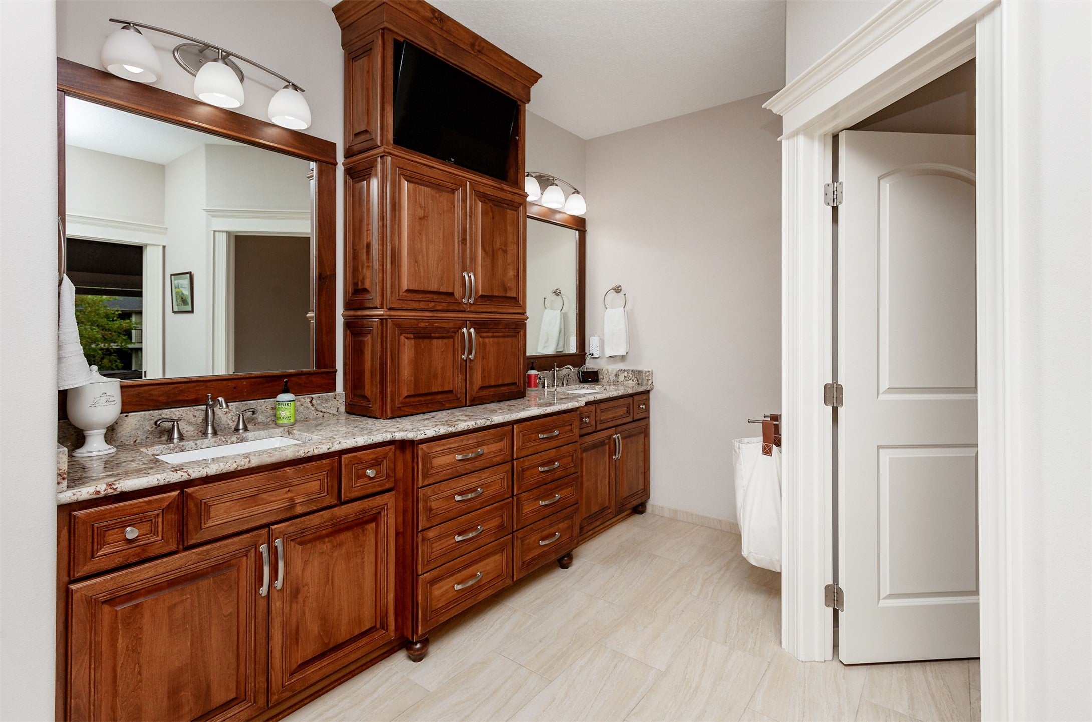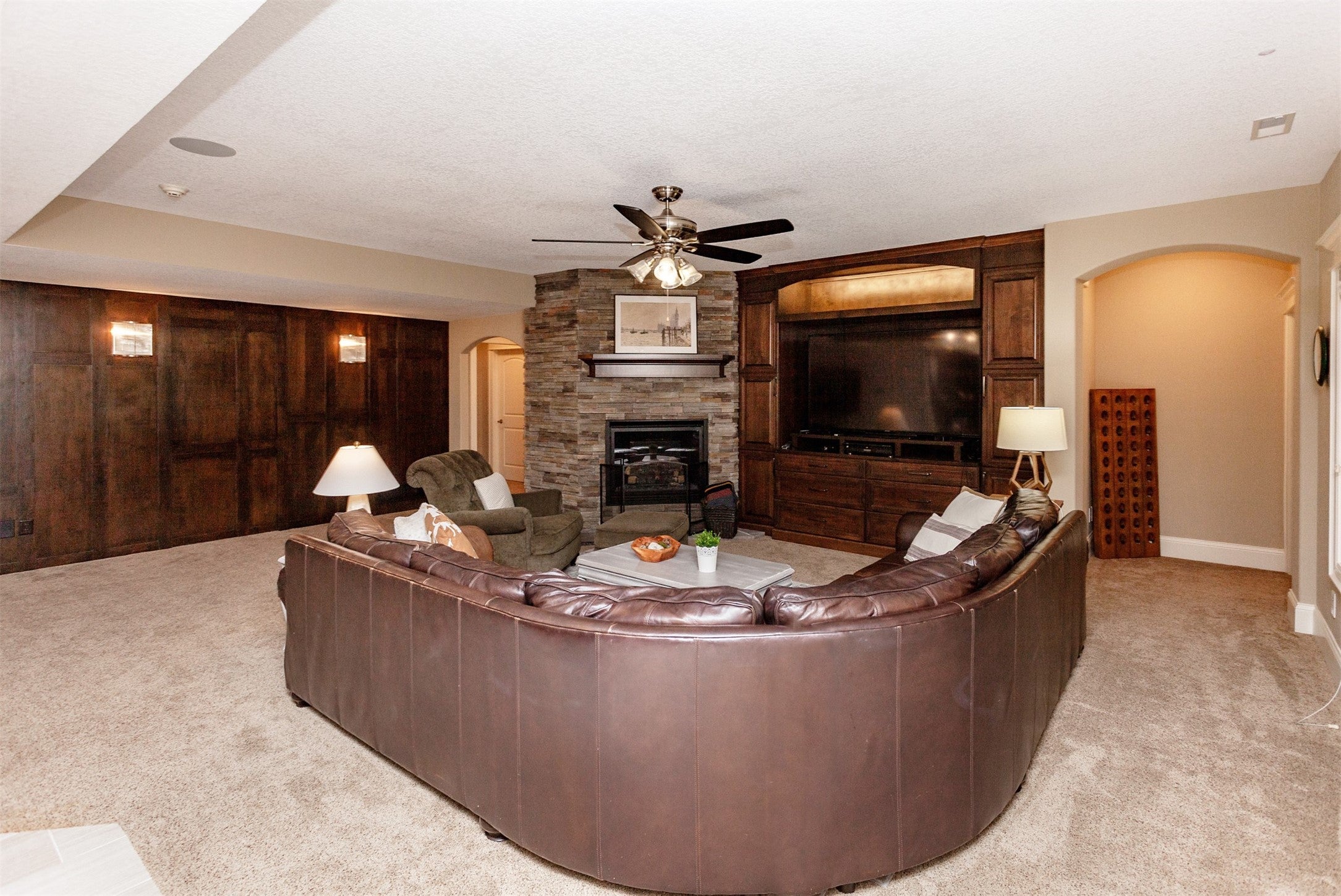 PRIVATE SETTING 5 BEDROOMS, 4.5 BATHS ON 1.5 ACRES! Stunning renovation! Soaring 30 foyer w/double staircase leads to one-of-a-kind elevated open Great Room w/nearly 40 of entertainment space! Enhanced by 20 stone fireplace, wet bar, palladium windows, hardwood floors & french doors to a deck. Step outside for views of the fountain & governors drive. This upper area has 4 large bedrooms & 2 full baths. Main floor owners wing has a sauna & hot tub room w/deck access, shower, soaking tub, & dual vanity and custom walk-in closet. NEW CENTER ISLAND KITCHEN w/double oven, wine cooler & extra prep sink and a walk-in pantry space for casual dining w/access to huge wrap around deck with views of the grounds. Dont miss the formal living room & dining room both with fireplaces and deck access! A luxury home office, a den, and powder room complete the main floor. A huge walk-out lower level w/full bath will make a great game room. A 3 car garage and guest parking make this a must see!