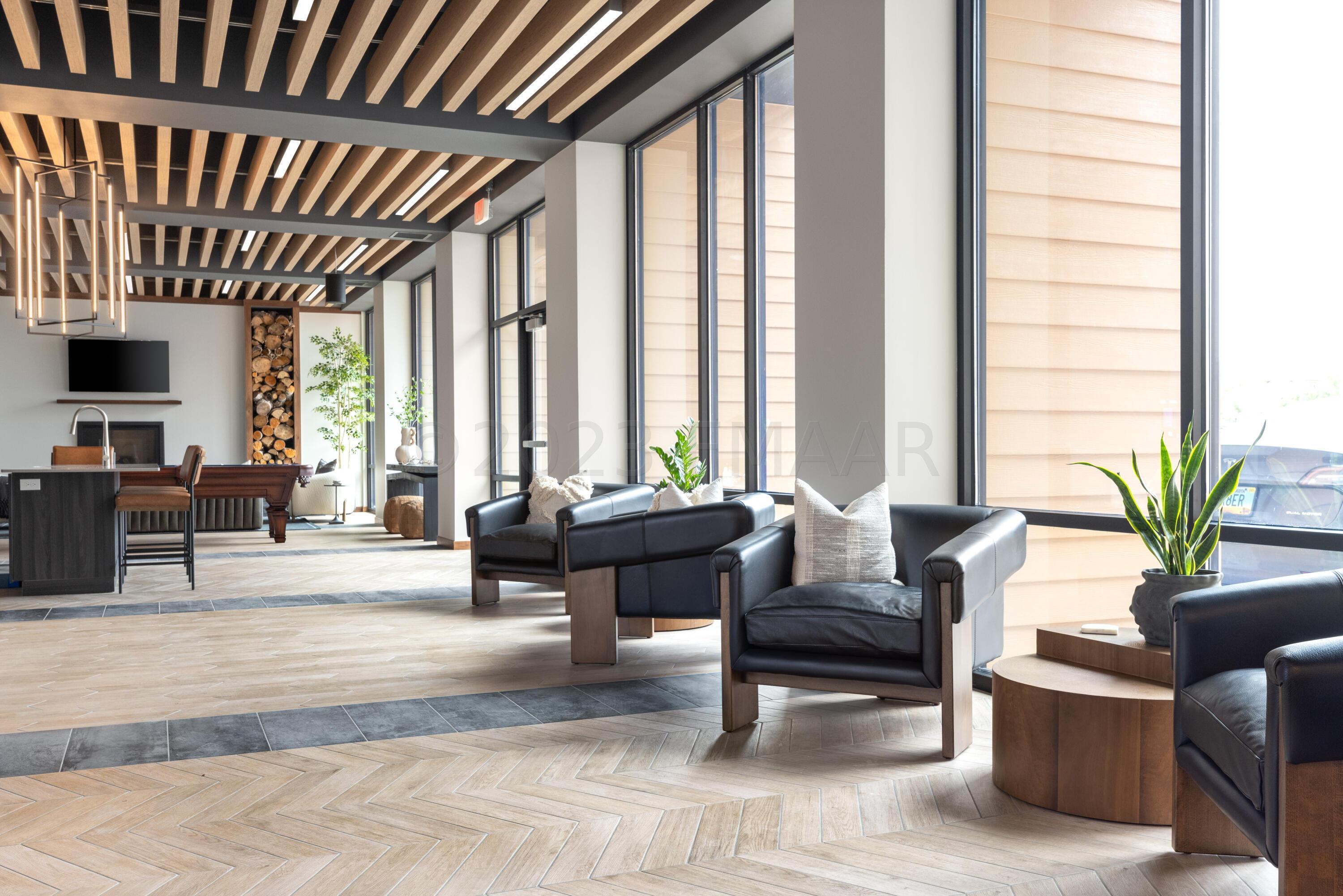Youll love the views from this incredible Condo! This finished unit features, 12 foot ceilings, wool carpet & engineered hardwood flooring, white rift cut custom cabinets, Thermador appliances, fireplace, audio package, custom tiled master shower, private balcony with hot tub and much more! There is a private lobby and clubroom, 2 heated underground parking included with the unit, private elevator, a private storage unit, fitness center, rooftop patio and more! Walking distance to downtown Fargo! Ask about the potential tax benefits of being in the Renaissance Zone.