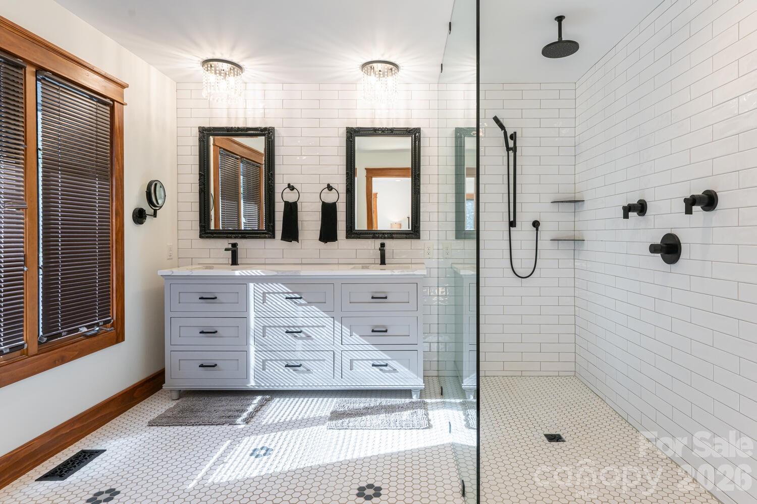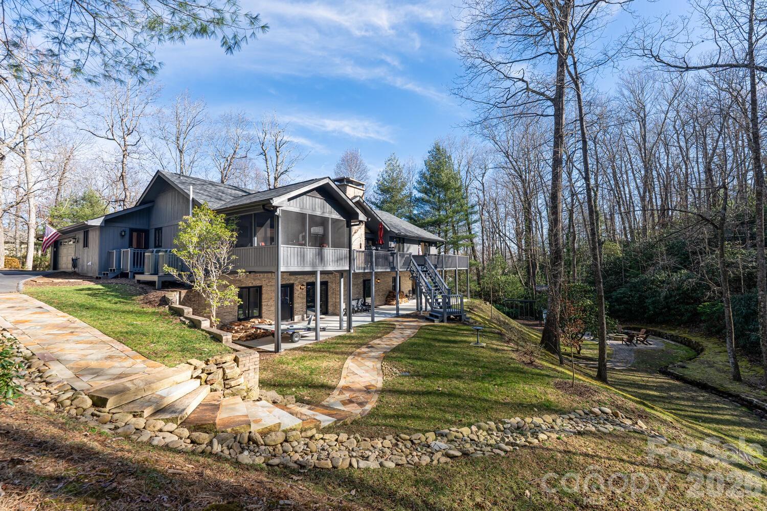 Welcome to this exquisitely renovated luxury mountain retreat located on one of the most quiet and private streets in the prestigious, gated Kenmure Golf Course Community. Fully and exquisitely renovated with high-end architectural design, this one-of-a-kind home offers luxury mountain living in one of the most sought-after gated communities in the area. Thoughtfully designed with high-end architectural finishes throughout, this remarkable residence offers refined living, exceptional entertaining spaces, and a seamless connection to the outdoors. This stunning home features four bedrooms, four full bathrooms, and two half baths, along with three garage spaces, including a main-level two-car garage and a separate driveway leading to an oversized lower-level one-car garage with workshop and storage space. Complete renovation includes but is not limited to: brand new 50 year roof installed in 2023, new washer and dryer, new insulated garage doors, upgraded attic insulation, new wood floors, tankless hot water heater, upgraded interior trim, and epoxy garage floors. The main level showcases an expansive open floor plan anchored by a dramatic great room with vaulted ceilings and a floor-to-ceiling stone fireplace, flanked by two French doors that open to the back deck for effortless indooroutdoor living. The space flows beautifully into the gourmet chefs kitchen, which is equipped with high-end appliances, including double wall ovens and a gas cooktop, an oversized island with breakfast bar seating, designer cabinetry, and a dedicated dining area ideal for hosting. The primary suite on the main level is a private sanctuary featuring a large walk-in designer closet with custom built-ins and a spa-like bath with heated floors, a heated towel warmer, double vanities, and a walk-in tiled shower. A light-filled study with a wall of windows provides peaceful outdoor views, while a second main-level bedroom offers a stunning en-suite bath. Completing the main level are a powder room and a laundry room with heated tile flooring. The lower level offers exceptional flexibility and comfort with an expansive family room centered around a stone fireplace, a second primary suite with a large walk-in closet and a luxurious bath featuring a walk-in shower, heated floors and heated towel warmer, an additional guest bedroom with a walk-in closet, en-suite bath also with heated floors and heated towel warmer, and an additional half bath. Outdoor living is elevated with a spacious open deck, a screened porch, a patio, and a flagstone walkway leading to a charming paver sitting area, creating multiple spaces to relax, entertain, and enjoy the mountain setting year-round. In addition, this home includes extensive underground electric dog fence. Also included with this stunning home is a new Lithium Battery golf cart. Conveniently located just minutes from shopping, dining, and everyday amenities. Dont miss your chance to experience the beauty and craftsmanship of this exceptional property.