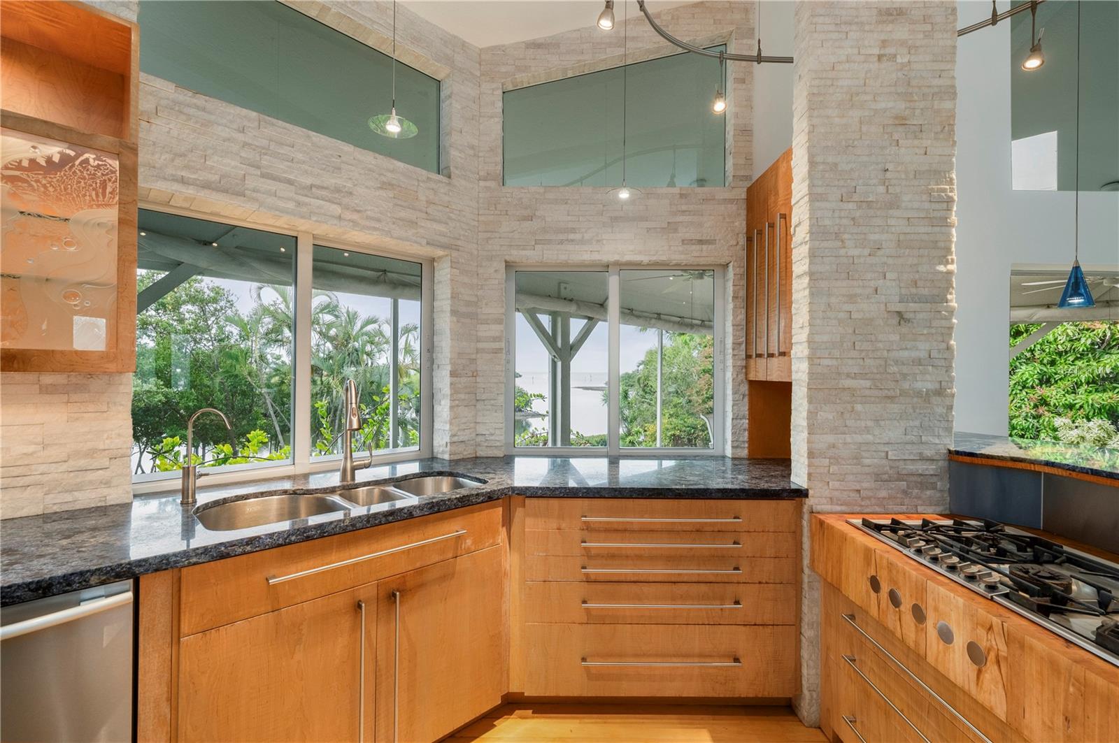 Welcome to your very own piece of Paradise in the highly sought-after Pirate Harbor Community! If you are dreaming of the Ideal Florida Waterfront Lifestyle, 210 ft. of Waterfront with Unobstructed Views of Charlotte Harbor and all the way thru to Boca Grande Pass and beyond to the Gulf of Mexico, protected by Seawall and Mangroves giving you complete Direct Access to Pristine Charlotte Harbor for World Class Boating and Fishing, plus a short Boat Ride to Boca Grande and the Gulf of Mexico then this Home is your Perfect choice. The Many Features of this Custom Designed and Graceful Estate Home includes High End Finishes throughout, the Attention to Detail is throughout, from Floor to Ceiling, take in the Open Floor Plan with High Ceilings and Solid Hardwood Maple Flooring throughout, as you enter through the Double Doors with Etched Glass, you are greeted by the Incredible Waterfront Views, Spacious Great Room, Soaring Ceilings, Semi-Separate Dining Area with one of kind built-in Wet Bar with Wine Cooler, this is a must see! Uniquely Designed and Custom Built Chefs Kitchen with Gas Gagganeau Cooktop with separate Wok Burner, Built in Double ovens, Beautiful Solid Tiger Maple Wood Cabinets with Artisan Carved Glass Doors, track pendent and task lighting, Expansive Breakfast Bar, Custom Stone Counters, High End Appliances, Sub-zero side-by-side Refrigerator/Freezer, undercounter GE Fridge, Indoor Grill, Miele Dishwasher, and amazing Waterfront Views. The Private Primary En-Suite, with sliding glass door offers access to the Screened Deck, Custom Designed Primary Spa with Freestanding Curved Blue Glass Walk in Shower, Granite Counters and His and Hers Vanities, Walk in Closet, Italina Slate Tile and Custom Lighting. Split Floor Plan with Two Guest Bedrooms and a Guest Bath, all rooms have Water Views, Inside Laundry Room with extra Storage, Exterior tankless propane Water Heater, Whole House water softener system with R/O Drinking water system, Closed cell foam insulation sprayed throughout the attic and underside of the home. South Facing Screened Deck provides Year-around enjoyment and gives way to additional Living Space overlooking the Waterfront plus all the benefits of taking in the Stunning views, taking your eyes towards Boca Grande, experiencing the joy of remarkable Sunsets every evening. On the lower level there is a workshop and/or a Fishermans room for Gear, a Generator Hookup, plus room to park up to 3-4 Cars and all of your Toys. This Exceptional Home is situated on 210ft. of Waterfront with Concrete Seawall, Concrete Dock, Wooden Boat Dock with Boat Lift, its every boaters dream, and mere minutes separating you from Boca Grande, Cayo Costa, and the interconnected waterways of Charlotte Harbor and the Gulf of Mexico. Here, you can take pleasure in both stunning Sunsets and breathtaking Sunrises, all while indulging in Boating and Fishing opportunities. Your Waterfront Oasis and Lifestyle Awaits; we invite you for a Private Tour today.