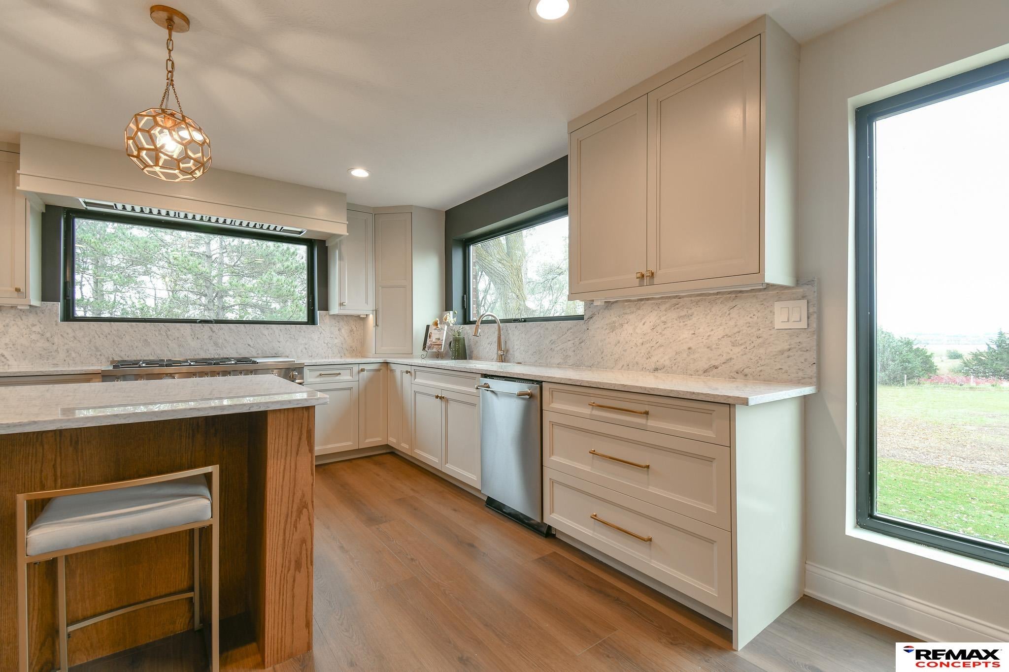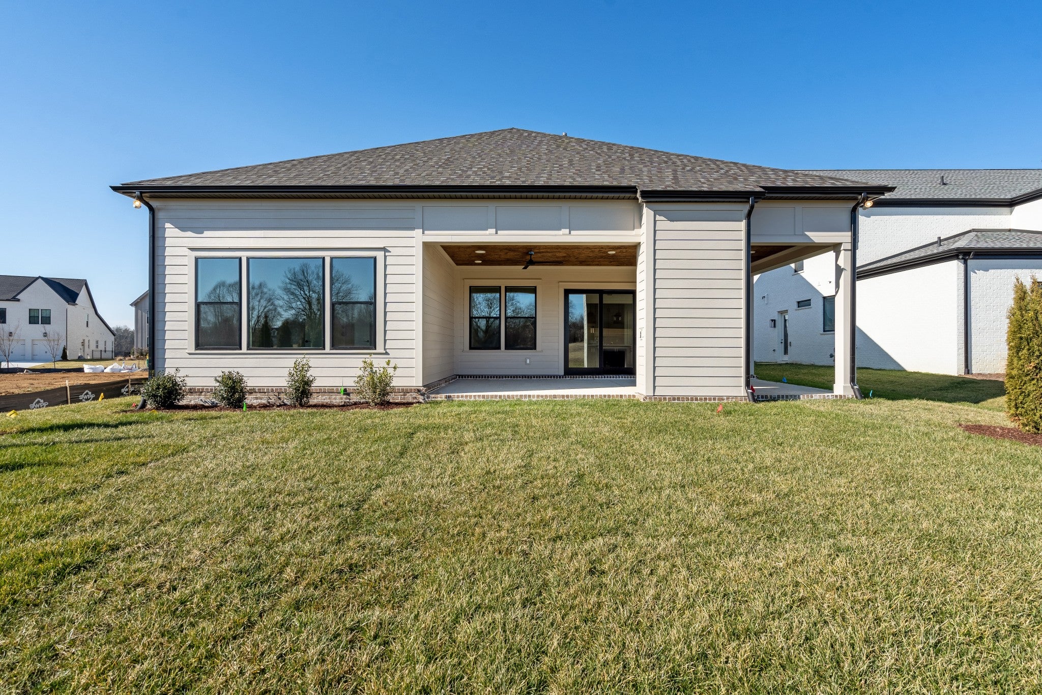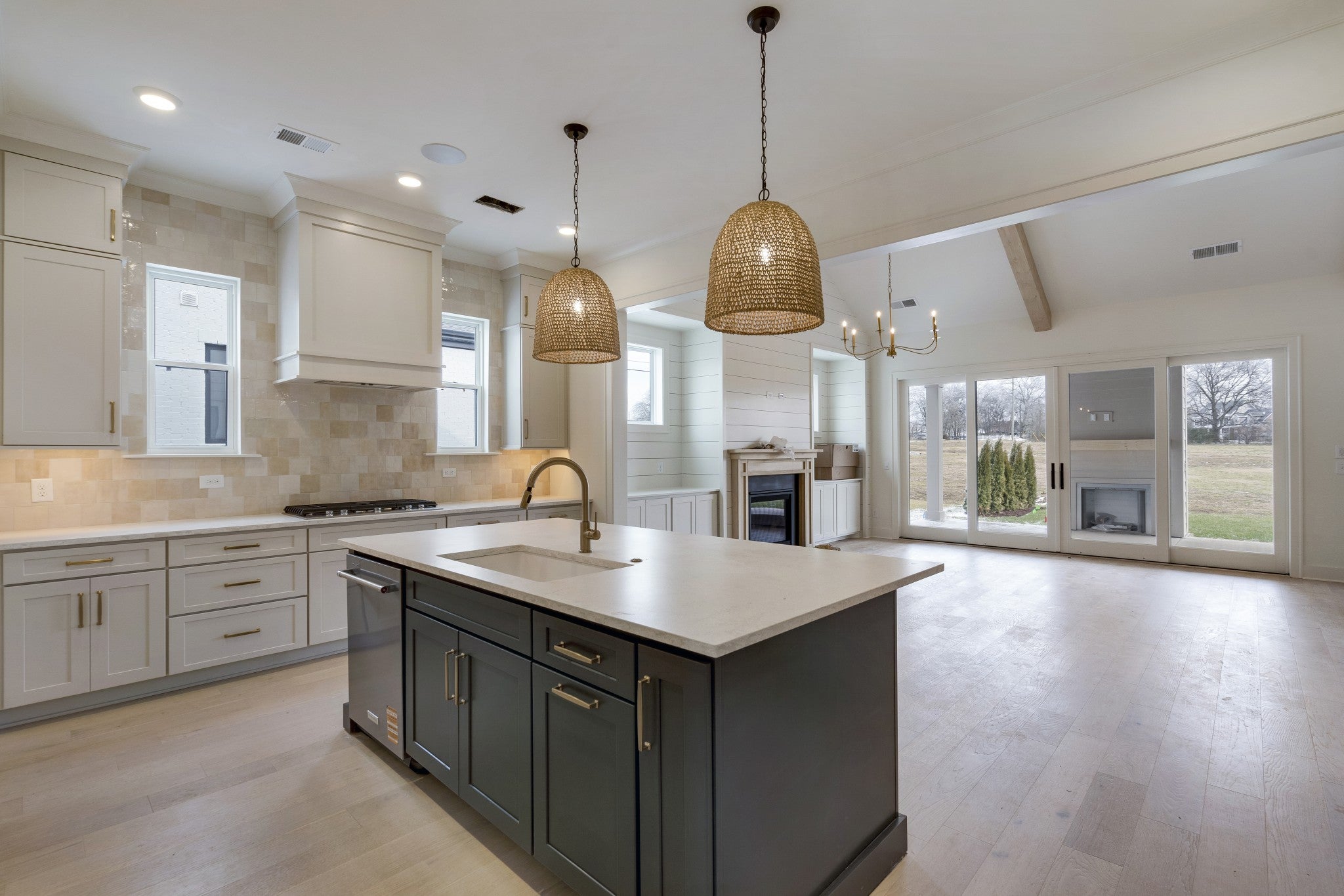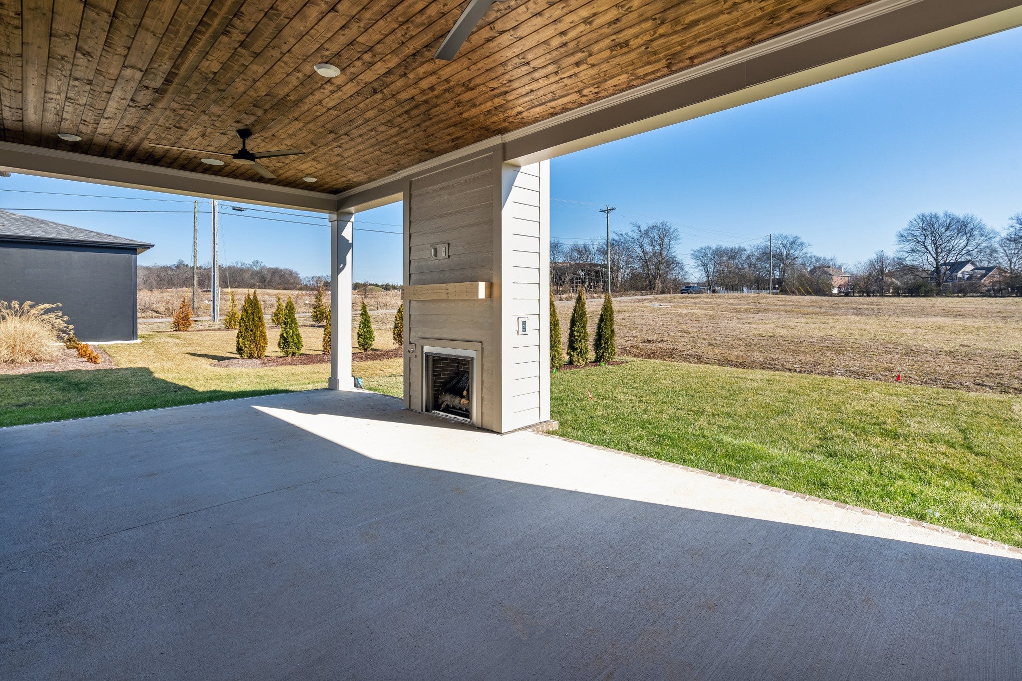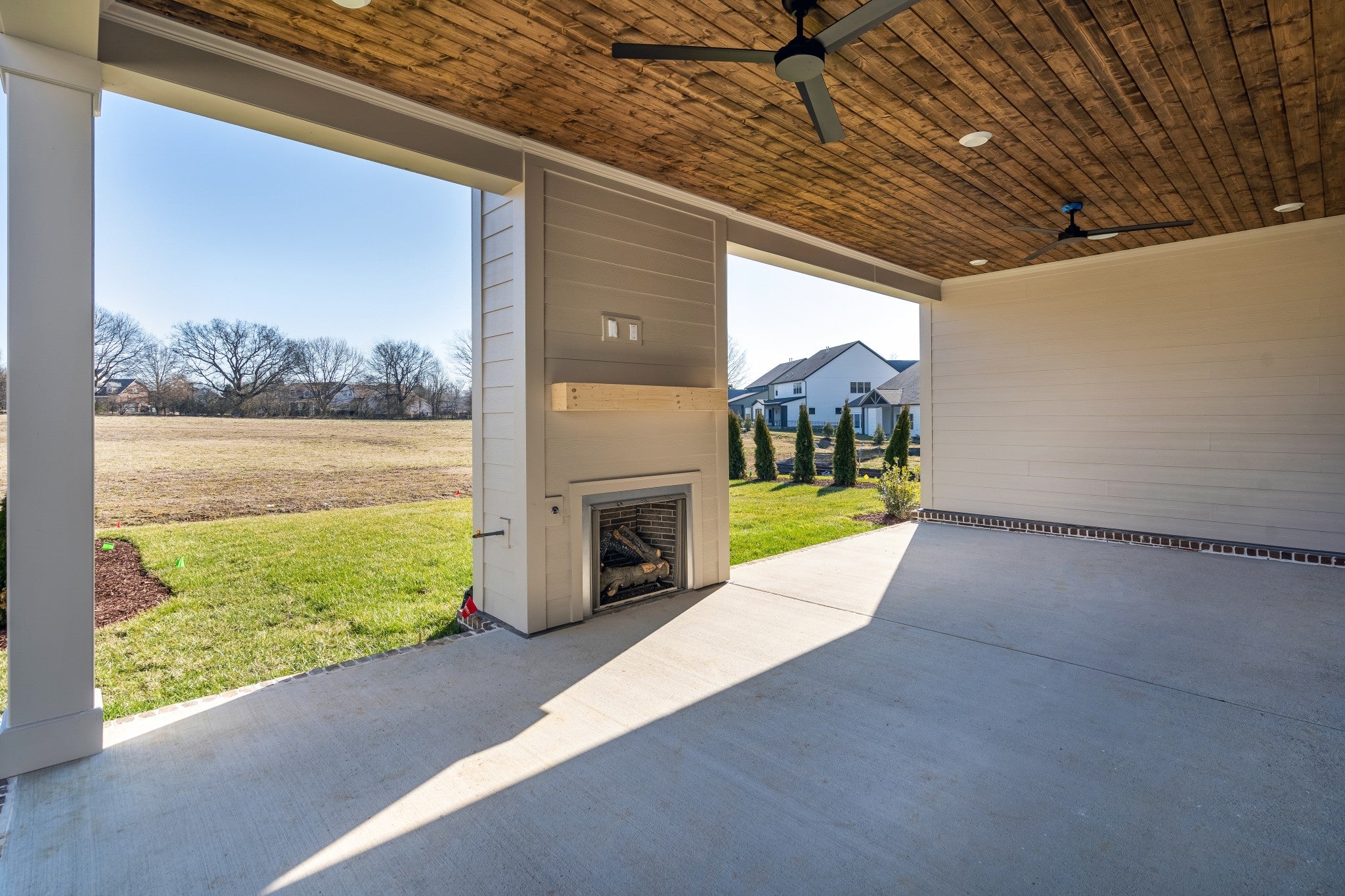 Exceptional Woodridge Homes custom design in an intimate 16-lot community. This thoughtfully crafted residence showcases main-level living with two bedrooms, plus a gourmet kitchen featuring gas cooktop, generous island, and walk-in pantry. The vaulted great room with architectural beamed ceiling creates an impressive gathering space.The main-level primary suite offers a serene retreat with tray ceiling and designer accent wall, complemented by a spa-inspired bath with dual vanities, freestanding soaking tub, expansive walk-in shower, and custom closet with separated hanging areas.Outdoor living is elevated with a covered patio featuring tongue-and-groove ceiling and fireplaceperfect for year-round entertaining. The private backyard overlooks protected green space, ensuring lasting tranquility.