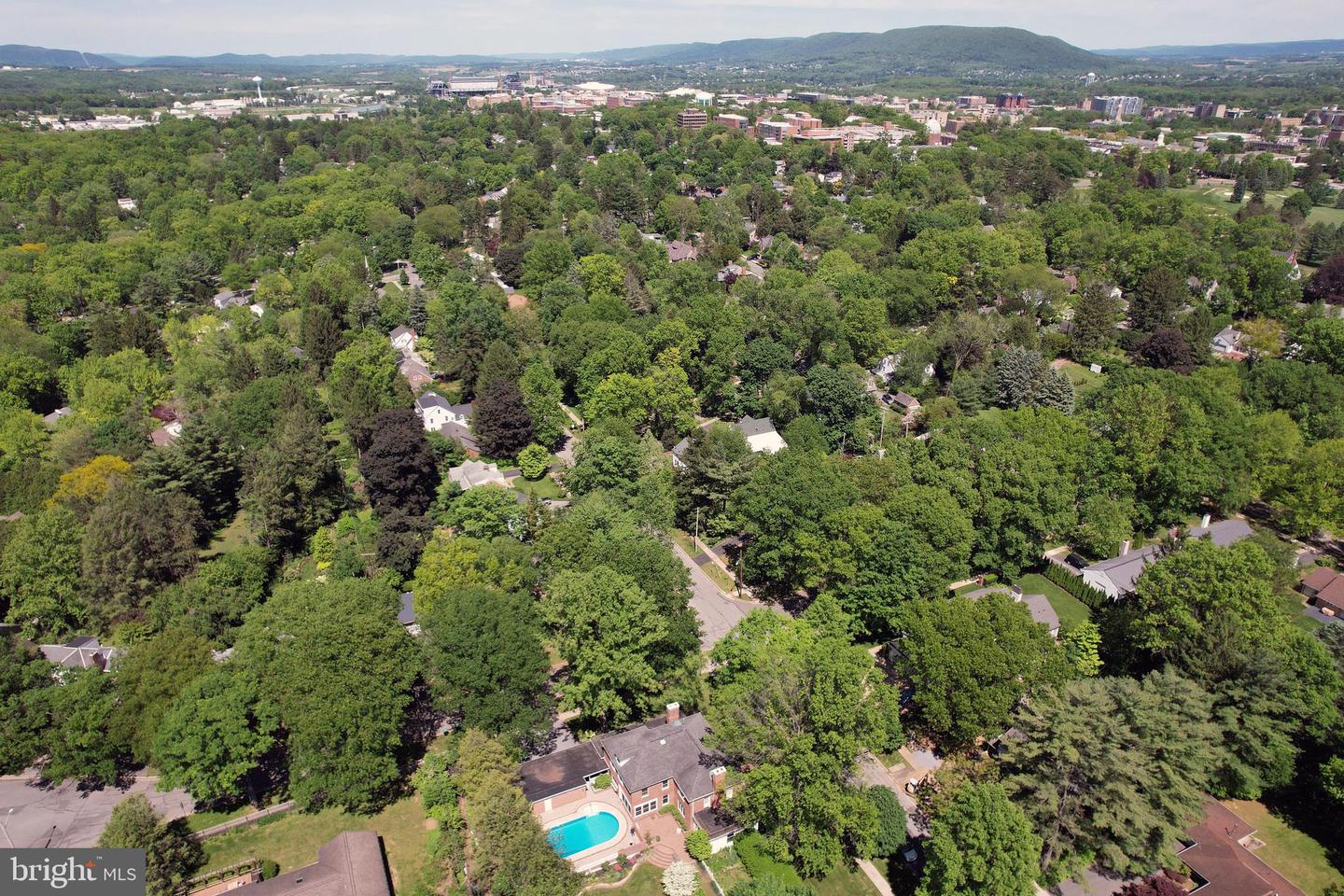 Crown Jewel of Hillcrest! This magnificent, stately brick Georgian estate resting on a sprawling 0.57 acre corner lot in West College Heights commands attention. Refined and meticulously maintained, be captivated by the blend of classic charm and modern amenities. Stroll up the brick sidewalk and through the classic rams head front door with dual sidelights and into a welcoming foyer with handsome fluted trim work. Once inside youll be greeted by expansive hardwood flooring, plaster walls and ceilings, embellished trim work, and abundant natural light through the plentiful Pella windows. The spacious living room features a wood burning fireplace and access to the large sunken office complete with cherry desks and built-ins. The classic dining room is highlighted by crown molding and chair rail, and features a hidden closet under the stairs and a wall of glass with a sliding door to the enclosed, heated brick porch. Theres room for everyone in the sprawling kitchen which boasts plentiful white cabinetry and granite countertops, an abundance of windows in the nook area, a back staircase to the second floor, and barn beam accents. An academics delight, the large den is highlighted by plentiful bookshelves and built-ins, a wood burning fireplace, and a half bath. A huge mudroom with a plethora of closets and pantry space, a main floor laundry room with exterior access, and a full bath with a soaking tub or pet wash complete the main floor. Ascend to the second floor and find a spacious primary suite complete with hardwood flooring, a wood burning fireplace, a walk-in closet with an ante sink area, access to the upstairs exterior balcony area, and a remodeled bath with a tiled walk-in shower. Four additional bedrooms, all with hardwood floors, and two additional full baths, plus several linen closets, round out the second floor. Upstairs in the walk-up third floor attic youll find ample storage and a cedar closet, meanwhile the lower level rec room is great for games or media, and there is more storage in several basement closets and in the mechanical room. Relax on the rear brick patio, under the covered back porch, or by the inground pool complete with a waterfall feature and a pool house. The private and gorgeous back yard oasis boasts an abundance of flowers, landscaping, mature trees, and even a fenced garden area. A rarity in College Heights, youll appreciate a coveted oversized two car garage with an attached workshop and an additional carport space. Youre just a few blocks to Penn States golf courses, the bike path, and campus, plus a short distance to Radio Park Elementary and the shops, restaurants, and entertainment venues of downtown State College. A truly special property in a prime location make this the complete package!