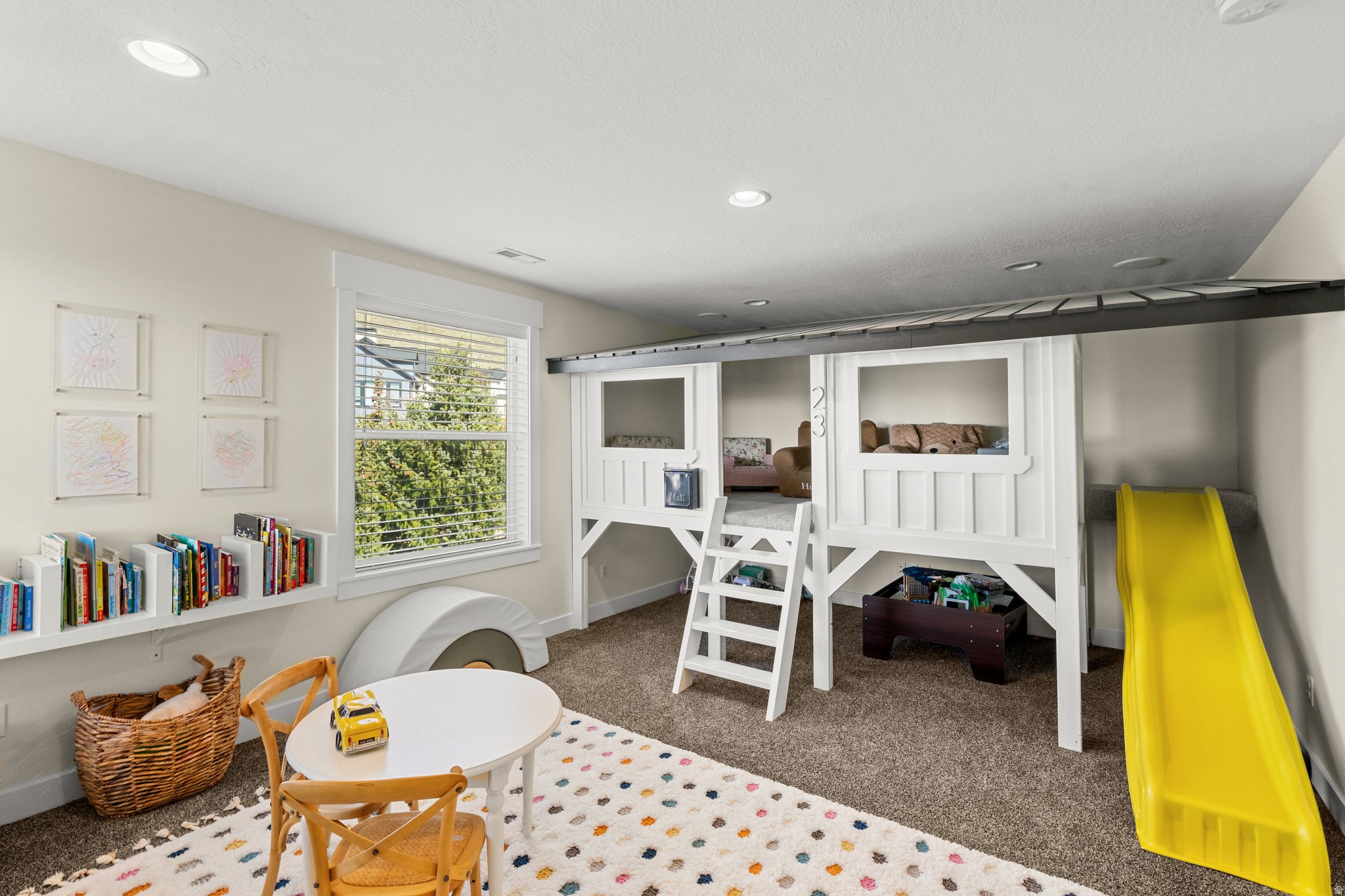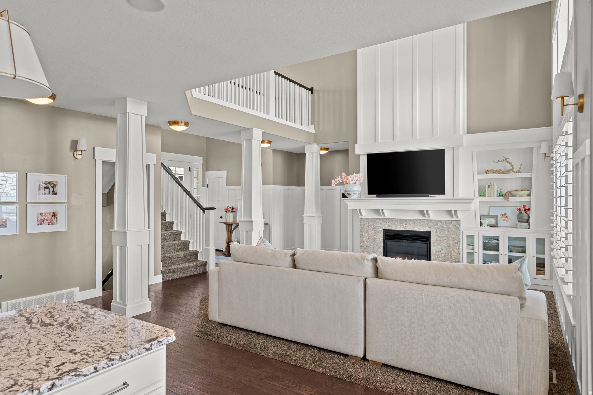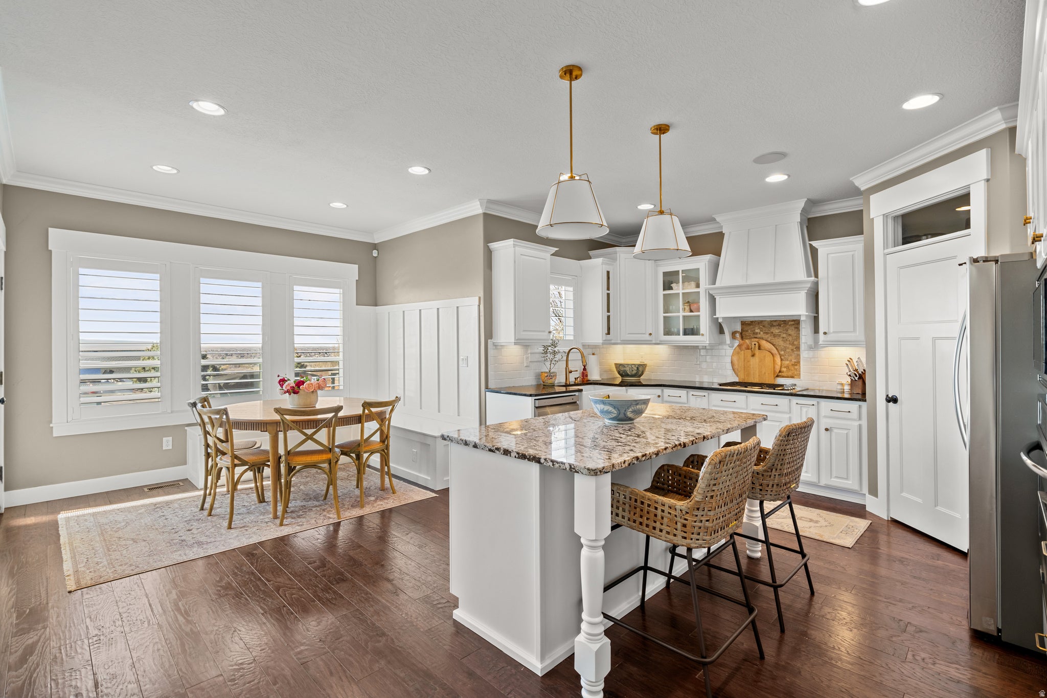 Perfectly positioned on the coveted Farmington East Bench! This custom two-story offers main-level living with breathtaking mountain & lake views. Close to scenic hiking trails, a neighborhood park, with the shopping, dining, & entertainment of Station Park close by. Designed with entertaining in mind, this home features a spacious open-concept great room & kitchen with upgraded trim throughout, soft-close cabinetry, a custom range hood, farmhouse sink, & built-in dining bench seating. Multiple exits lead to the large deck, creating seamless indoor-outdoor living perfect to take in the views. The vaulted primary suite on the main level offers a luxurious retreat with a spa-style bathroom featuring a soaker tub, walk-in shower, separate vanities, & a large walk-in closet. Upstairs youll find three additional bedrooms & a versatile loft/office space, including a bedroom currently designed as a playroom complete with a custom built playhouse. The fully finished basement is built for fun & gathering with laminate flooring, a large wet bar, & an open-concept theater room with stage seating. Kids will love the slide & playroom tucked under the stairs. Additional highlights include a custom safe/vault room, large guest bedroom with walk-in closet, hidden storage room, & walkout access to a covered patio. Outside, enjoy mature landscaping with drip irrigation, RV parking, and a 4 car epoxy-coated garage with built-in storage & workbench.