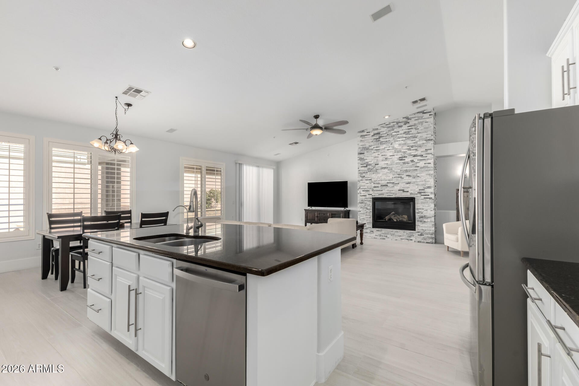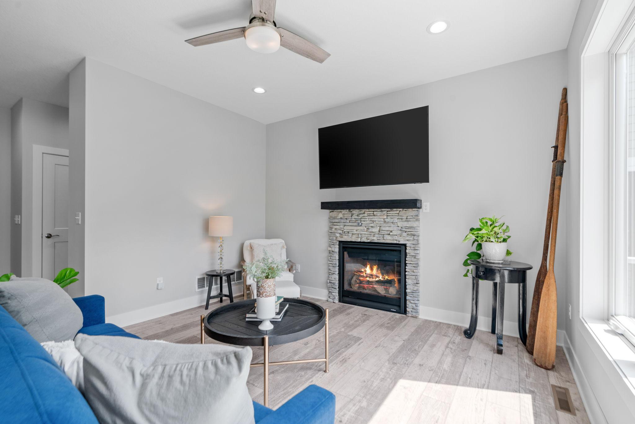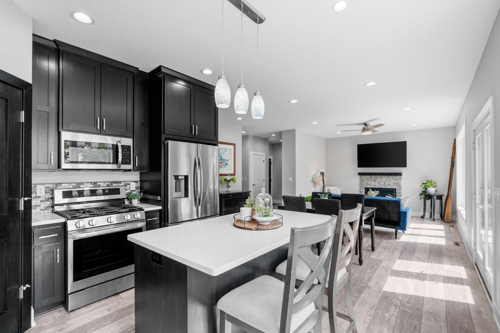 The Triple Play! Like new construction, lakefront, & the OP (Other Place)! Better than new construction, this Gerold Bros. home comes w/ all the extras in landscaping & decorating. The open main floor features a wall of windows & a cozy gas fireplace. The bright, spacious kitchen features a center island & ample cabinet & storage space.