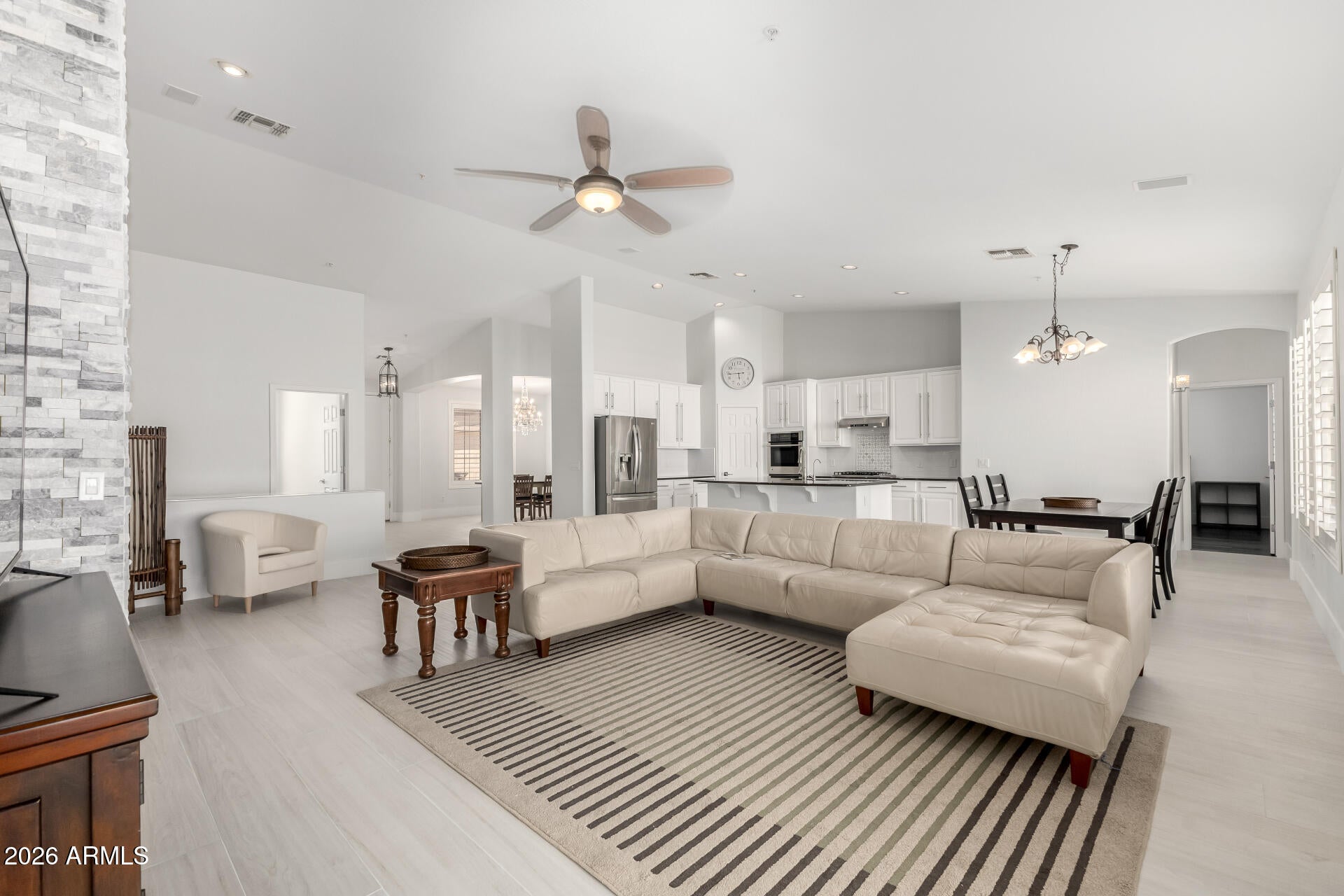 Beautifully updated single-story home in North Scottsdales Sonoran Hills. This 4-bedroom, 3-bath residence features a long, extended driveway and a well-designed, open layout filled with natural light. The interior has been refreshed with new paint, updated bathrooms, and partially updated flooring, offering a clean, move-in-ready feel.
