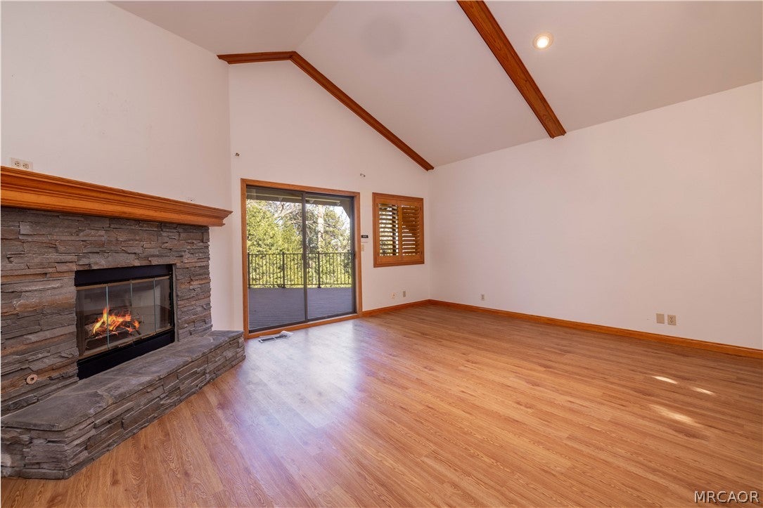 Welcome to 229 Shasta Rd in Lake Arrowhead, where vaulted ceilings, sparkling lake views and natural light come together to create a home that feels both grand and peaceful. This spacious 4-bedroom, 4 bath home offers 3,699 sqft of thoughtfully designed living space. The main level features vaulted ceilings, large windows, a spacious living room, kitchen, dining room and family room as well as a master suite with a fireplace. The open and airy layout creates a seamless flow for entertaining or enjoying quiet mountain mornings with coffee in hand. Step outside onto the newly built Trex deck, an ideal setting to soak lake views all year round. The property also features a newly built retaining wall for peace of mind and lasting value. Downstairs, a versatile bonus space with its own separate entrance presents endless possibilities, ideal for a workshop, guest quarters or conversion into a private mother-in-law suite. Additional features include attached garage with EV charging station, charming front yard waterfall feature, lake rights and only a short drive from Lake Arrowhead Village.